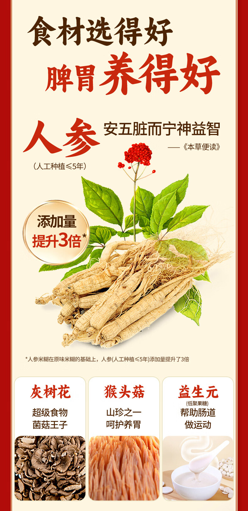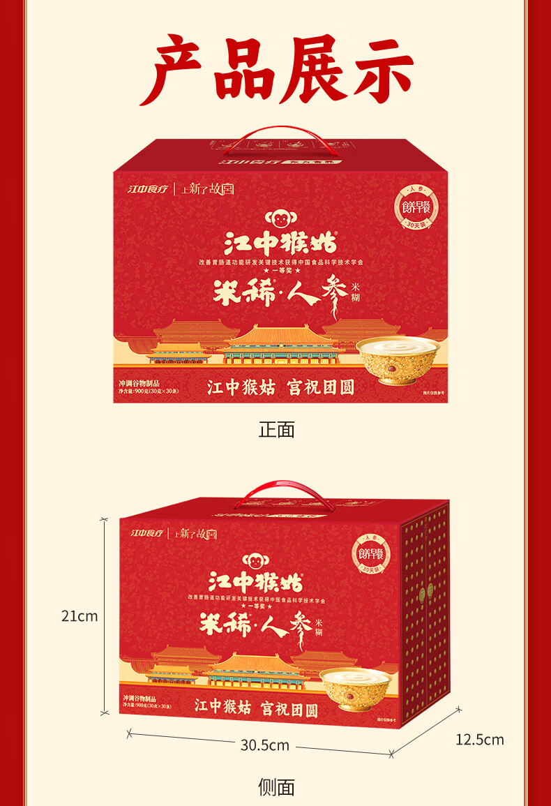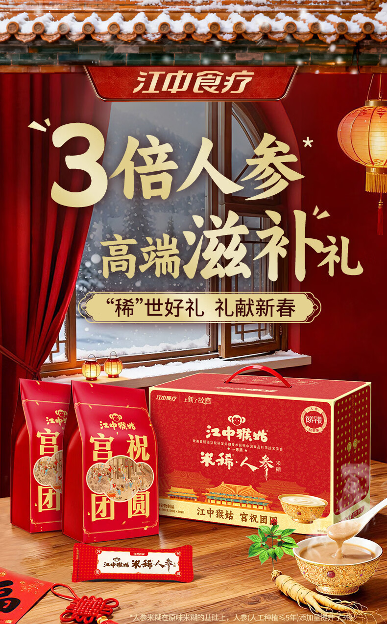 江中猴姑米稀人参米糊30天猴头菇养胃粉中老年营养品流食滋补年货礼盒900g