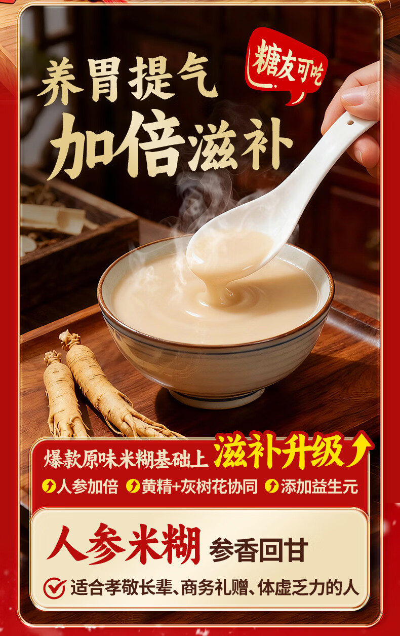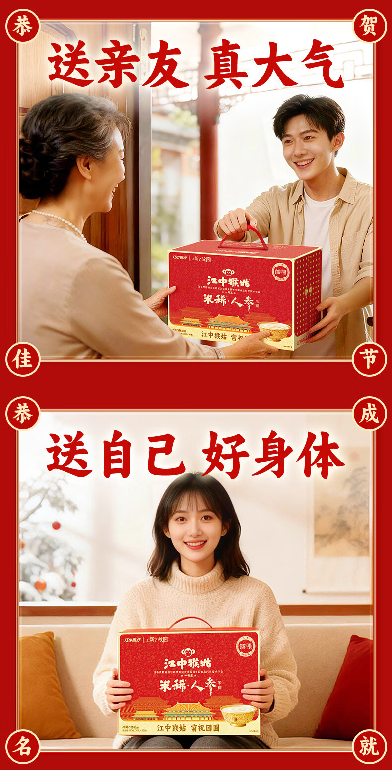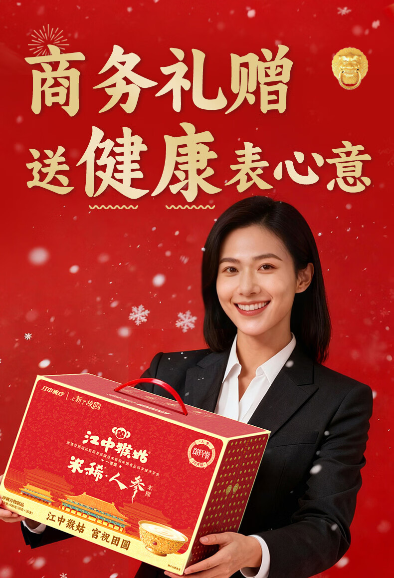 江中猴姑米稀人参米糊30天猴头菇养胃粉中老年营养品流食滋补年货礼盒900g