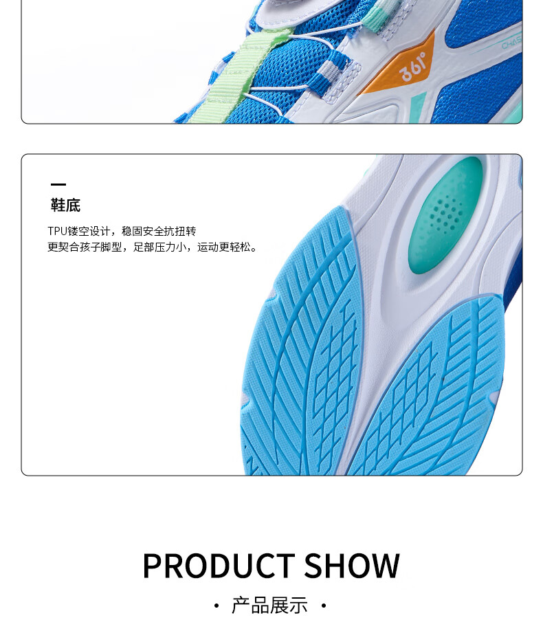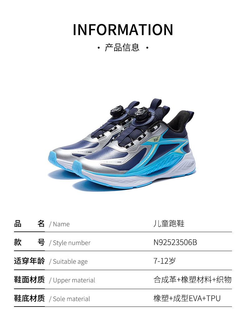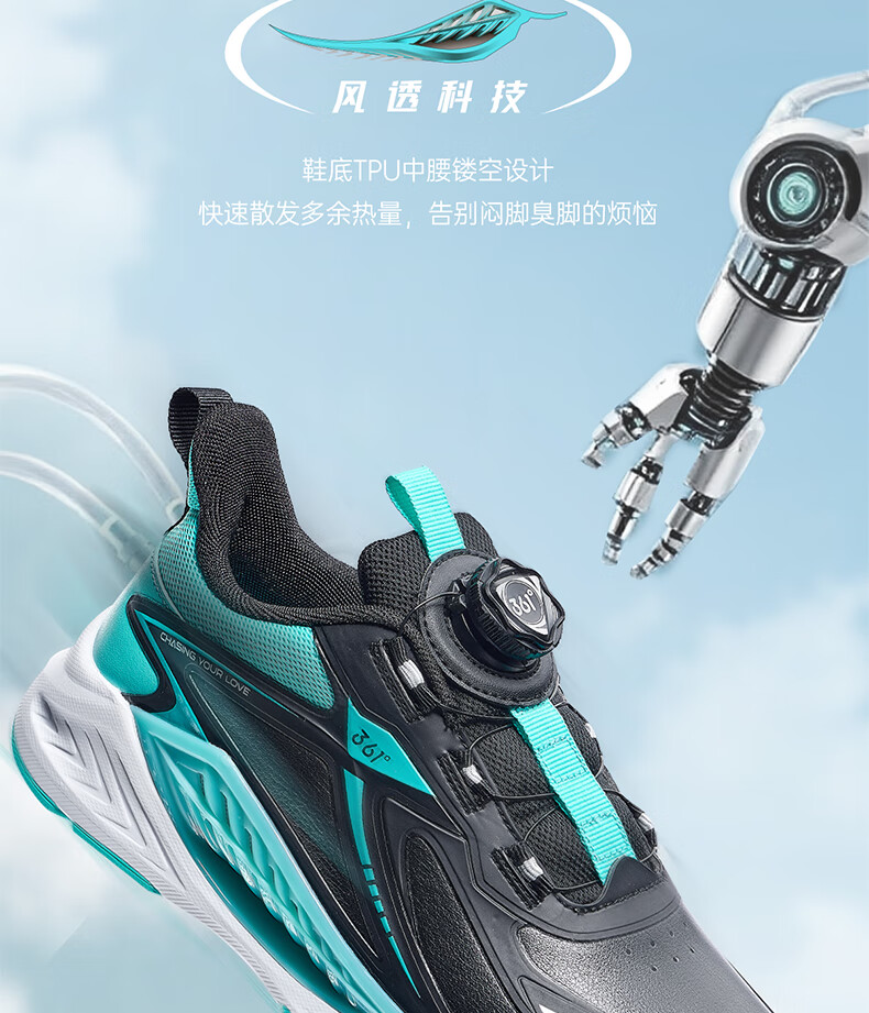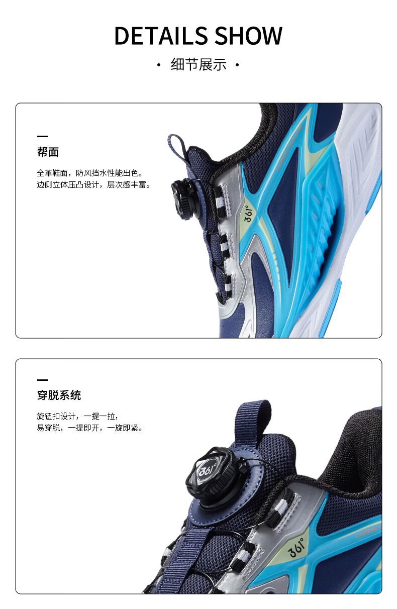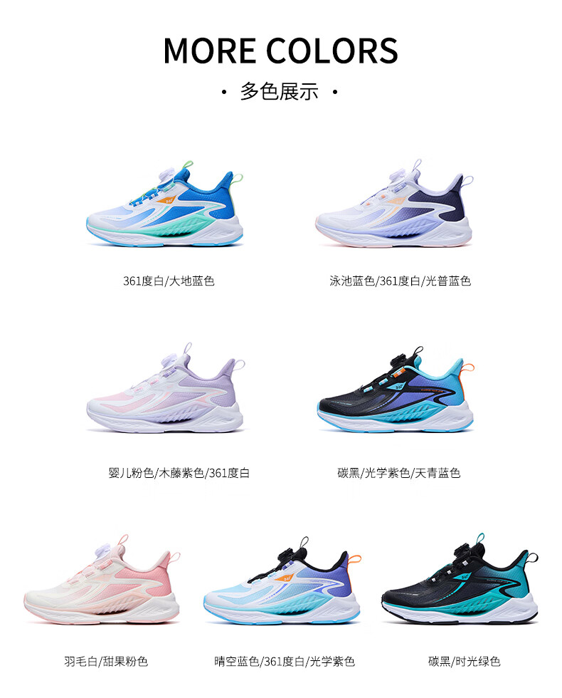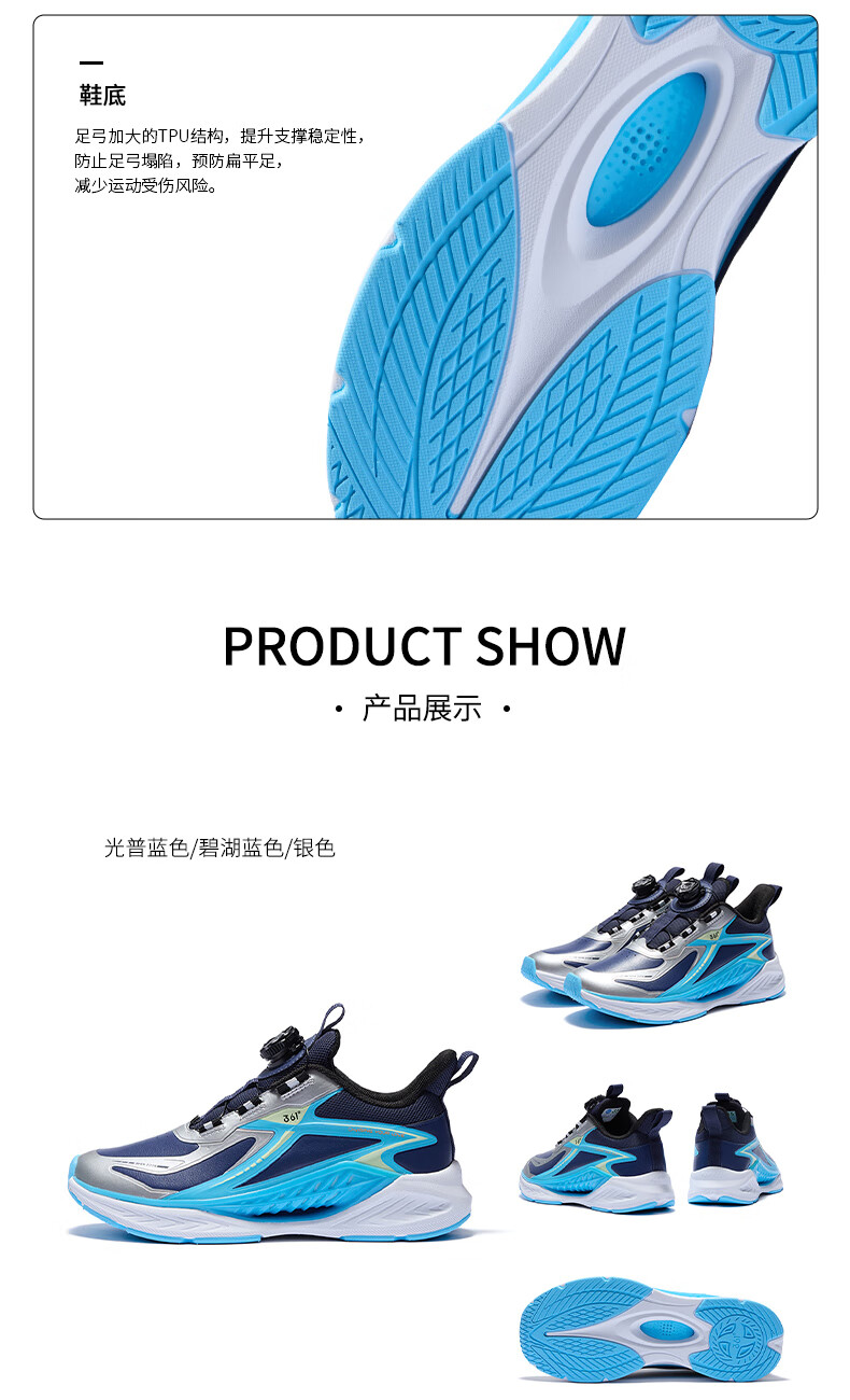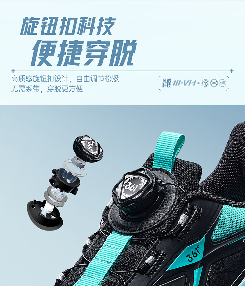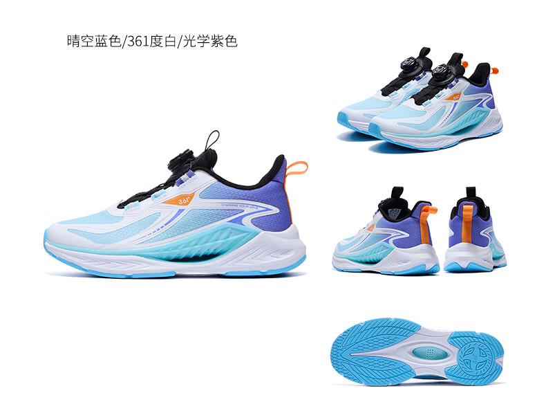 361°风透6.0儿童跑鞋25秋男女童轻弹缓震专业旋钮运动鞋 蓝39