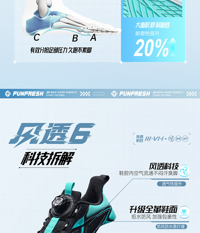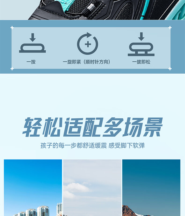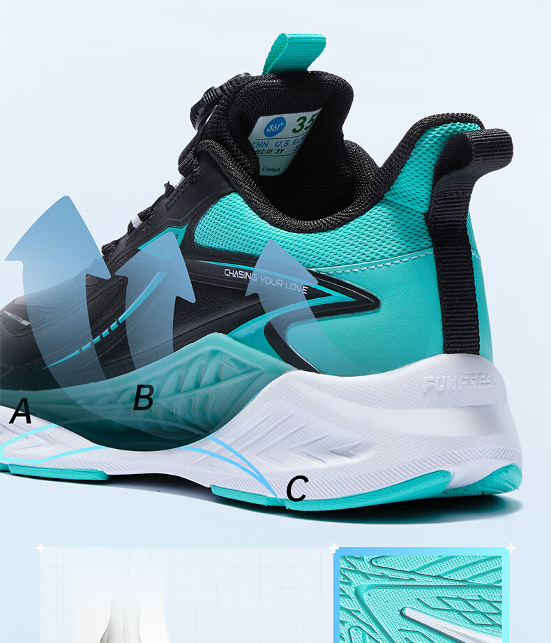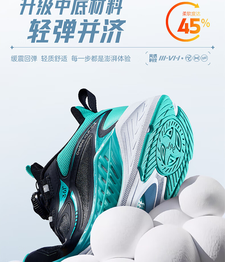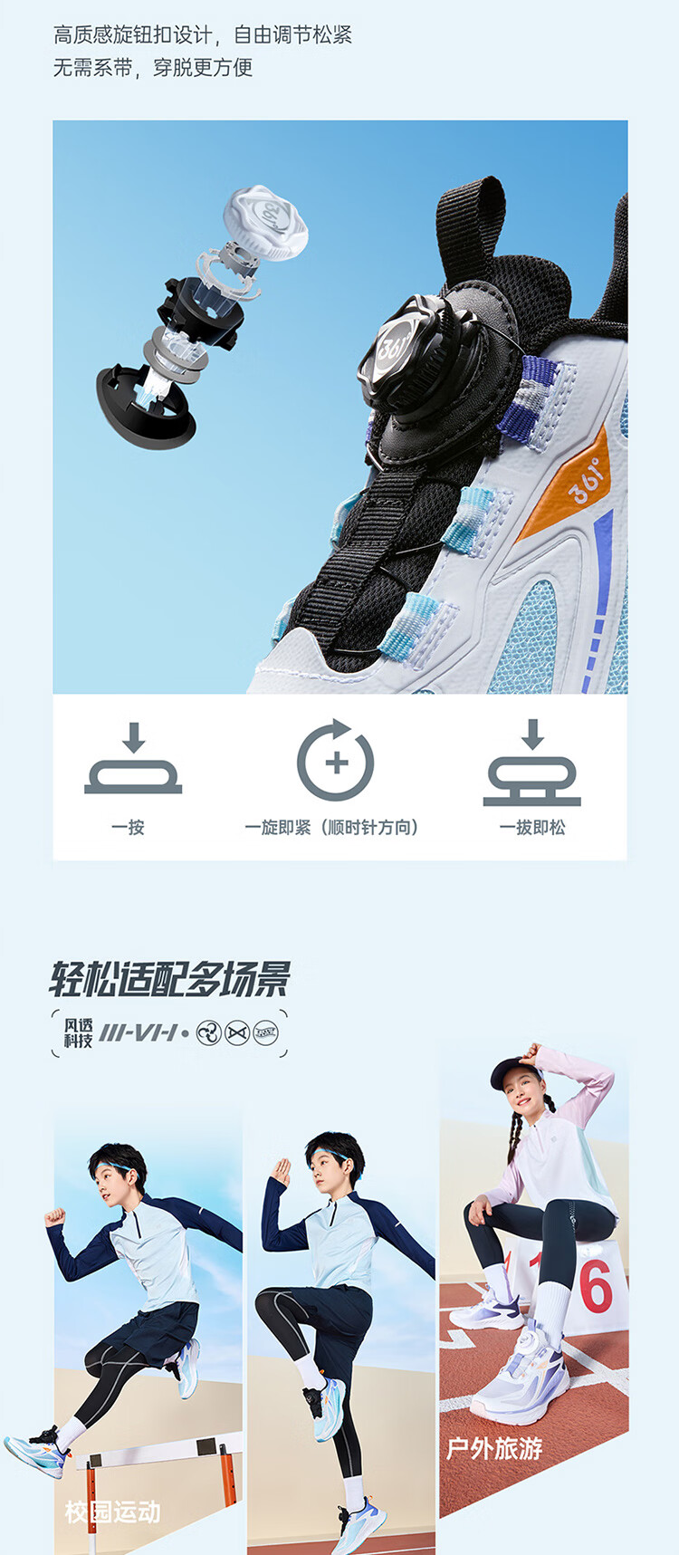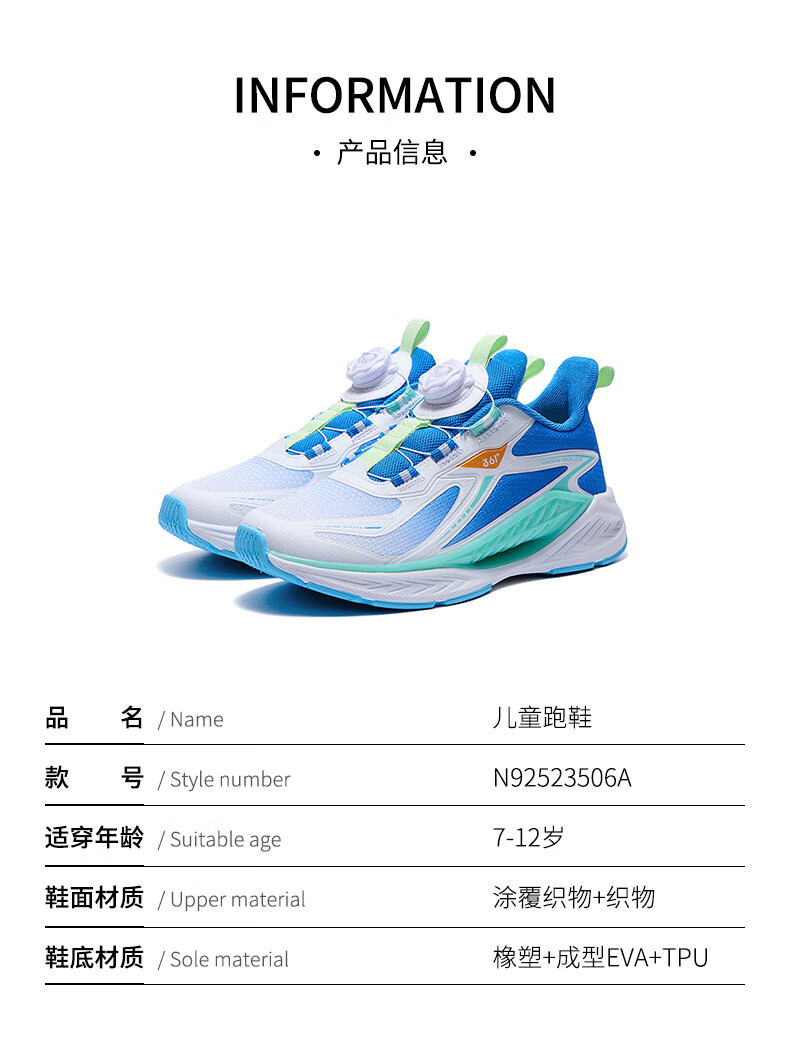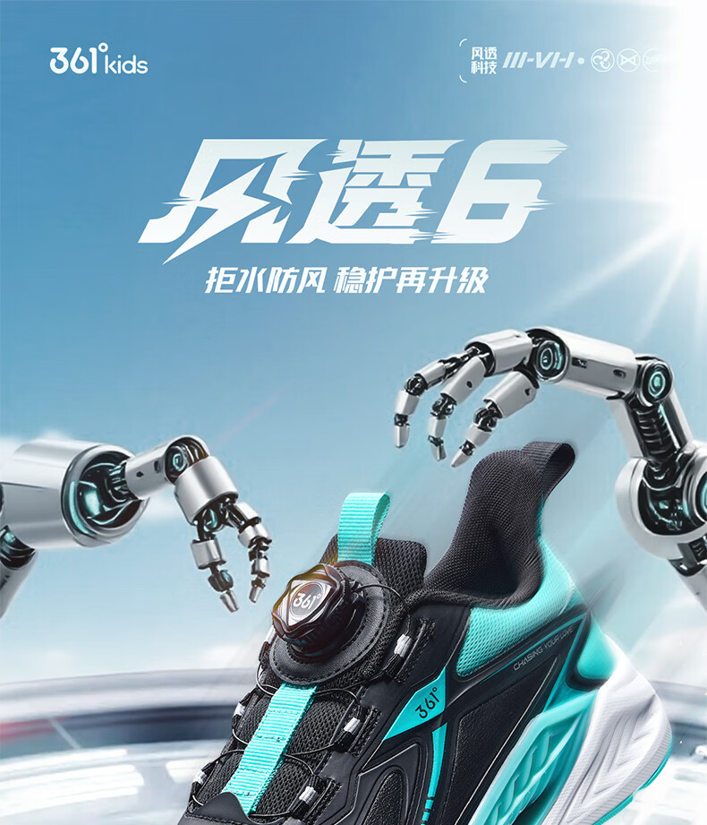 361°风透6.0儿童跑鞋25秋男女童轻弹缓震专业旋钮运动鞋 蓝39