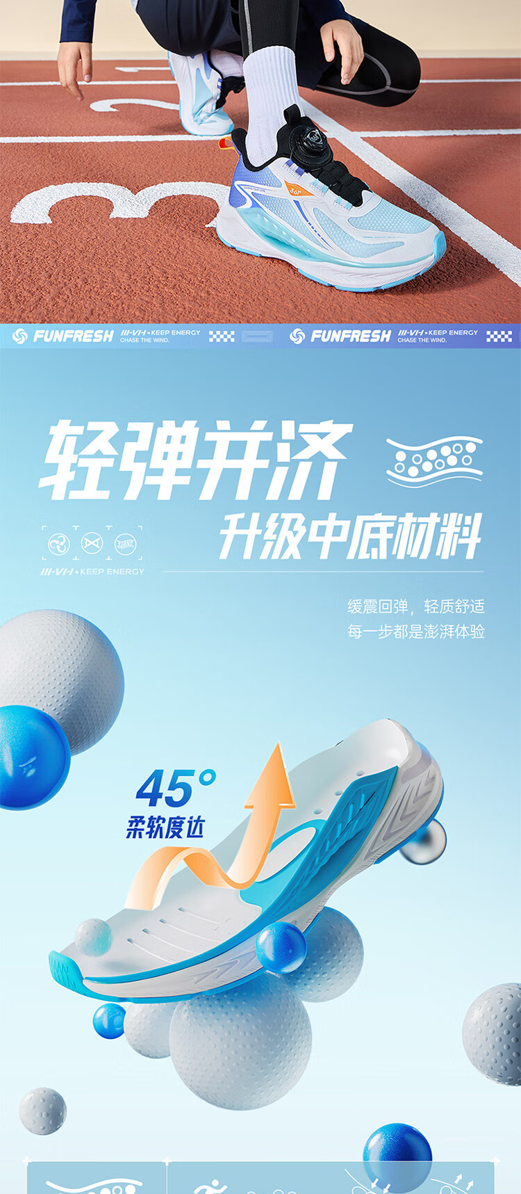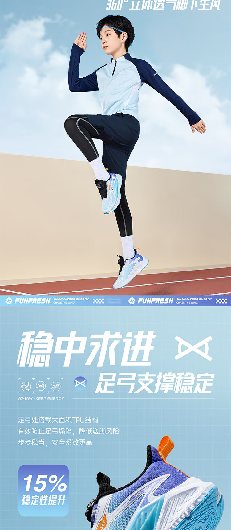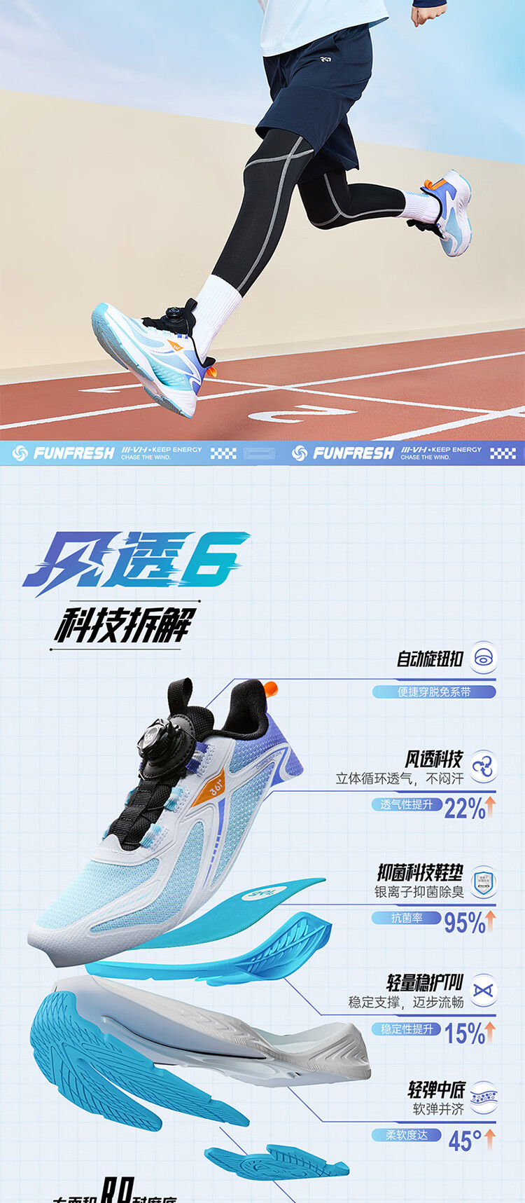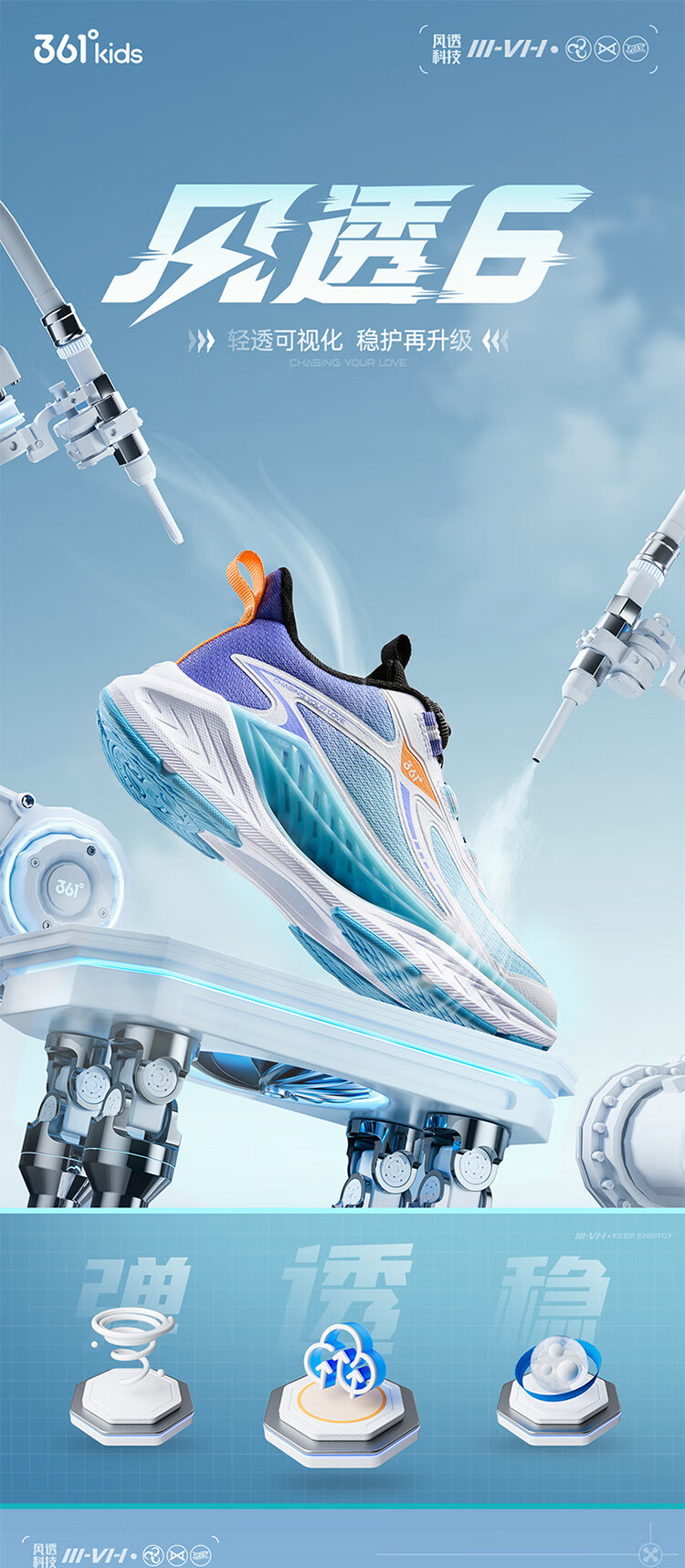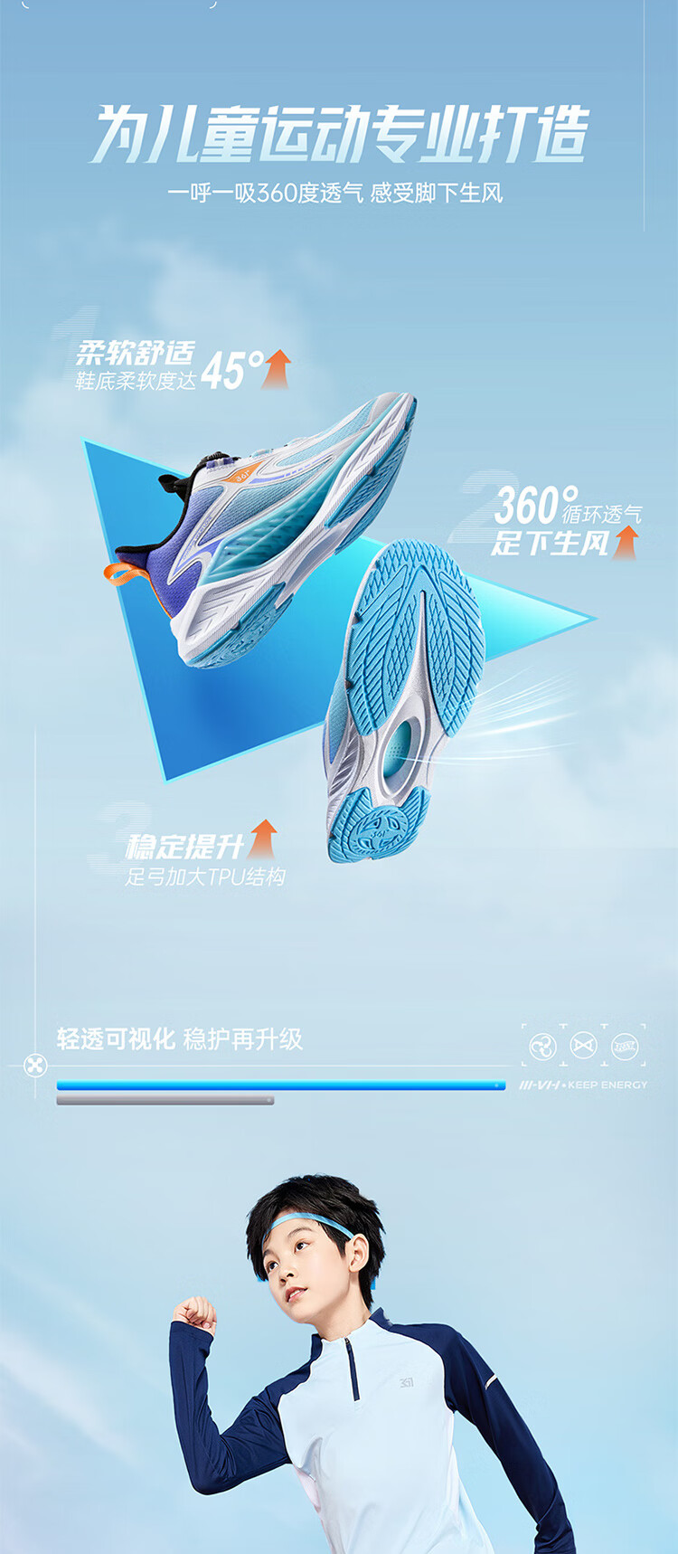 361°风透6.0儿童跑鞋25秋男女童轻弹缓震专业旋钮运动鞋 蓝39