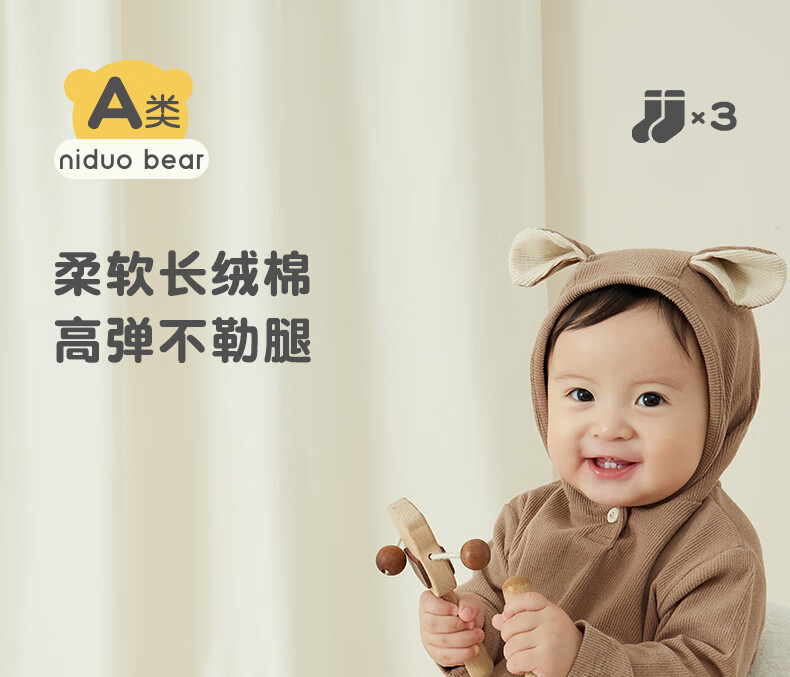 尼多熊儿童袜子秋冬婴儿长筒袜新生儿袜子棉袜宝宝过膝袜不勒脚袜子儿童