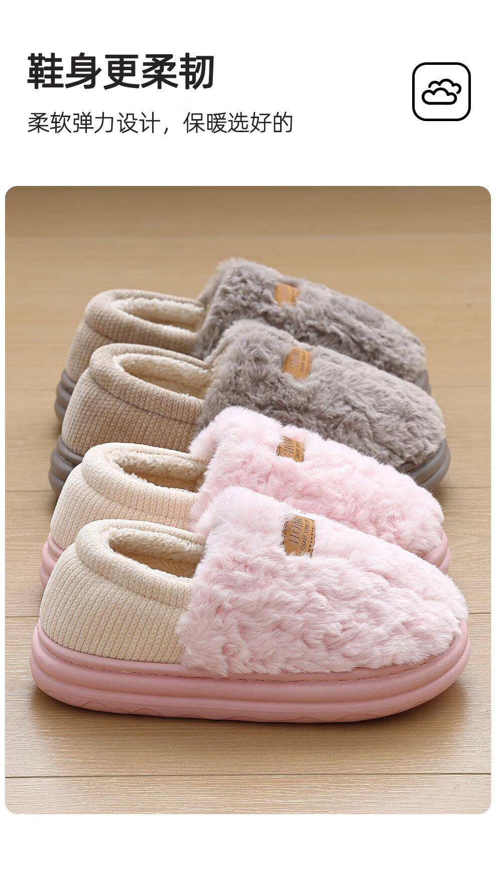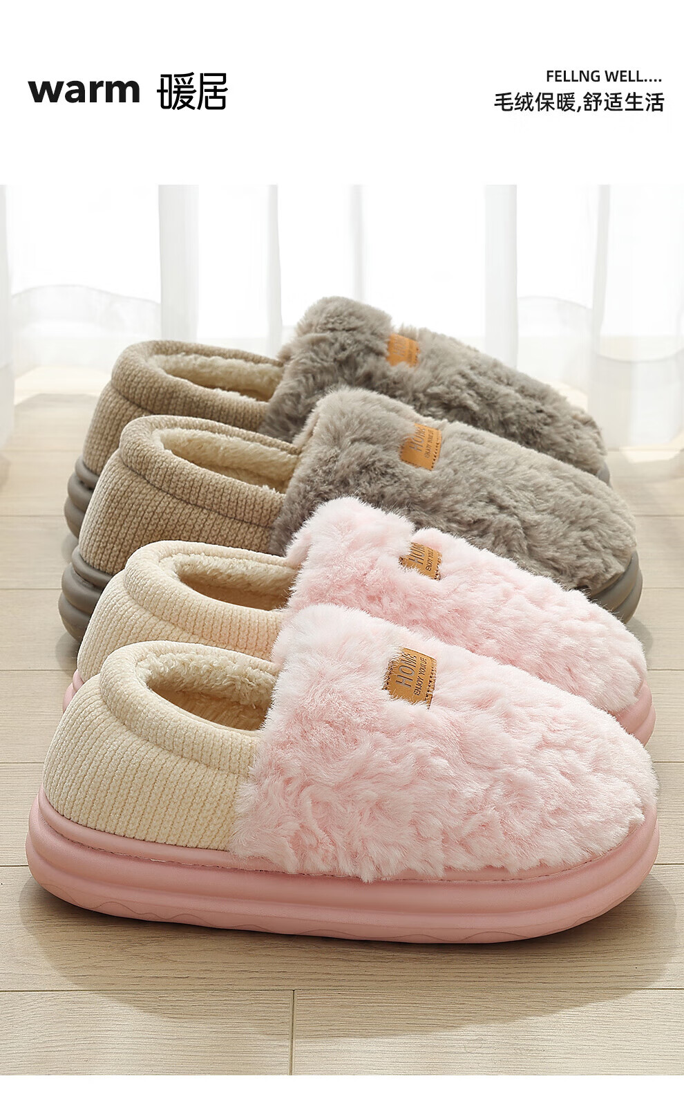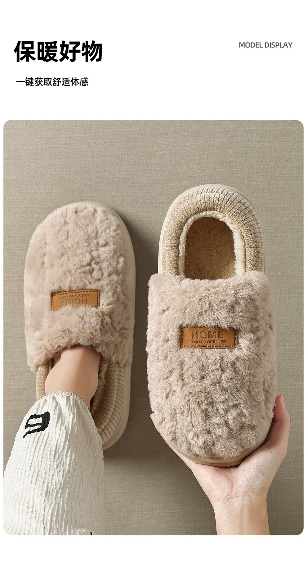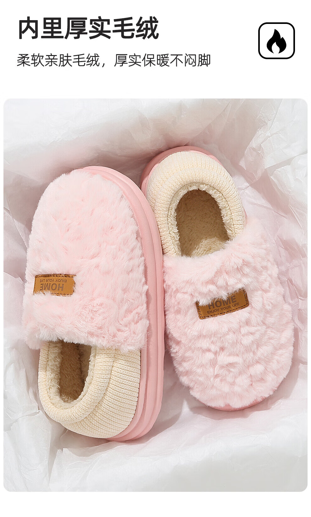 FZT保暖厚底棉拖鞋女士冬季2025新款室内居家防滑加绒加厚毛绒棉鞋男 黑色 36-37 适合35-36