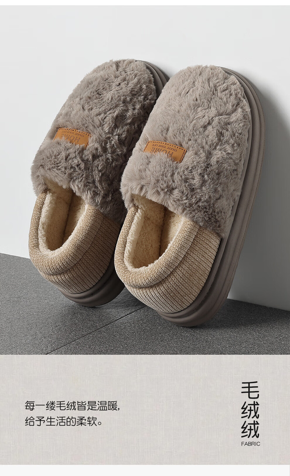 FZT包根棉拖鞋女2025冬季新款加绒保暖防风防滑室内居家棉拖鞋男 深咖色 36-37 标准码
