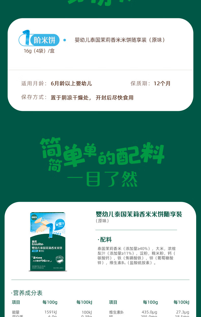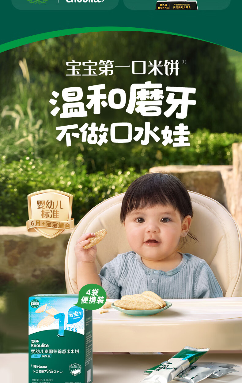 英氏(Engnice)婴幼儿香米米饼原味随享尝鲜 婴儿零食磨牙饼干营养米饼16g
