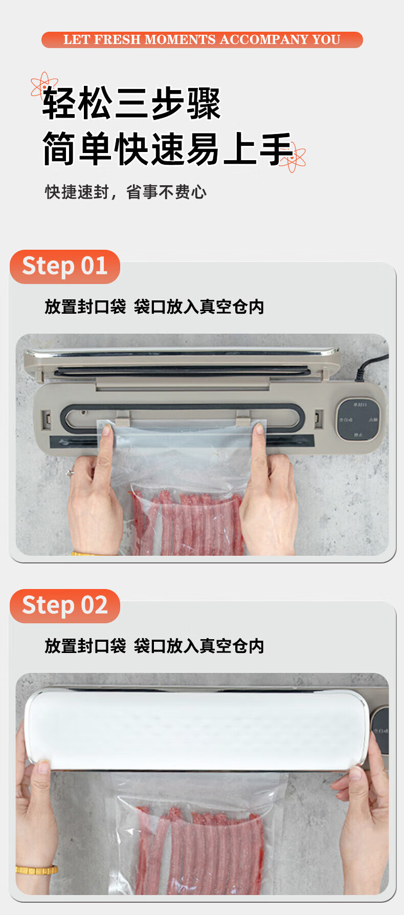 米波迪(Meebordi)真空封口机家用商用全自动抽真空机食品打包塑封包装机腊肉腊肠真空压缩神器生日礼物送50只塑封袋