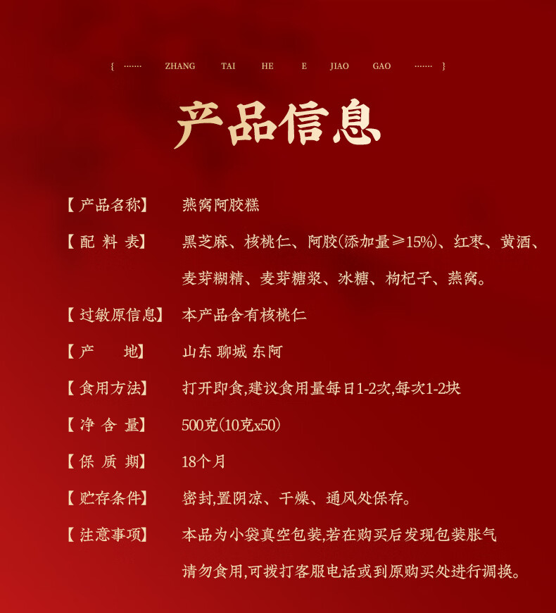 张太和红枣枸杞阿胶固元糕 燕窝红枣枸杞 阿胶糕固元膏即食山东东阿产地 红枣枸杞阿胶固元糕 200g*1盒