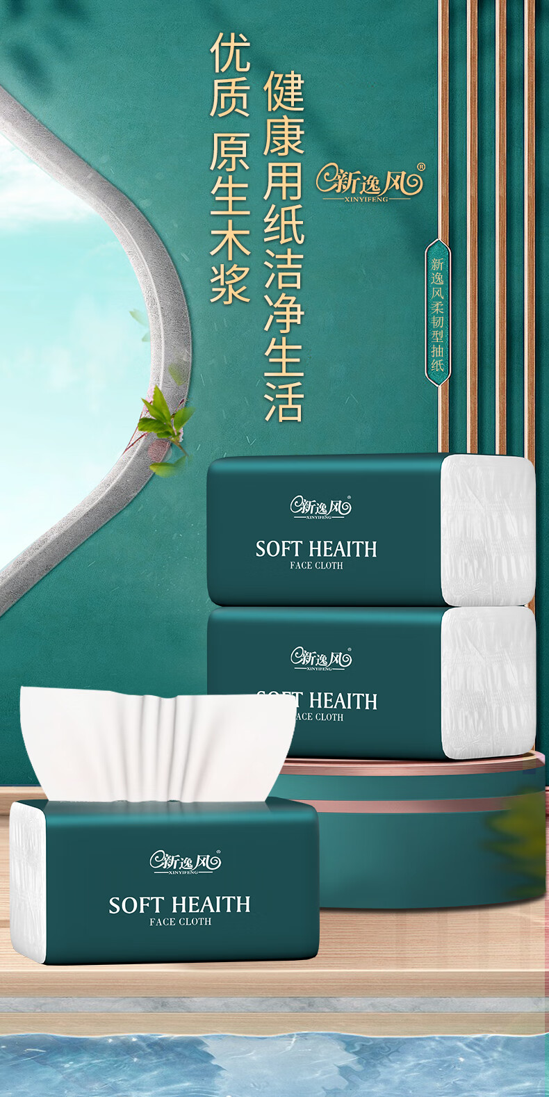 新逸风(XINYIFENG)抽纸面巾纸餐巾纸家用箱装纸巾批发卫生纸抽 3层 300张*24包