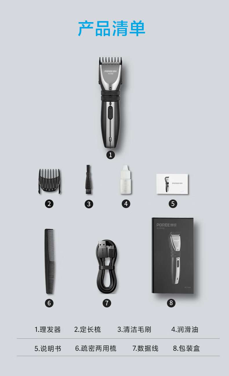 飞科博锐理发器电推子成人电推剪家用电动剪发器 自理发神器剃头发电推子家庭理发工具套装 PC1905