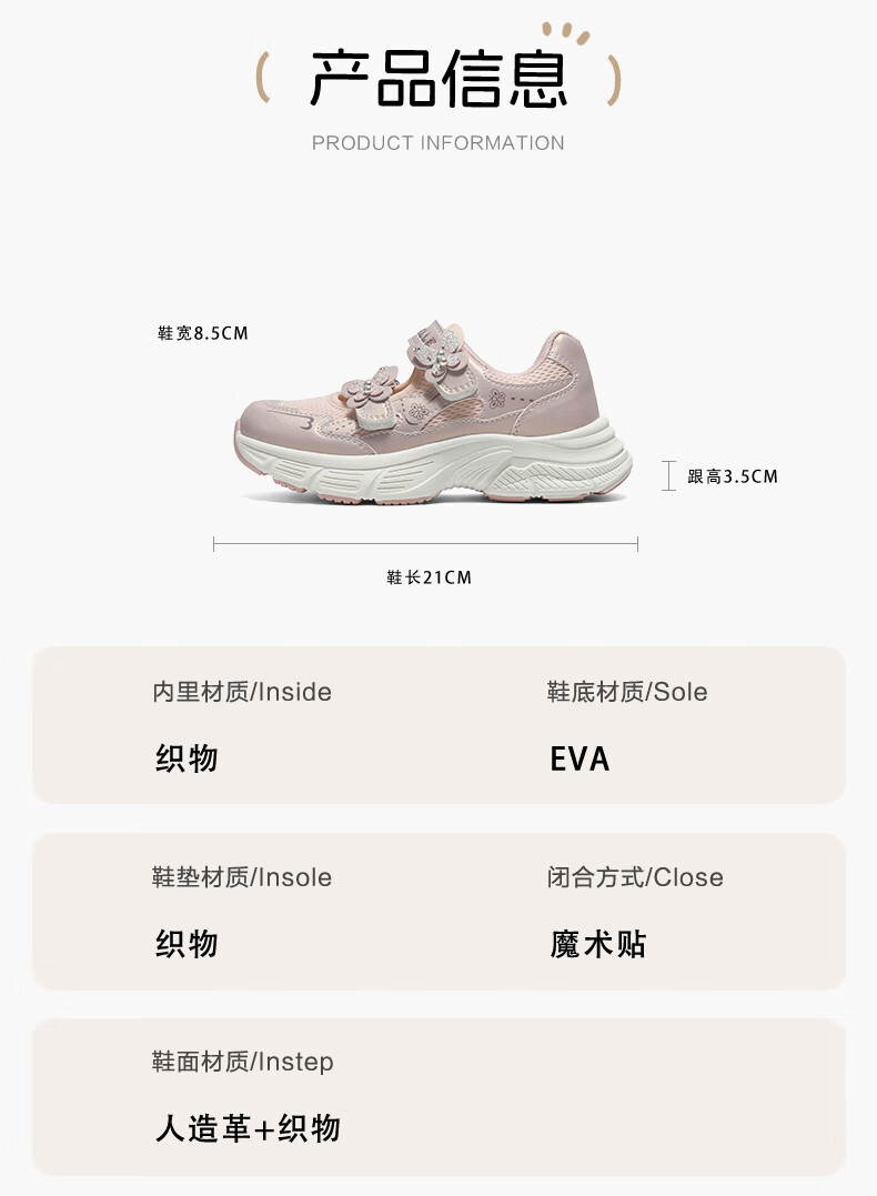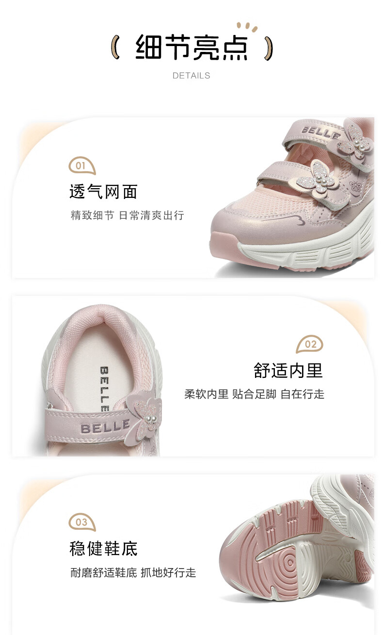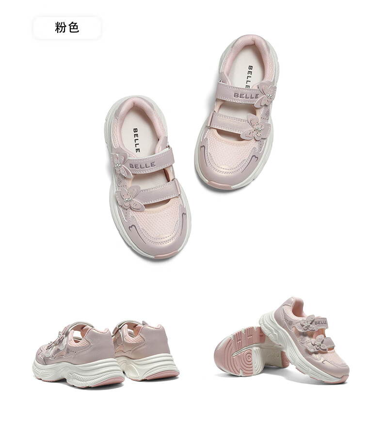 百丽(Belle)蝴蝶老爹鞋女童2025秋新商场同款便捷魔术贴休闲鞋A6555C85 粉色 30