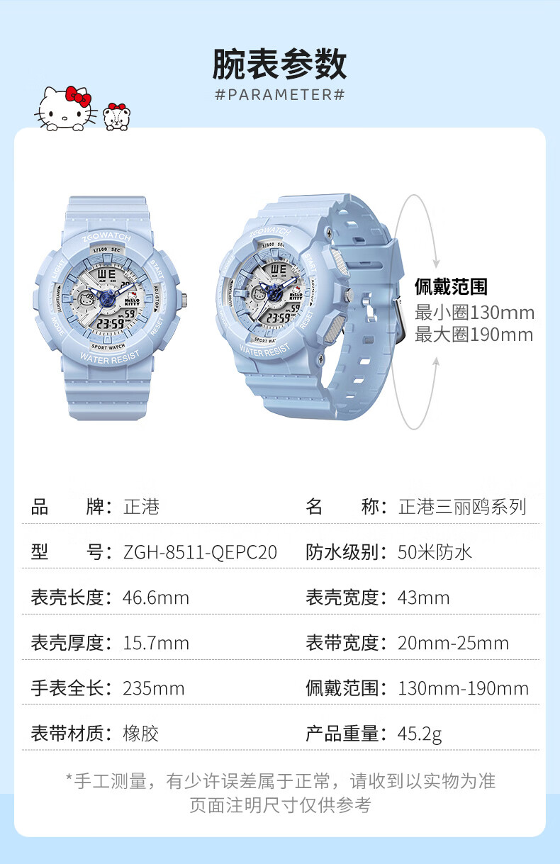 Hello Kitty手表女学生夜光防水三丽鸥青少年初中高中学生运动电子手表 8511
