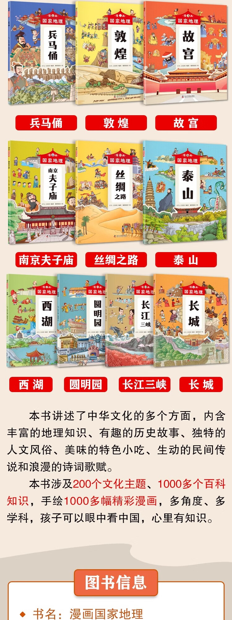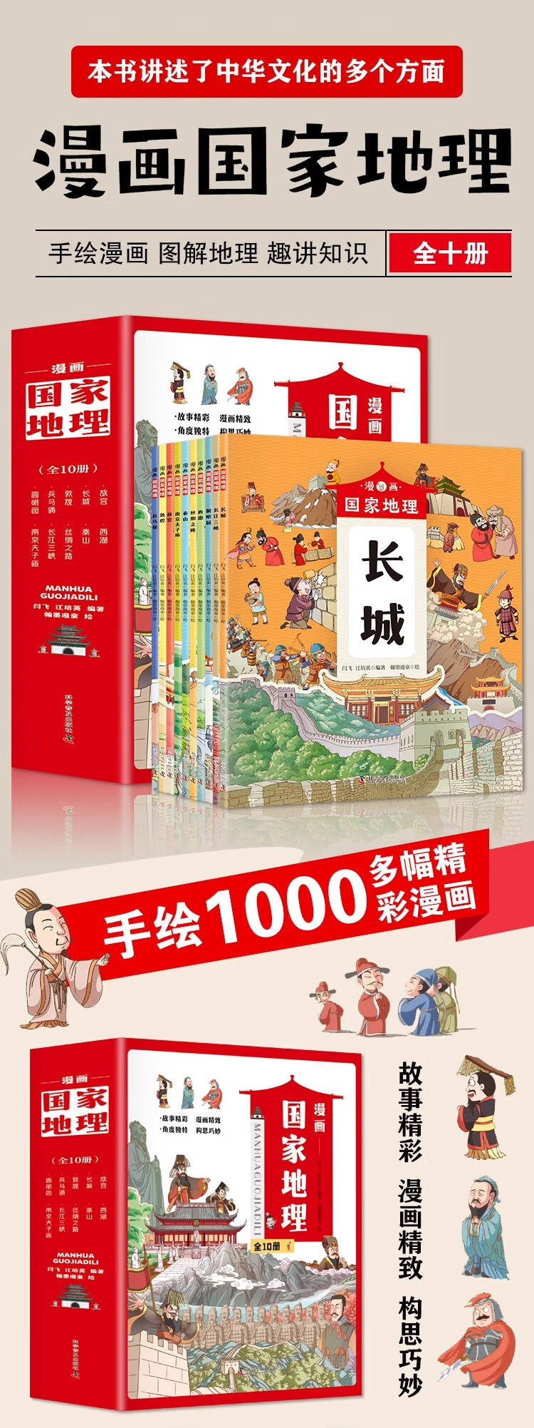 漫画中国国家地理绘本全10册故宫长城西湖圆明园小学生青少年科普绘本写给儿童的中国地理百科全书 【全套10册】漫画国家地理 无规格