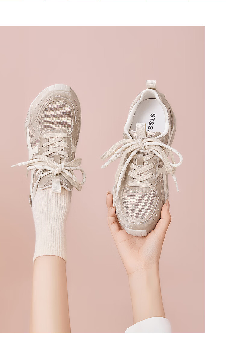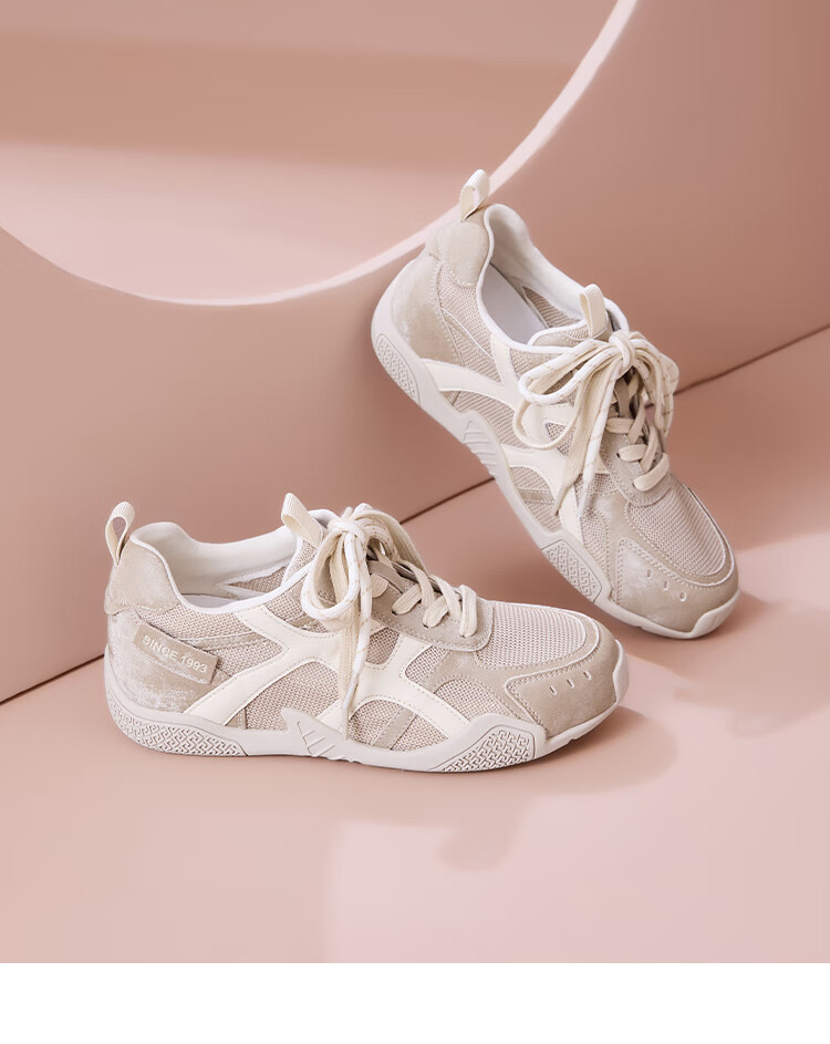 星期六百搭软底阿甘鞋女款2025新款秋季新款透气厚底运动鞋德训鞋 杏色 35