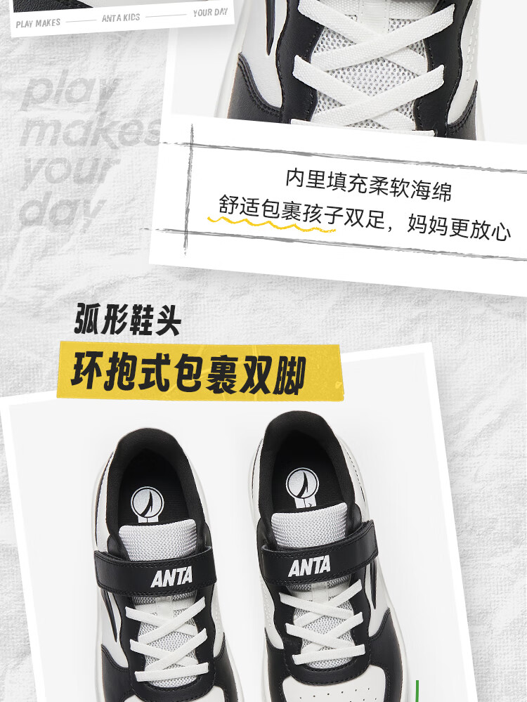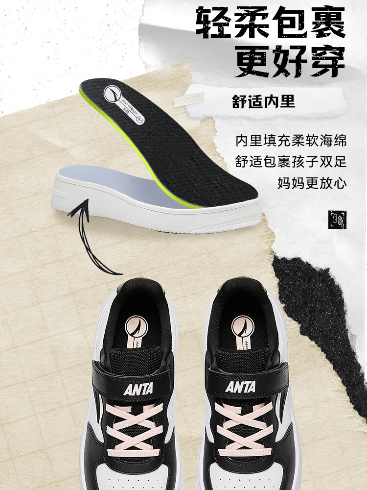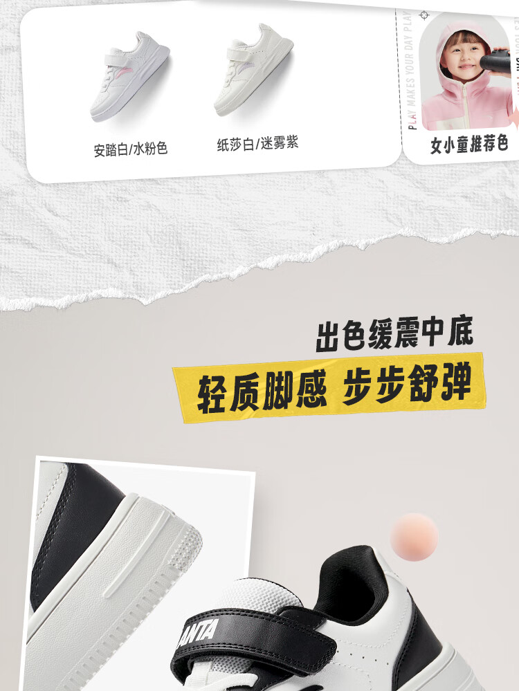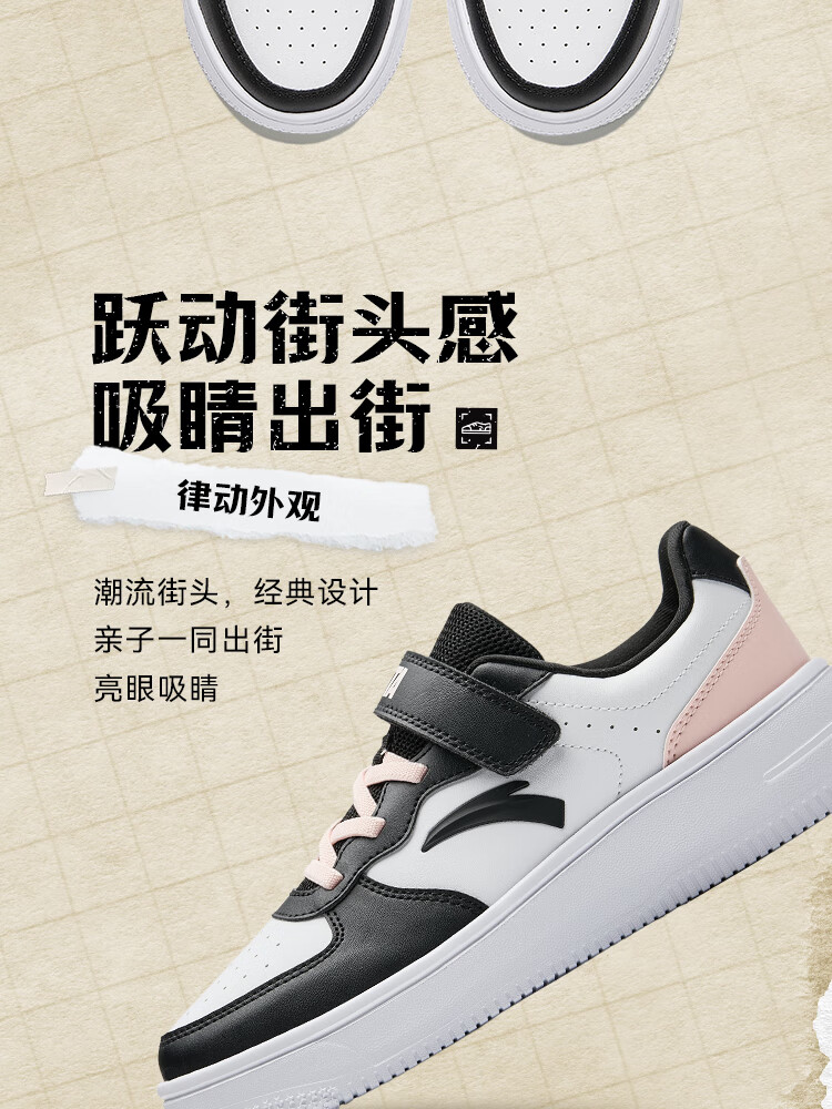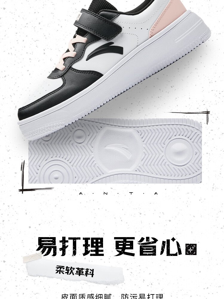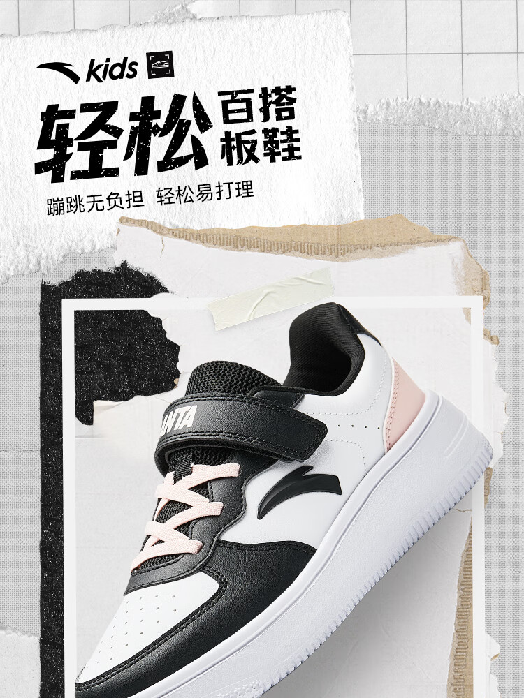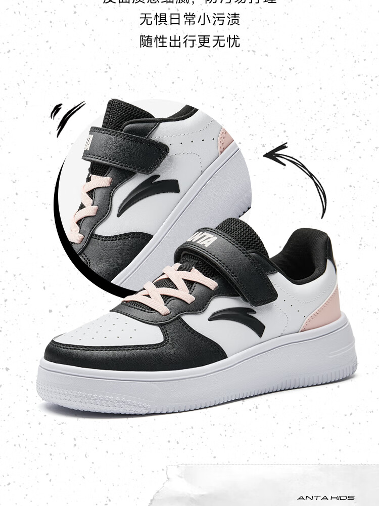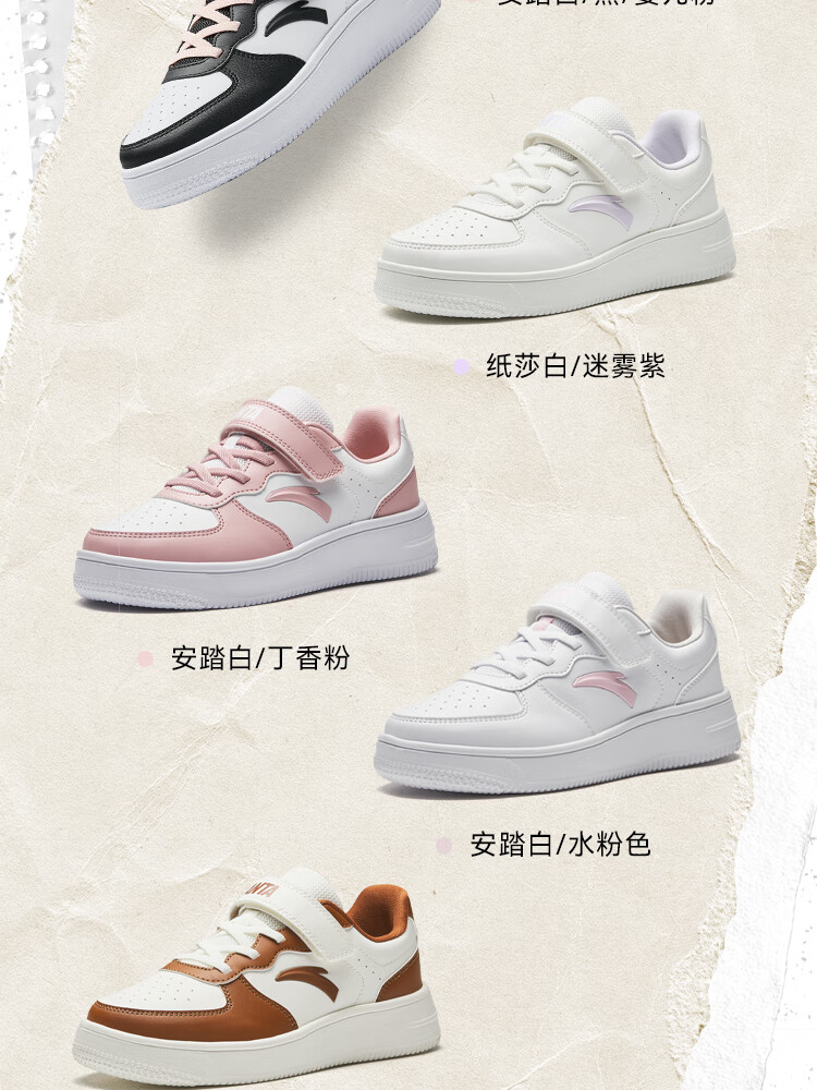 安踏儿童运动鞋男女大童低帮板鞋春秋季新款潮流舒适百搭革面休闲鞋 【女升级版】纸莎白-3 38