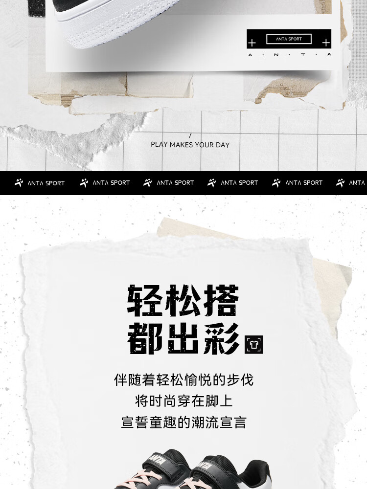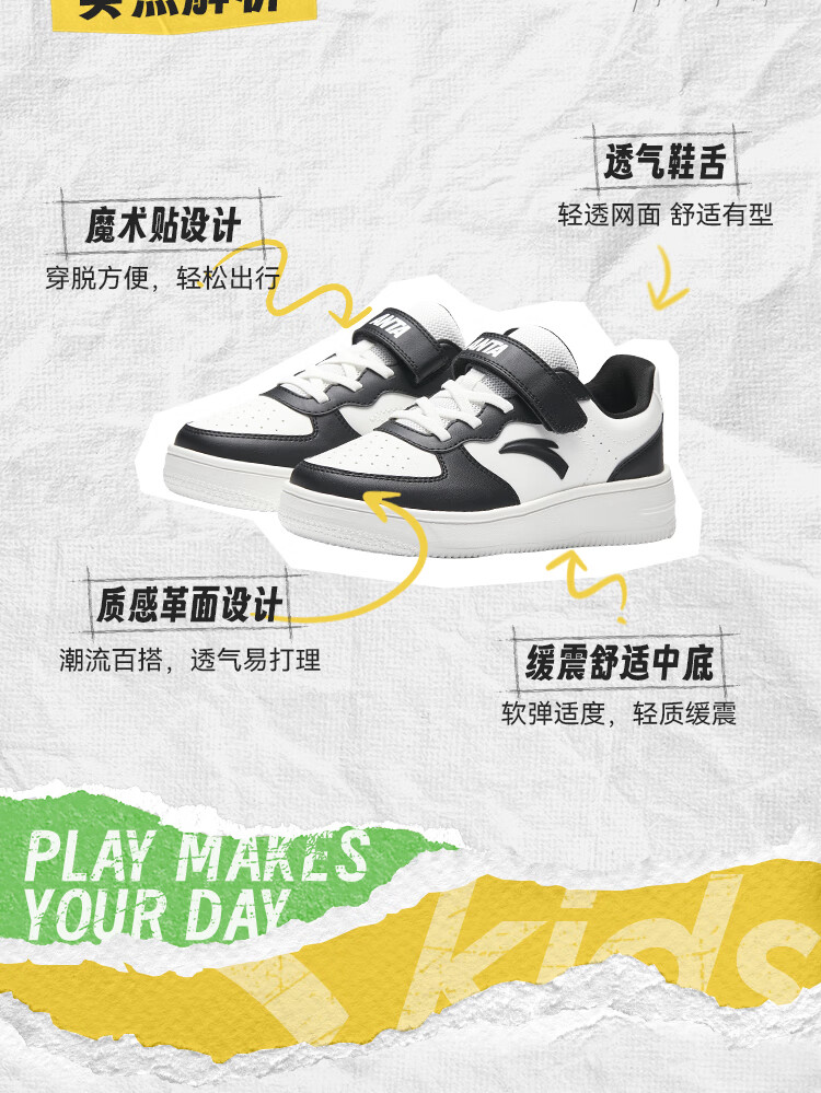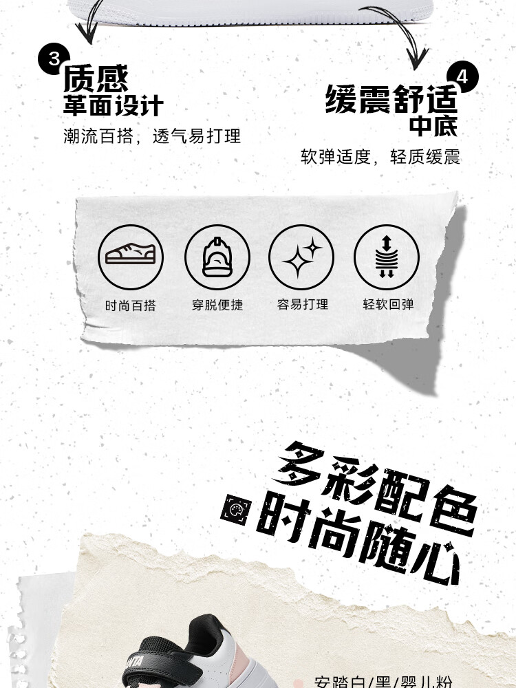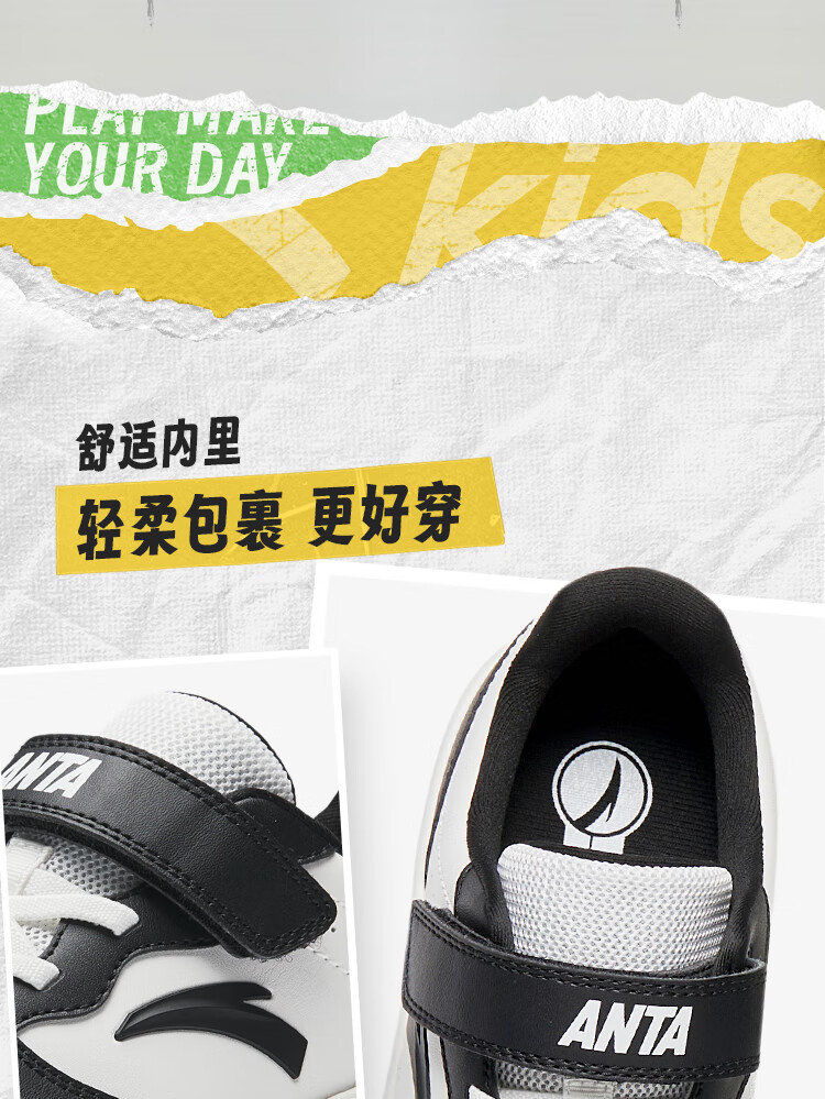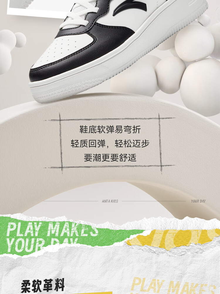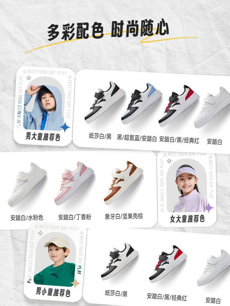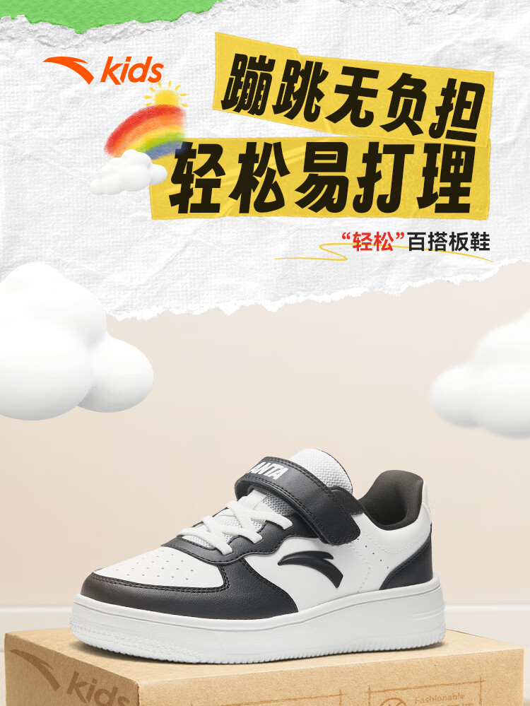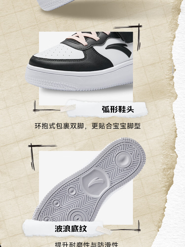 安踏儿童运动鞋男女大童低帮板鞋春秋季新款潮流舒适百搭革面休闲鞋 【女升级版】纸莎白-3 38