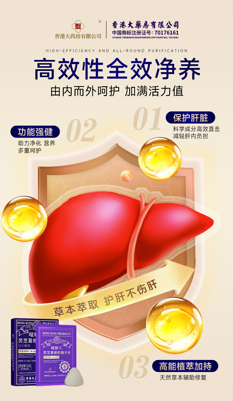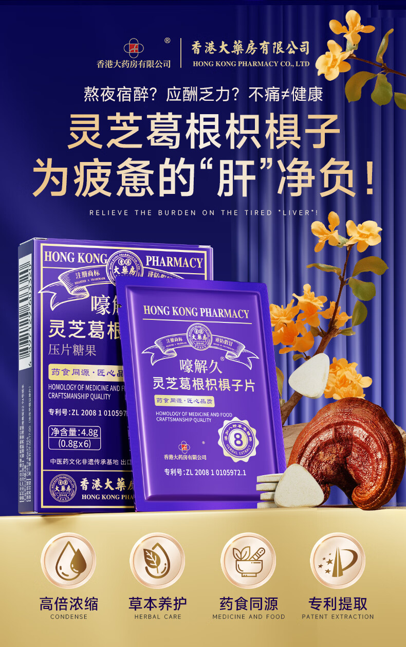 香港大药房有限公司解酒神器护肝i药片喝酒前灵芝葛根枳棋子片养肝排毒养肝熬夜喝酒 1盒【百万顾客极力推荐】买2送1