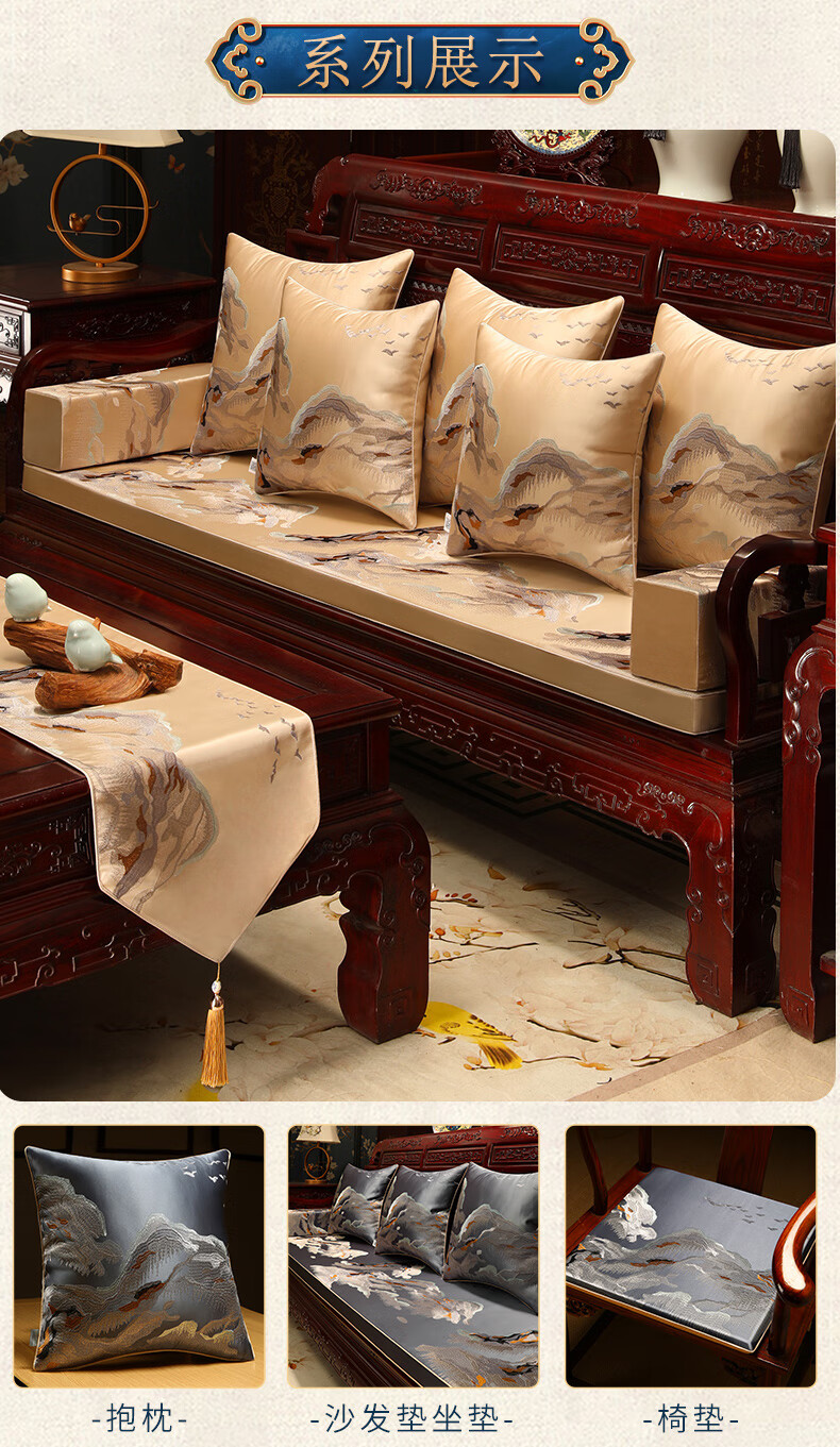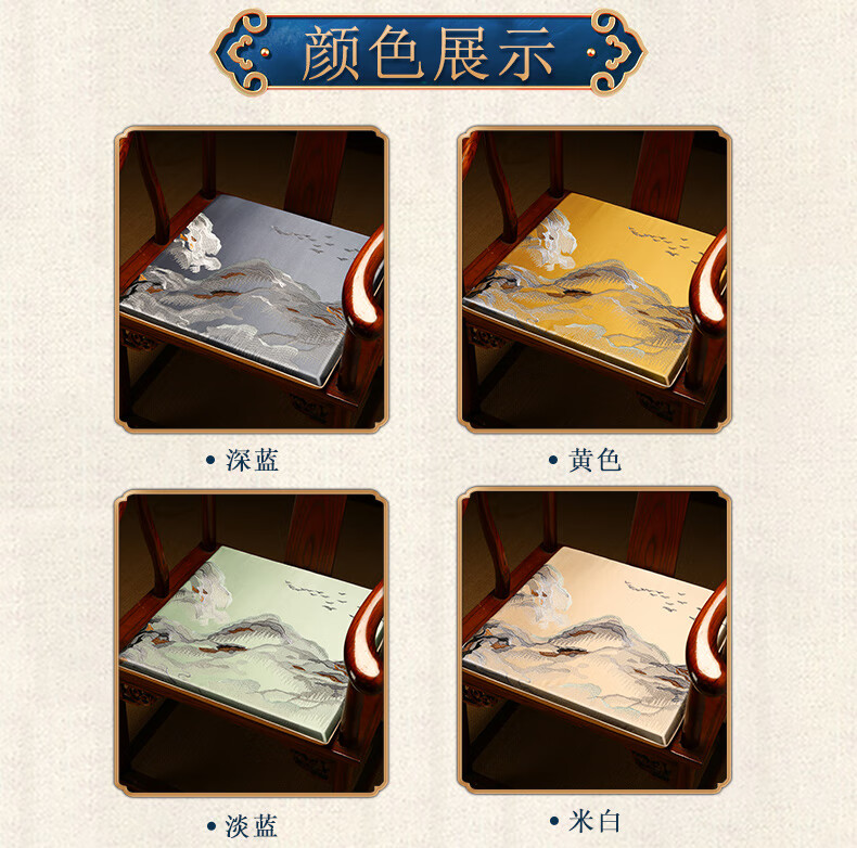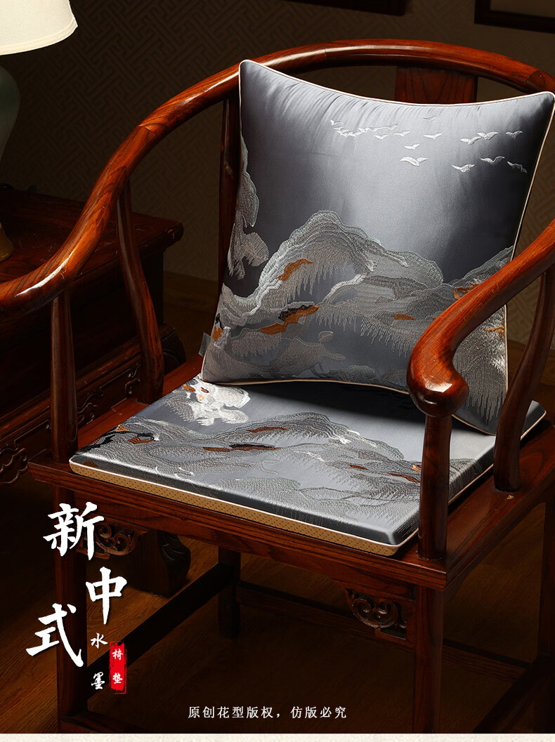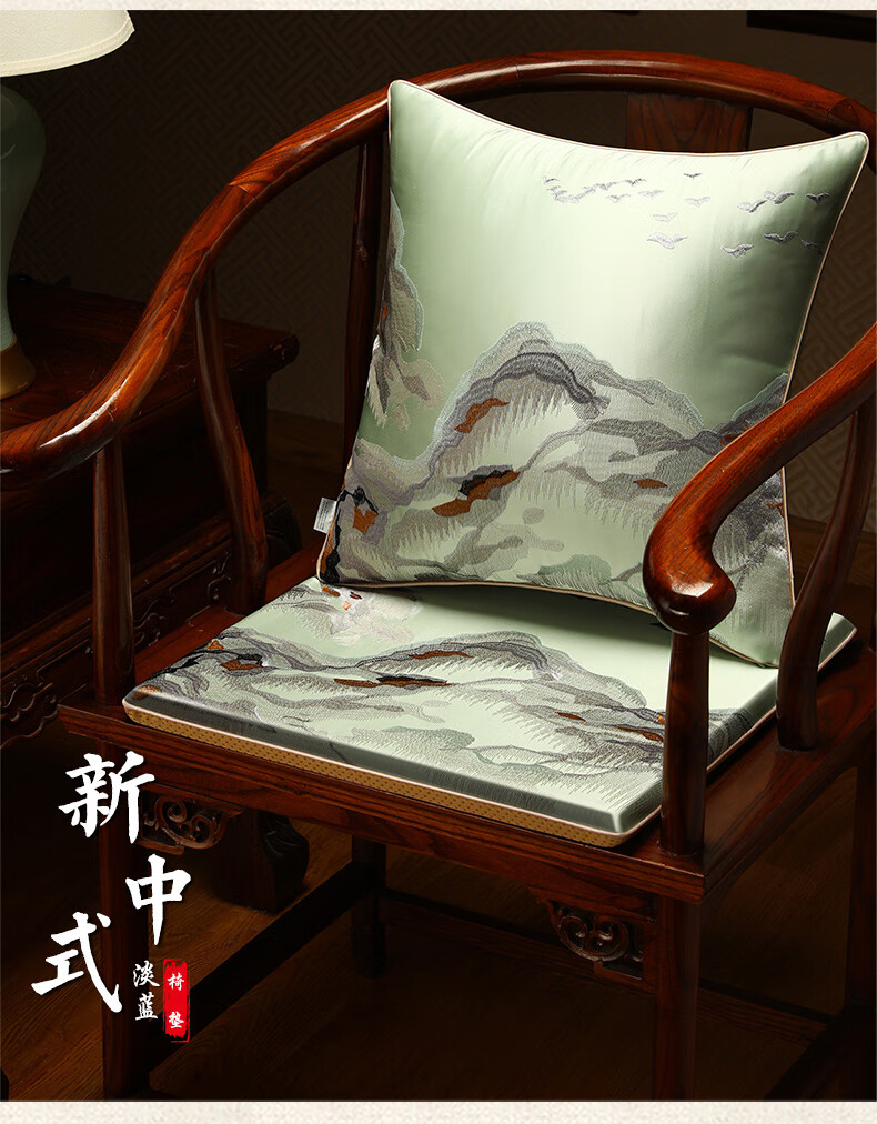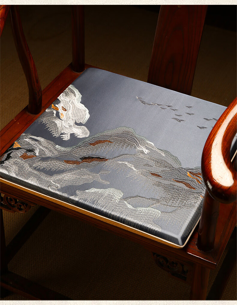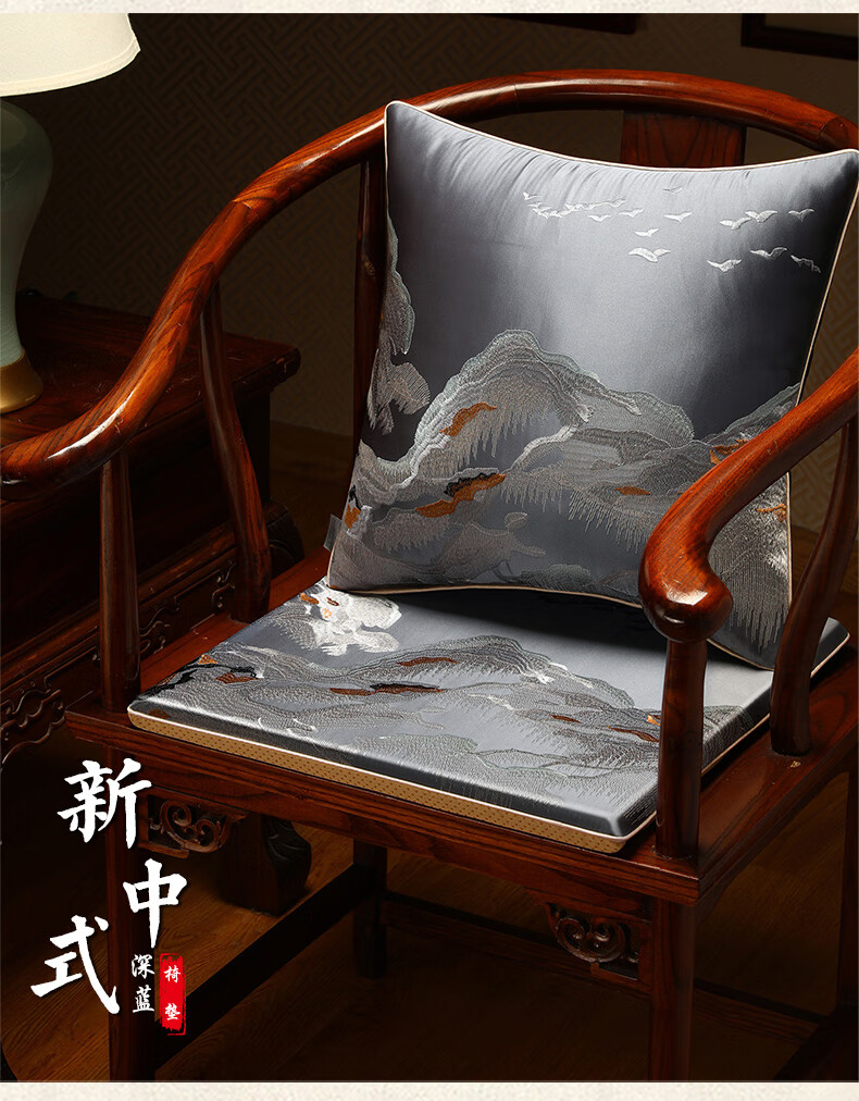 大唐梦红木椅子坐垫久坐屁股不疼垫子中式海绵座椅垫实木家具沙发垫定制 水墨 高精密 深蓝【刺绣/防滑/防水】 【更多沙发款式尺寸垫子定制】请联系客服