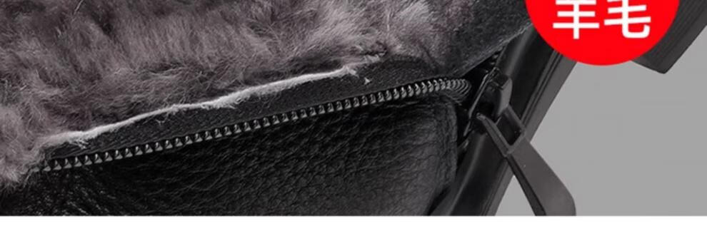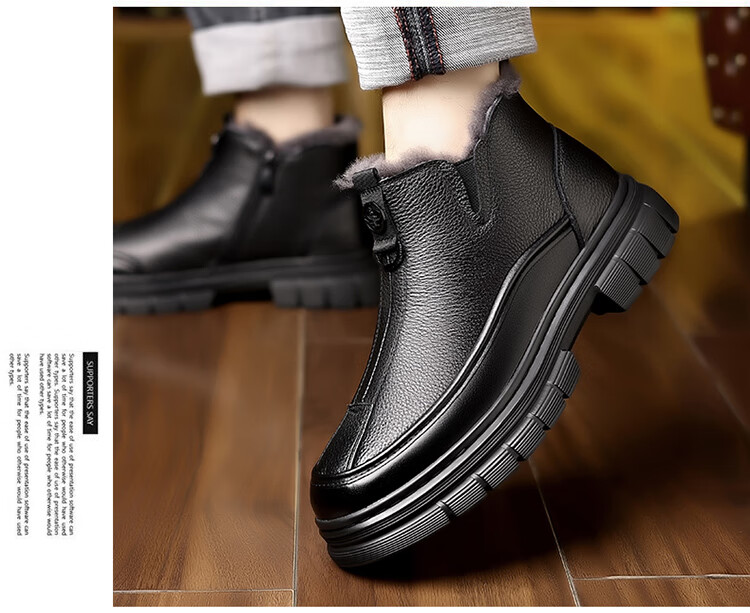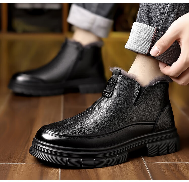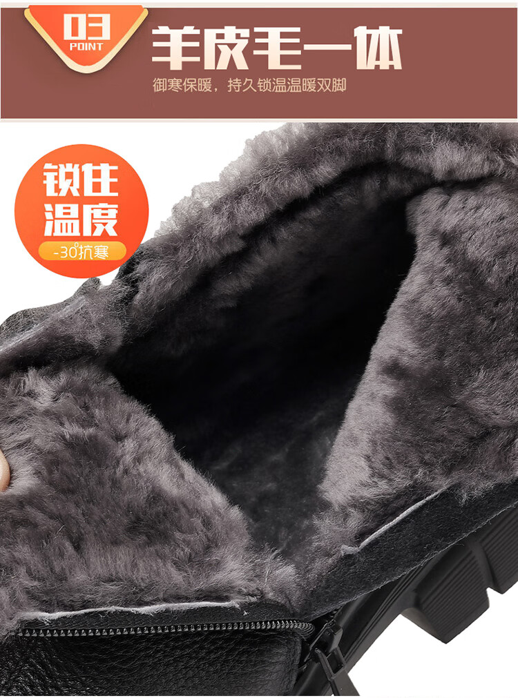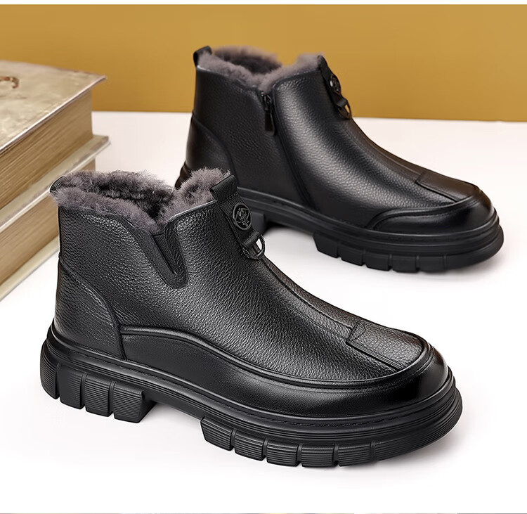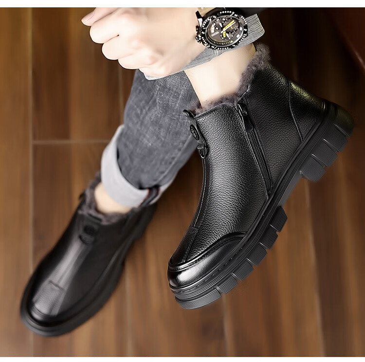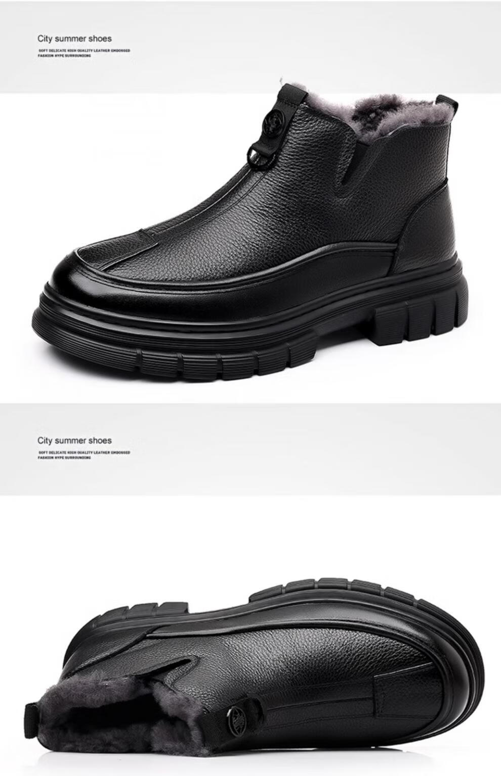 稻草人(MEXICAN)棉鞋男款2026冬季新款真皮羊毛休闲爸爸高帮鞋加绒加厚保暖雪地靴 黑色 38 【标准皮鞋码】