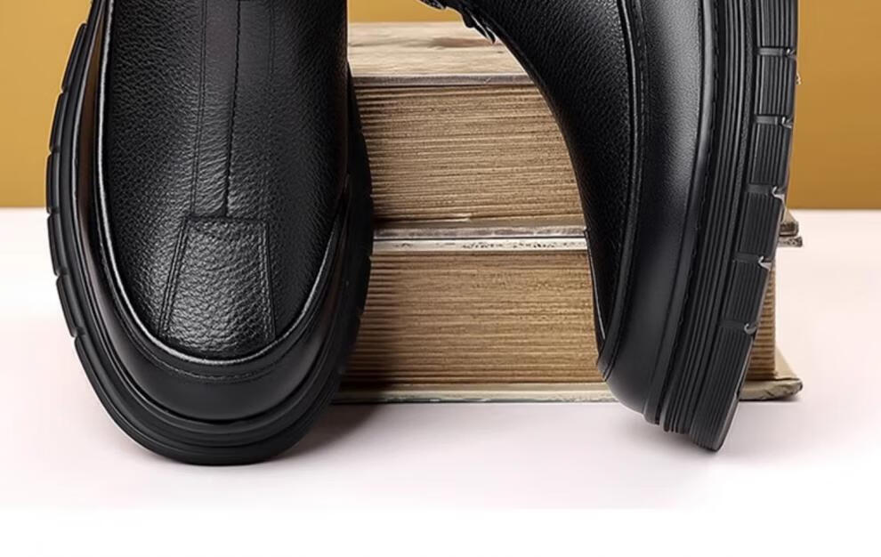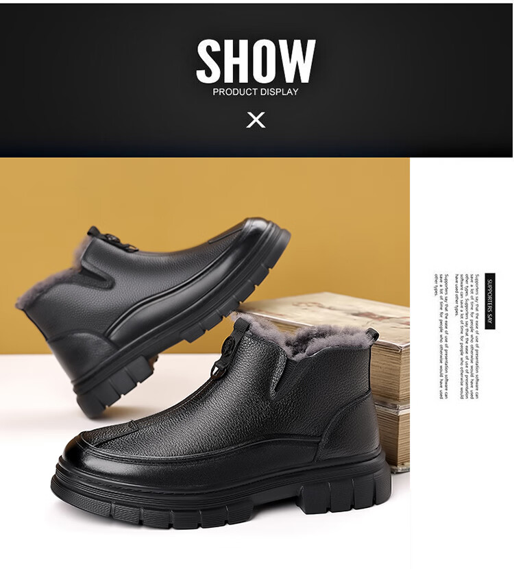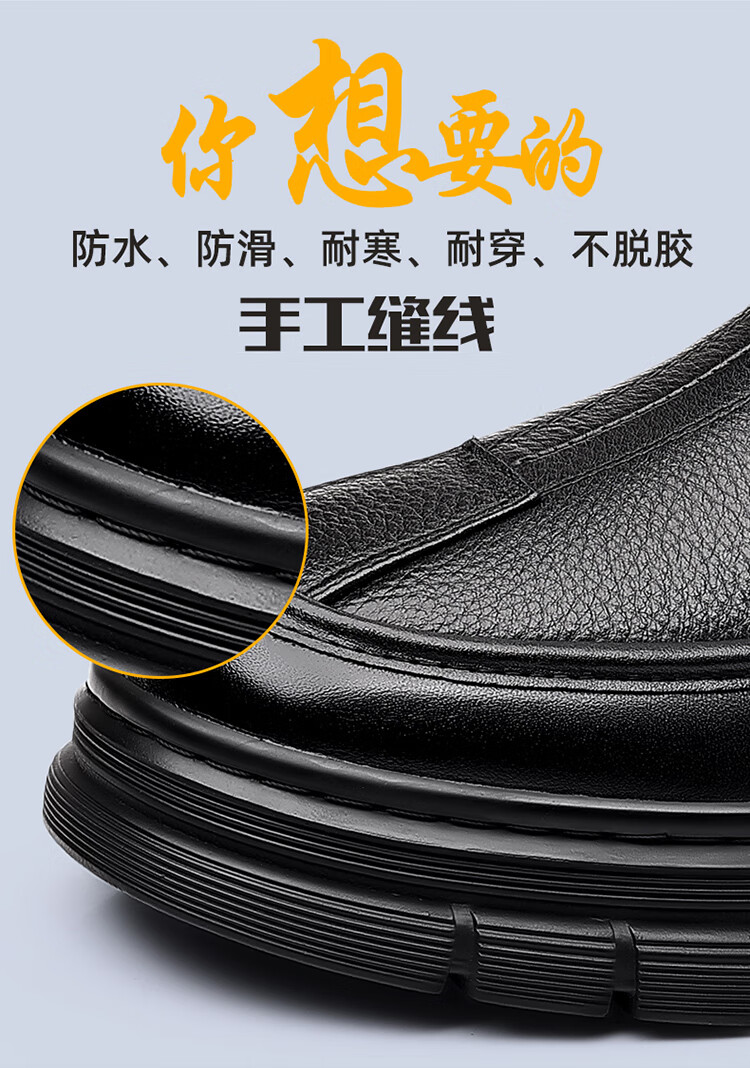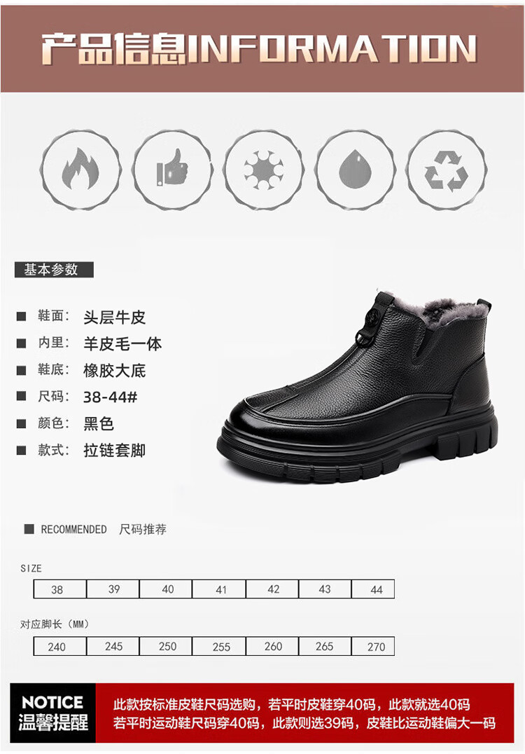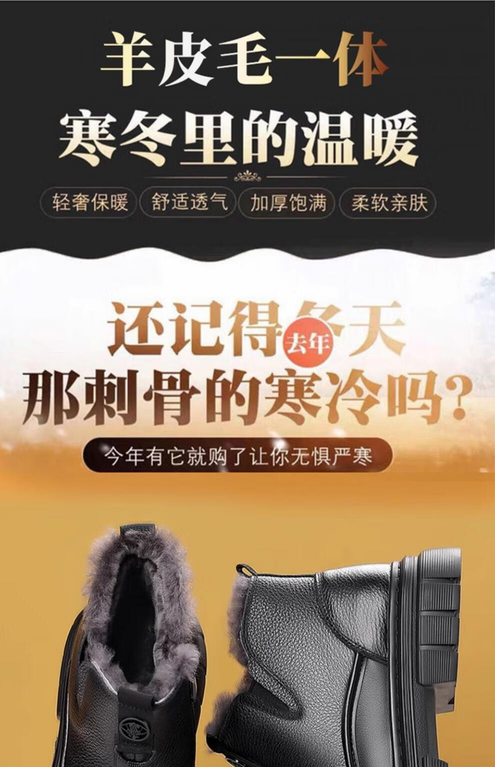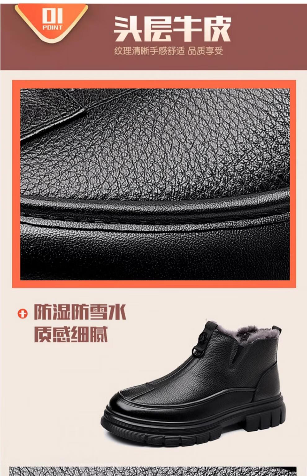 稻草人(MEXICAN)棉鞋男款2026冬季新款真皮羊毛休闲爸爸高帮鞋加绒加厚保暖雪地靴 黑色 38 【标准皮鞋码】