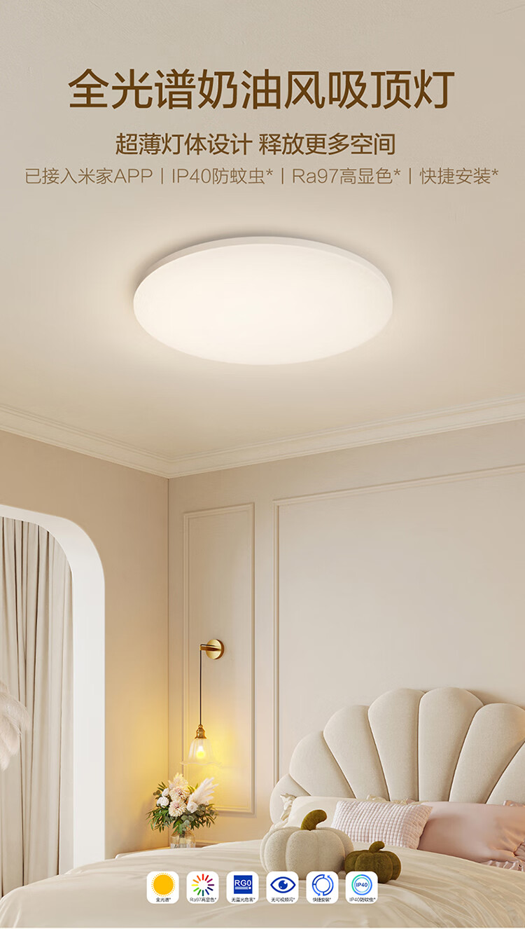 霍尼韦尔(Honeywell)卧室护眼吸顶灯儿童房学习灯智能版LED全光谱灯02BPro【包安装】