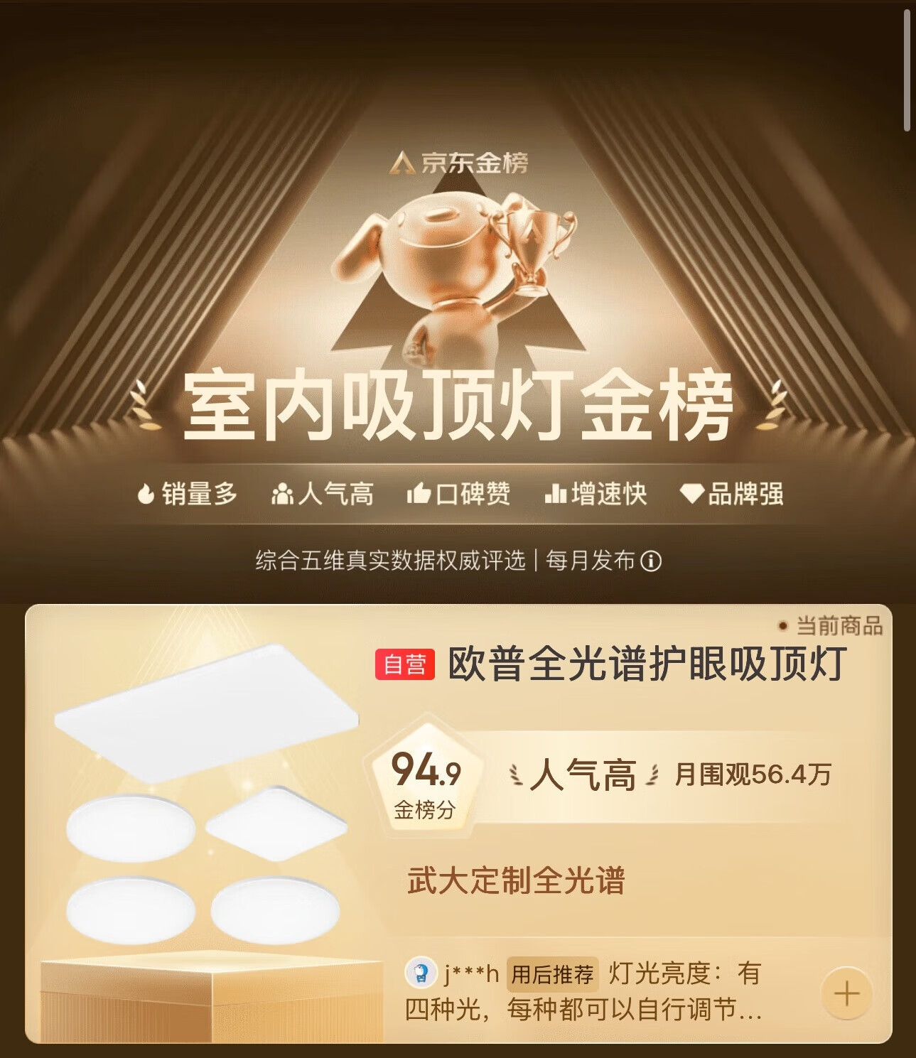 欧普照明(OPPLE)吸顶灯全光谱护眼智能LED灯具简约客厅灯套餐1 凝月4