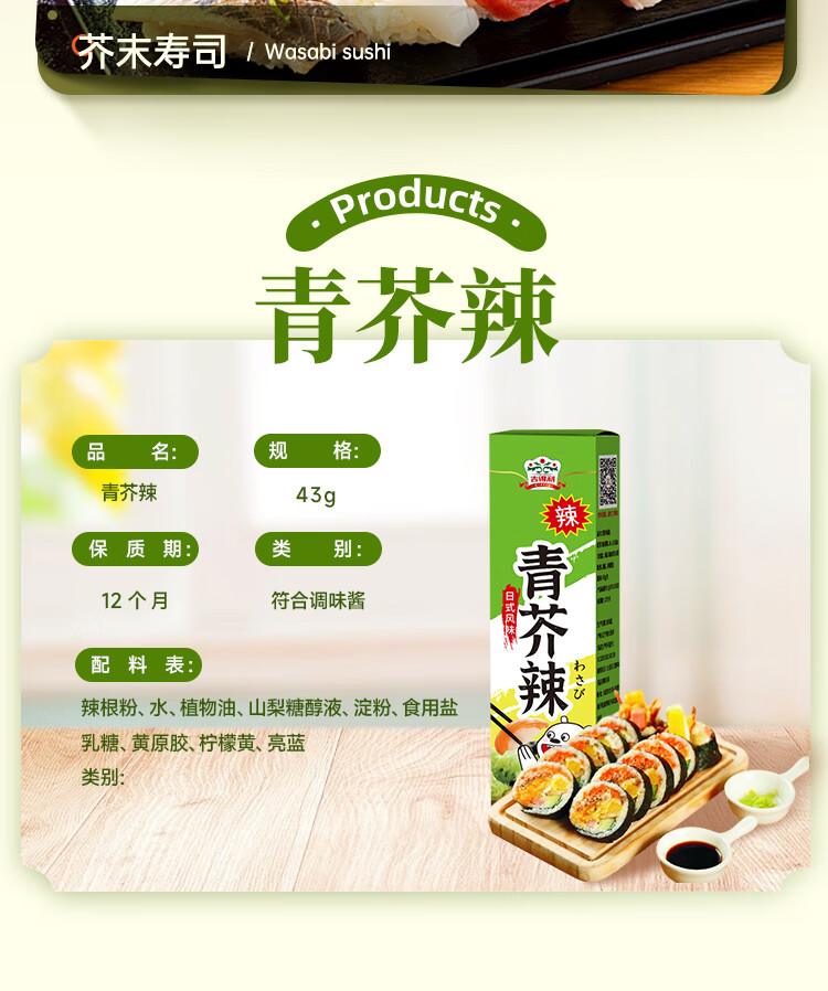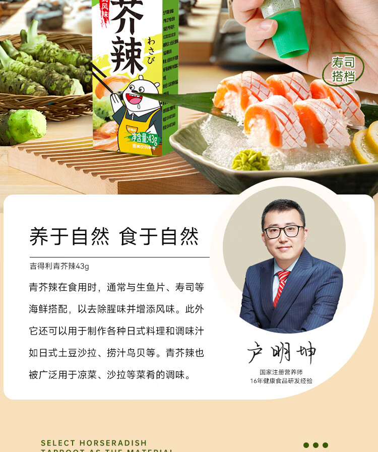 吉得利青芥辣43g 辣根芥末酱 寿司海鲜三文鱼刺身火锅蘸料调味酱