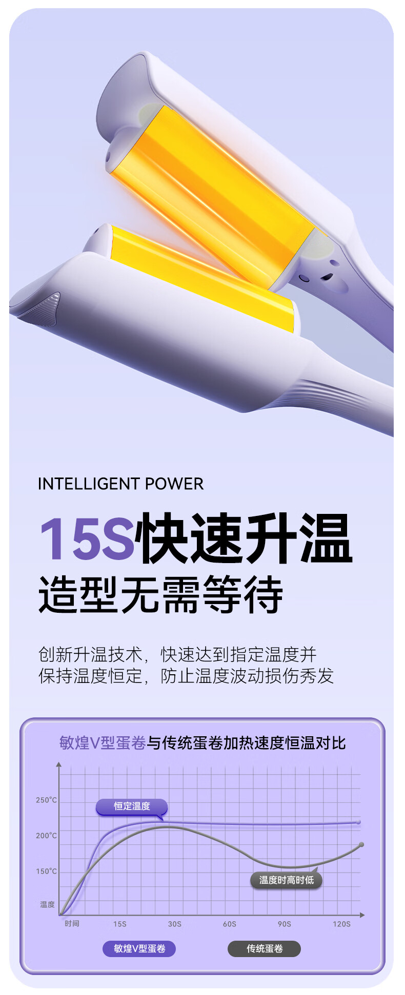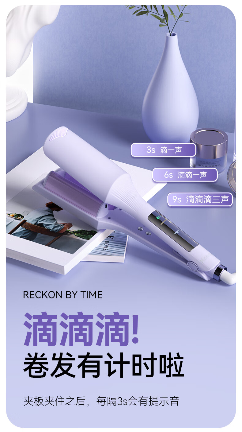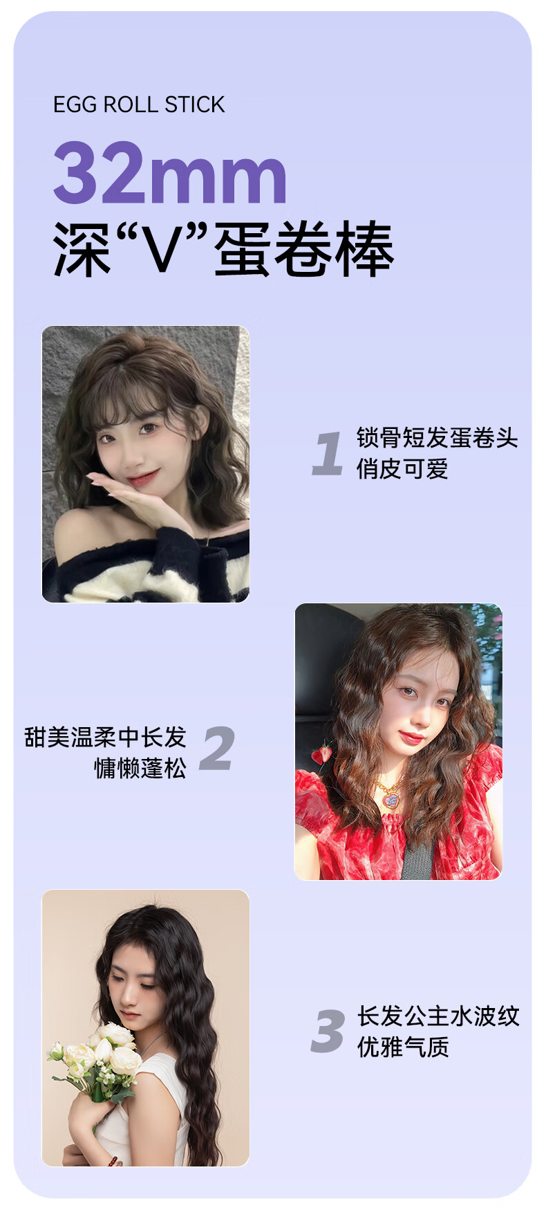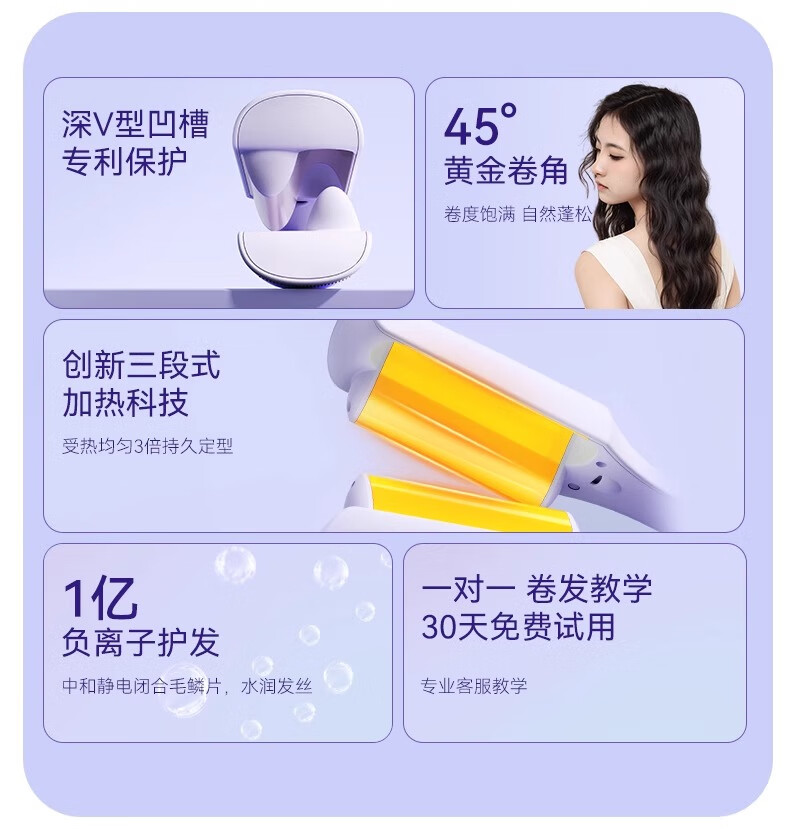 敏煌(MinHuang)32MM深V蛋卷棒 负离子卷发棒法式蛋蛋卷 蛋卷卷发棒蛋卷 VI 紫色