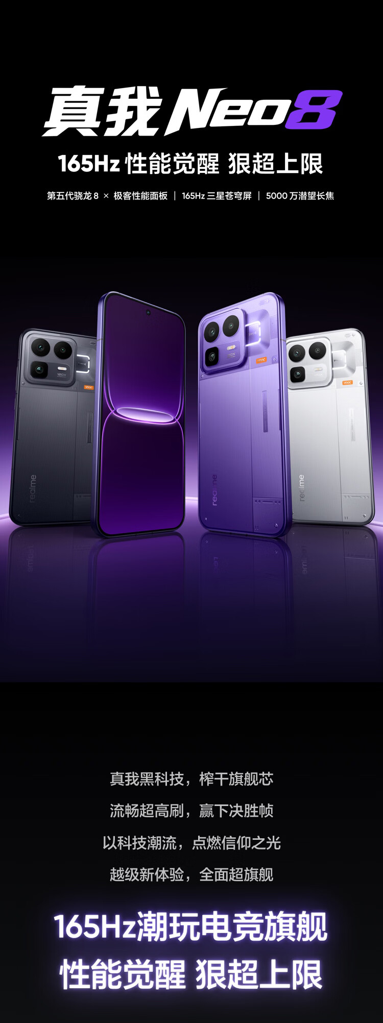 realme真我Neo8 OPPO 第五代骁龙8 165Hz三星高刷屏 5000万潜望长焦 智能游戏拍照手机16+512灰 国家补贴