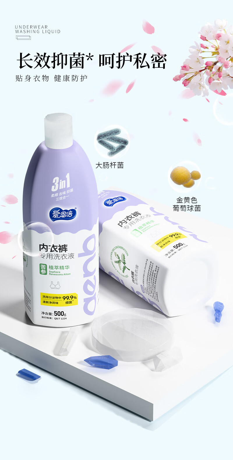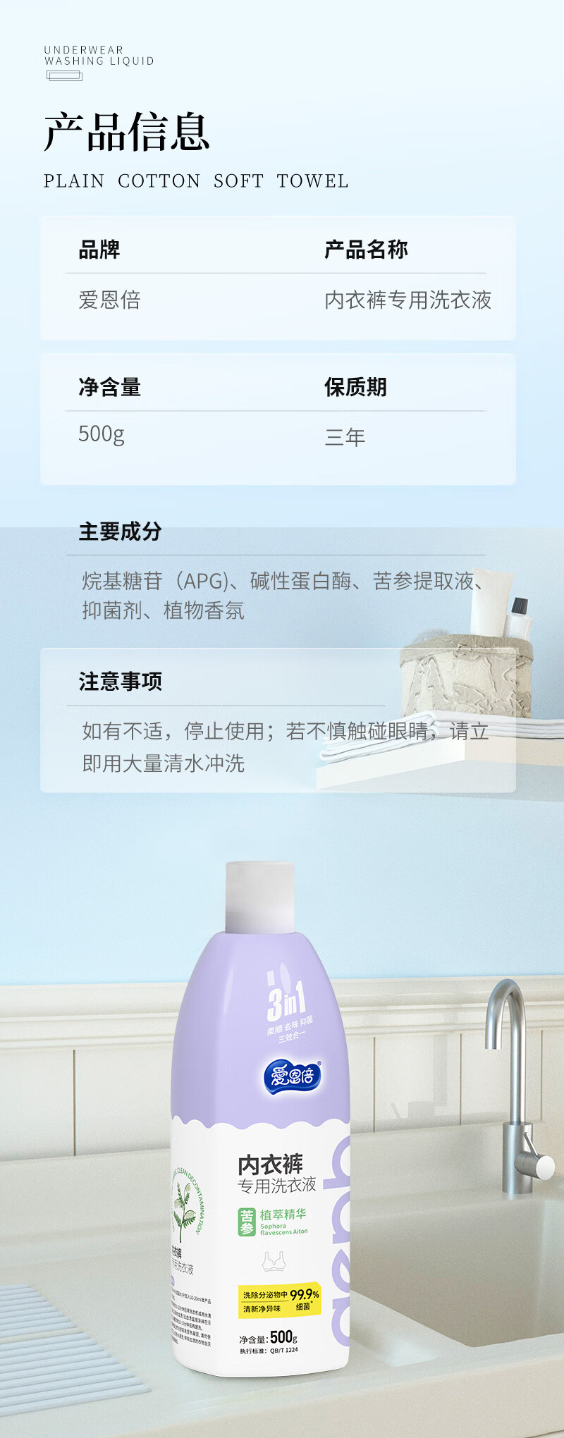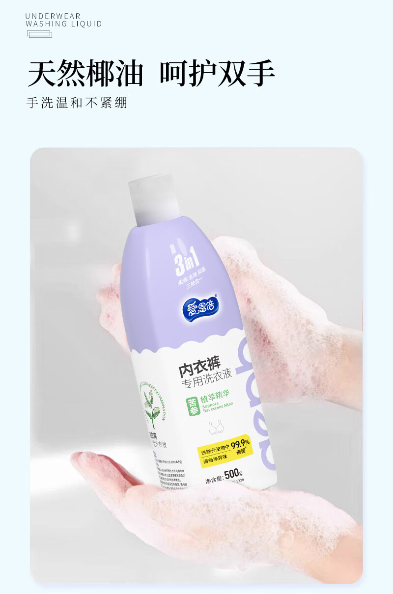 爱恩倍内衣裤清洗液500g*1瓶内衣洗衣液专用男女士去血渍除菌抑菌正品