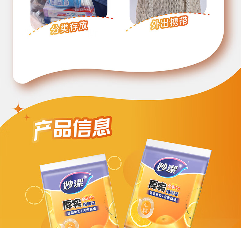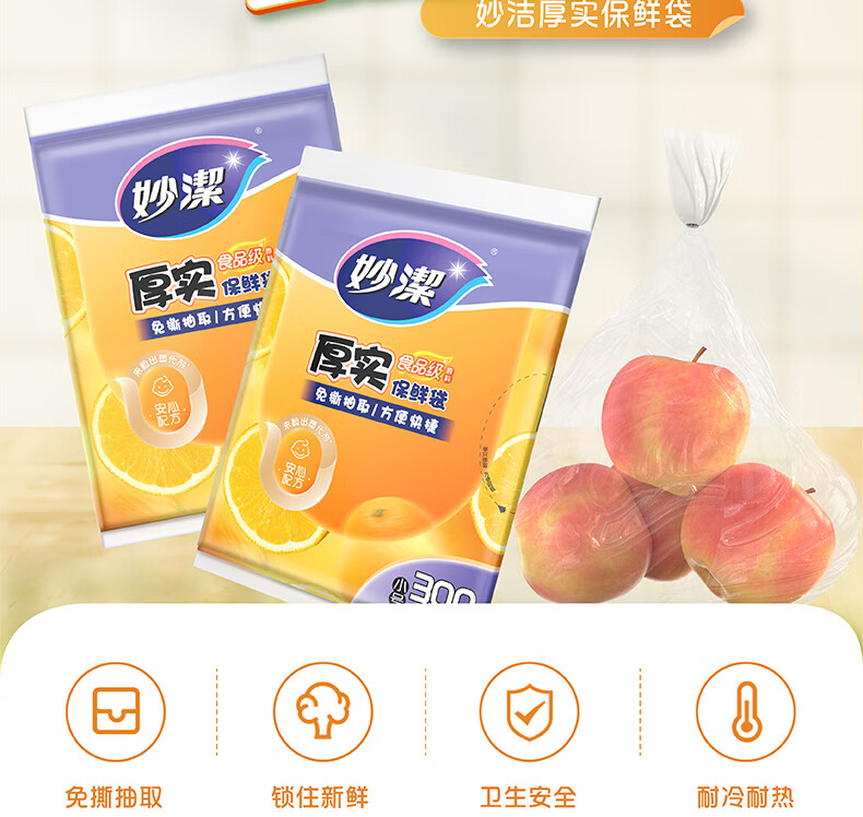 妙洁 平口厚实保鲜袋 小号300只 袋装加厚食品级