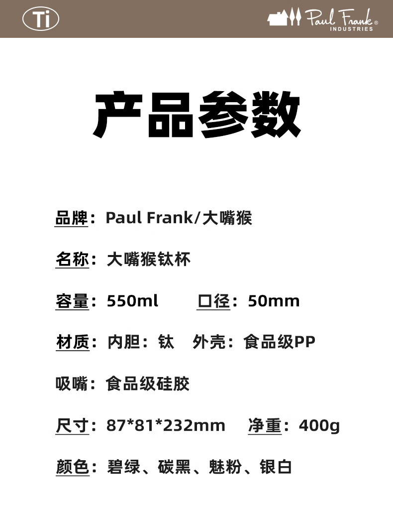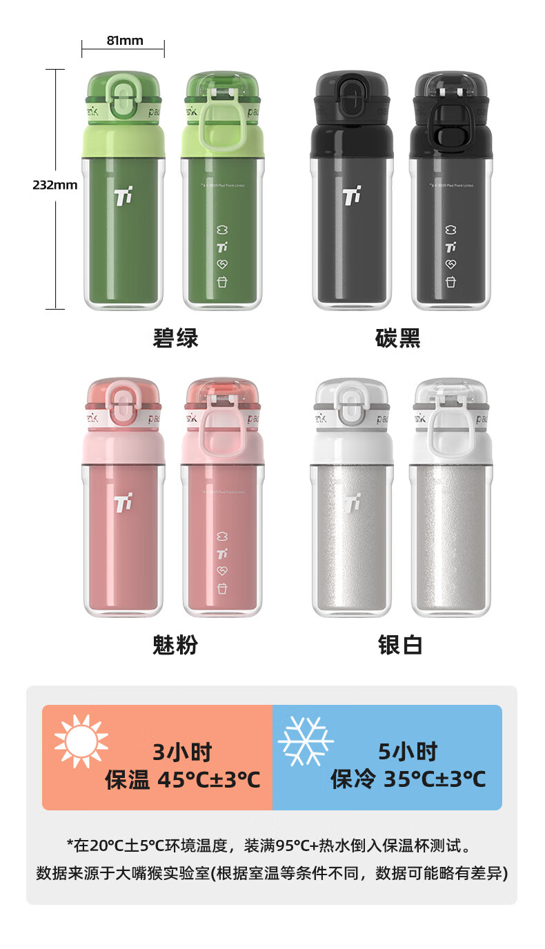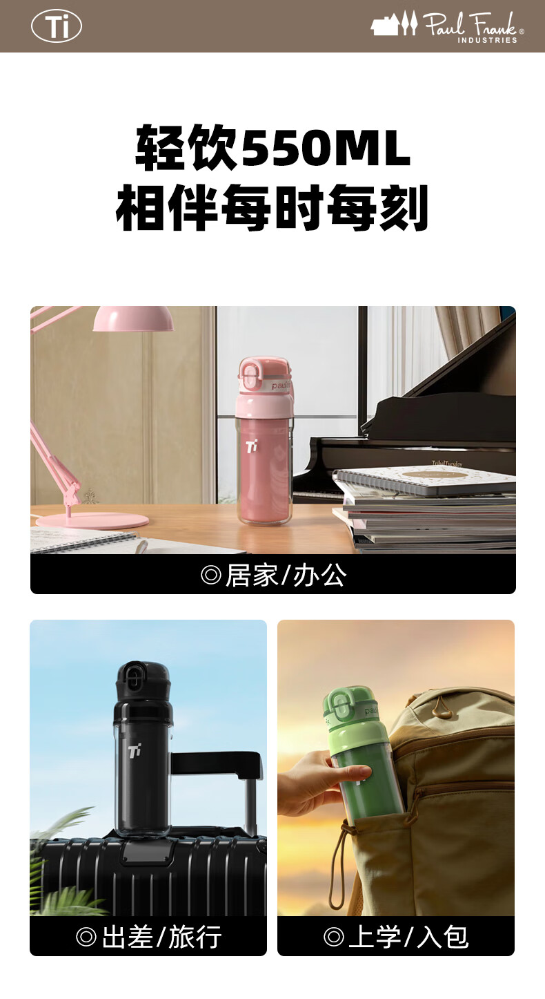 paul frank塑钛杯PF905-550保温杯泡茶杯饮水杯子颜色随机发货