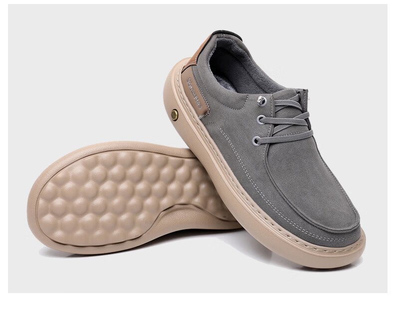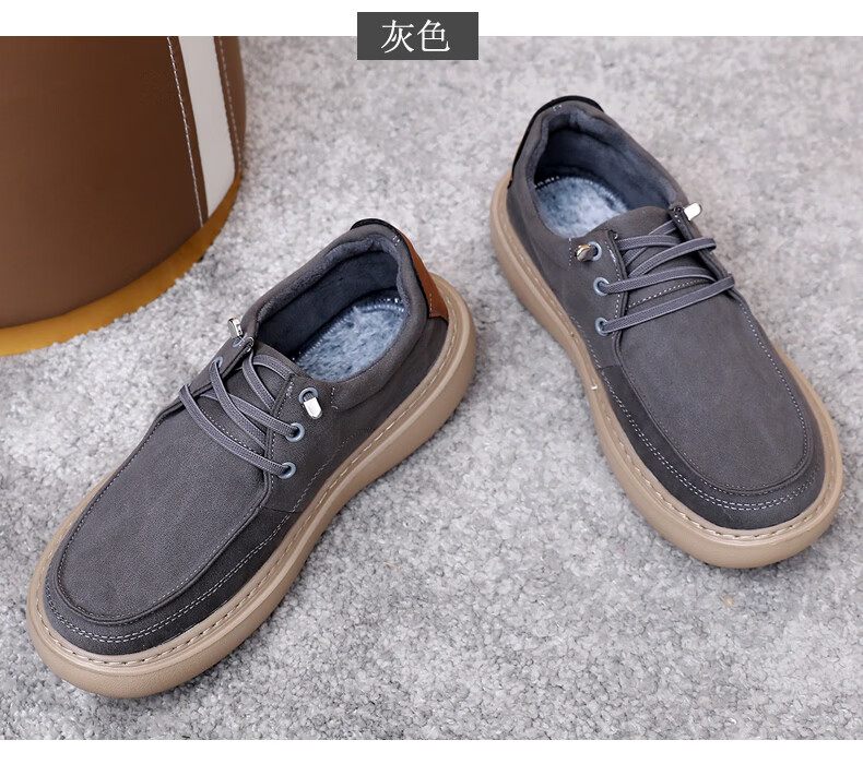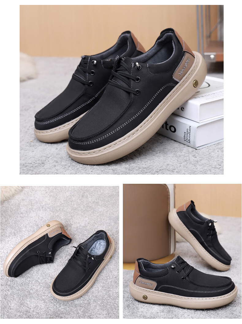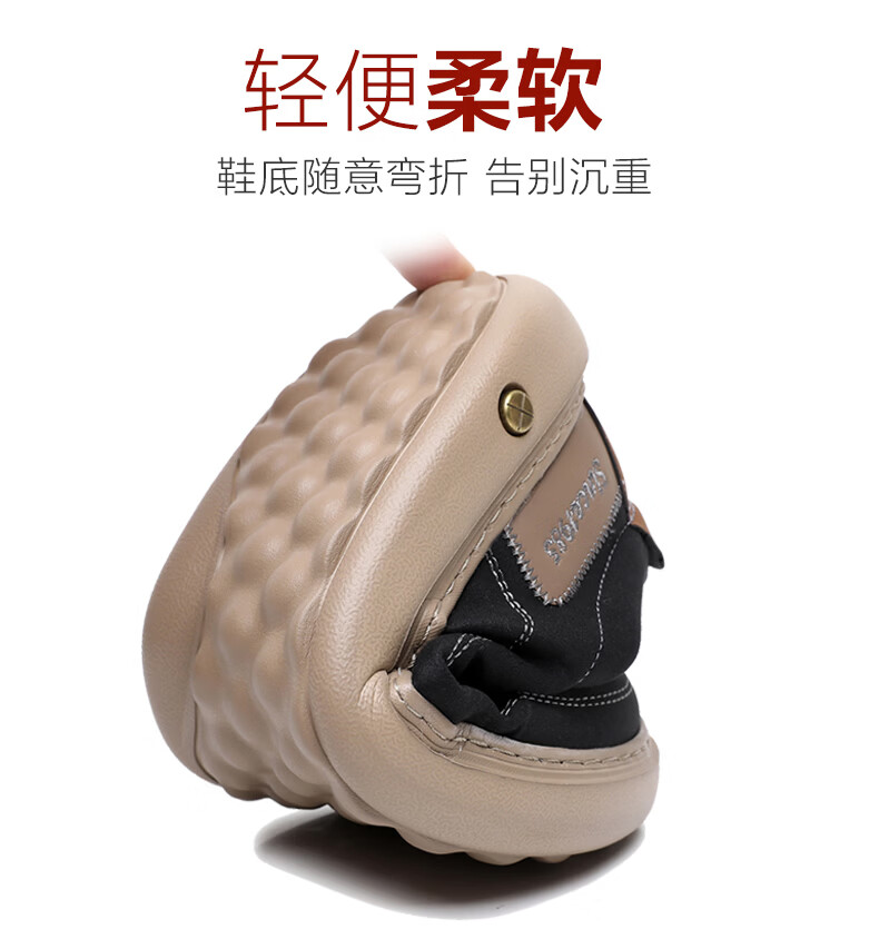 稻草人(MEXICAN)软底男鞋冬季加绒保暖二棉鞋一脚蹬懒人鞋子男真皮爸爸鞋男士皮鞋 黑色【加绒款】 37