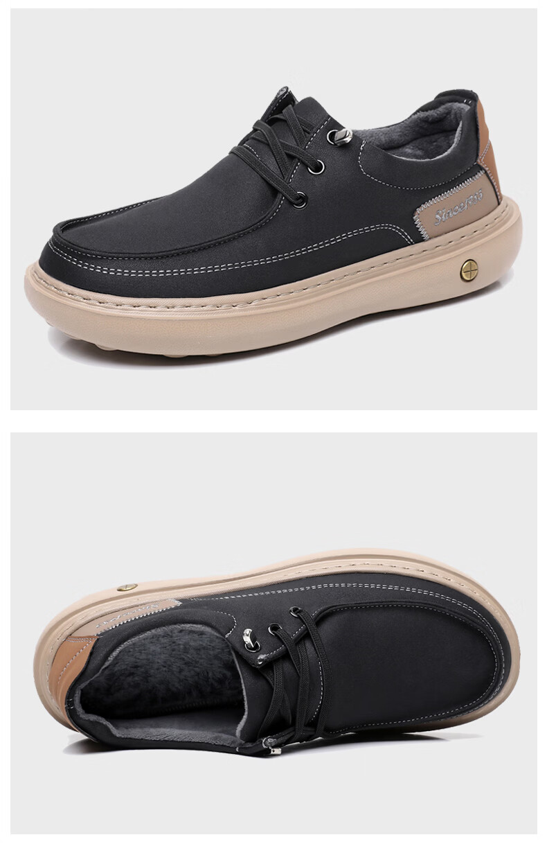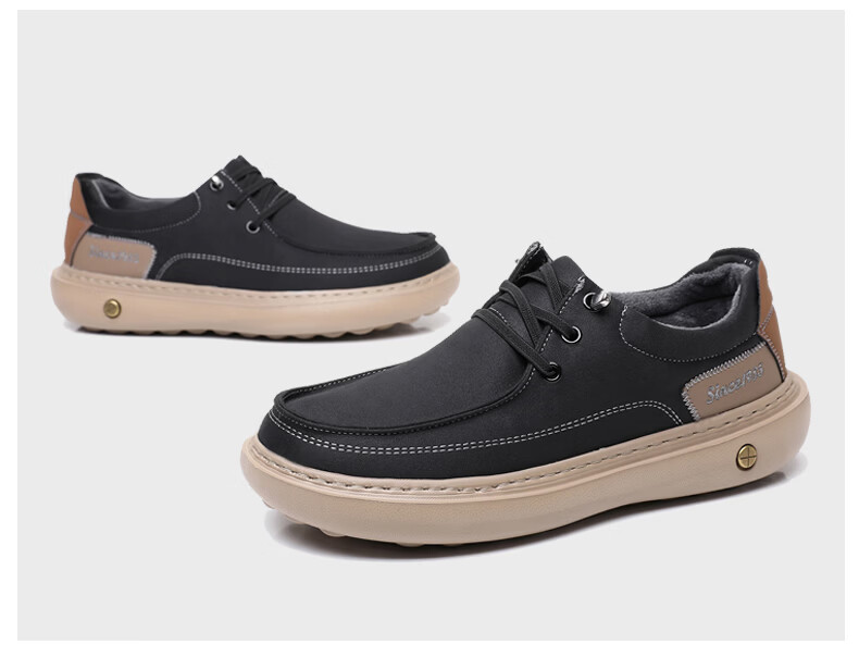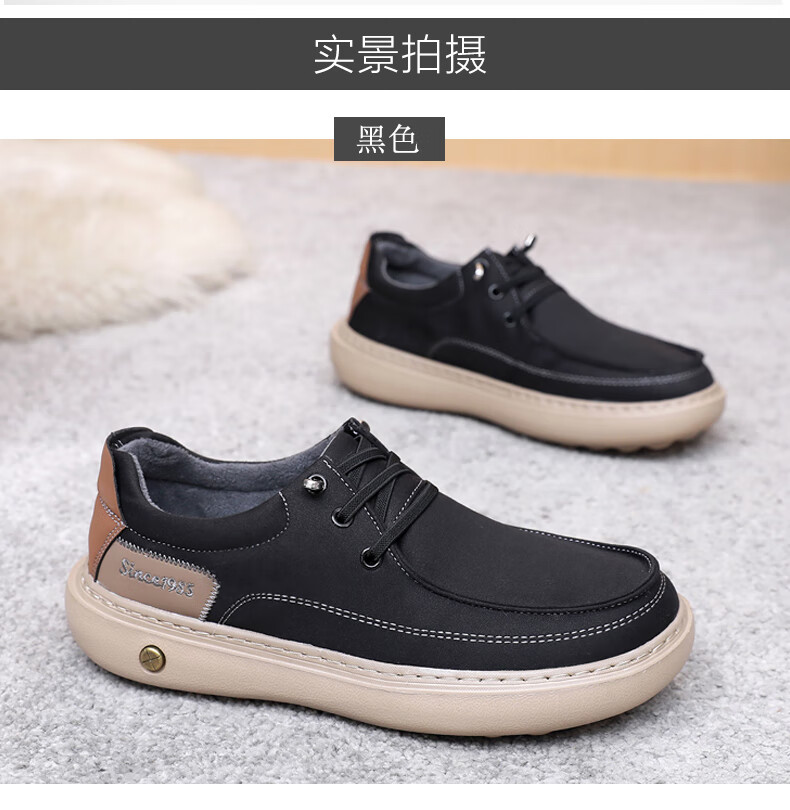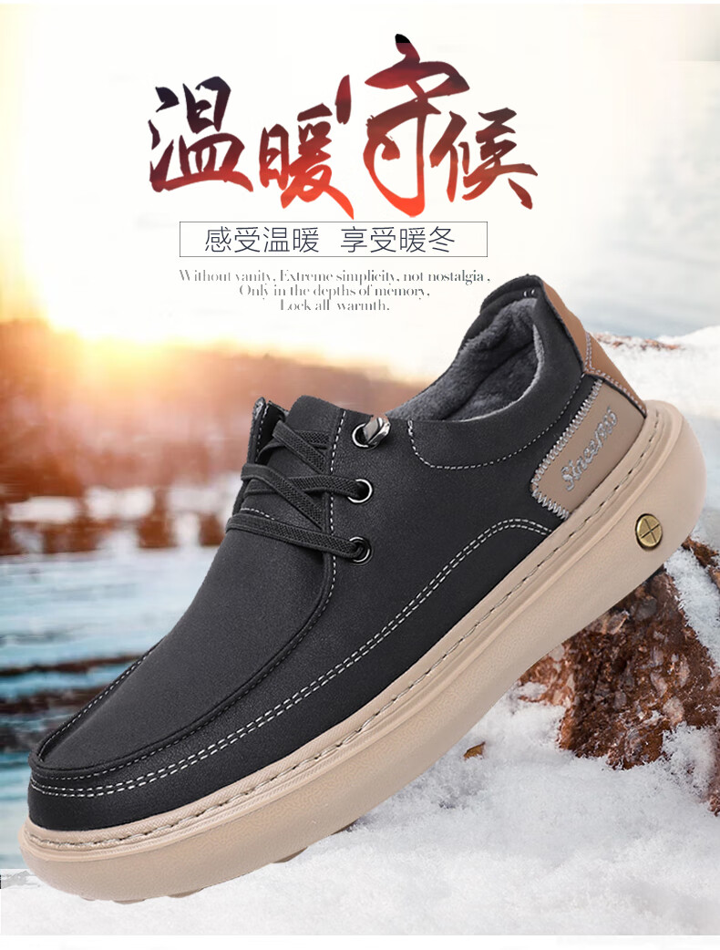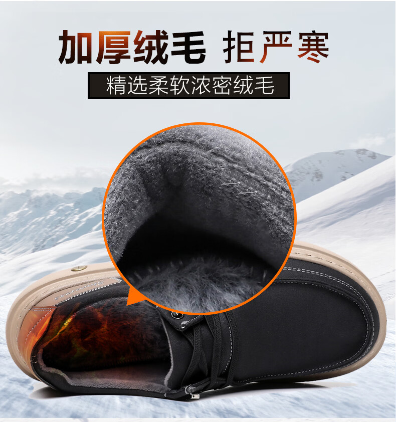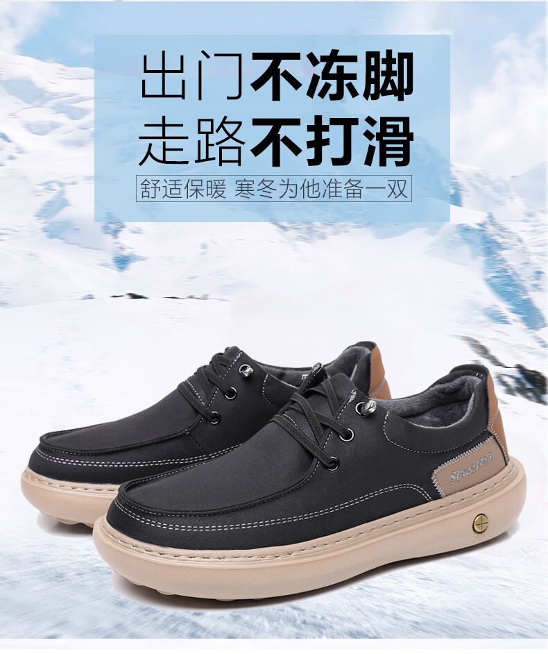 稻草人(MEXICAN)冬季老北京布鞋男二棉鞋加绒保暖爸爸鞋中老年休闲厚底防滑一脚蹬 黑色 38