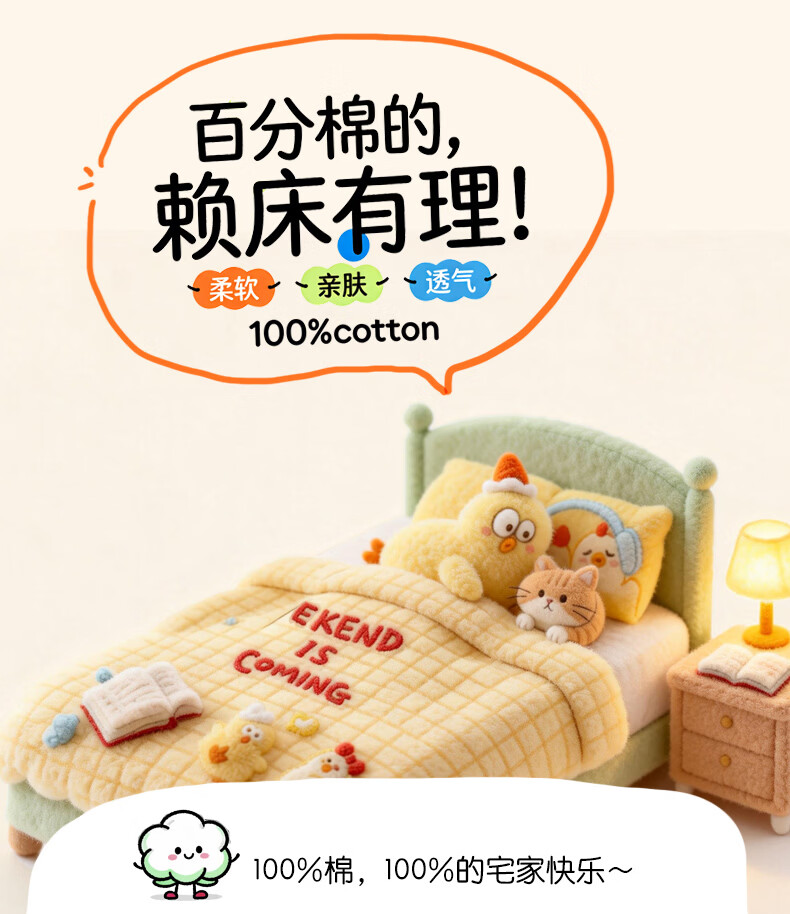 多喜爱家纺纯棉床上四件套 A类原创IP双人全棉床单被套床上用品套件1.8米床229*230cm