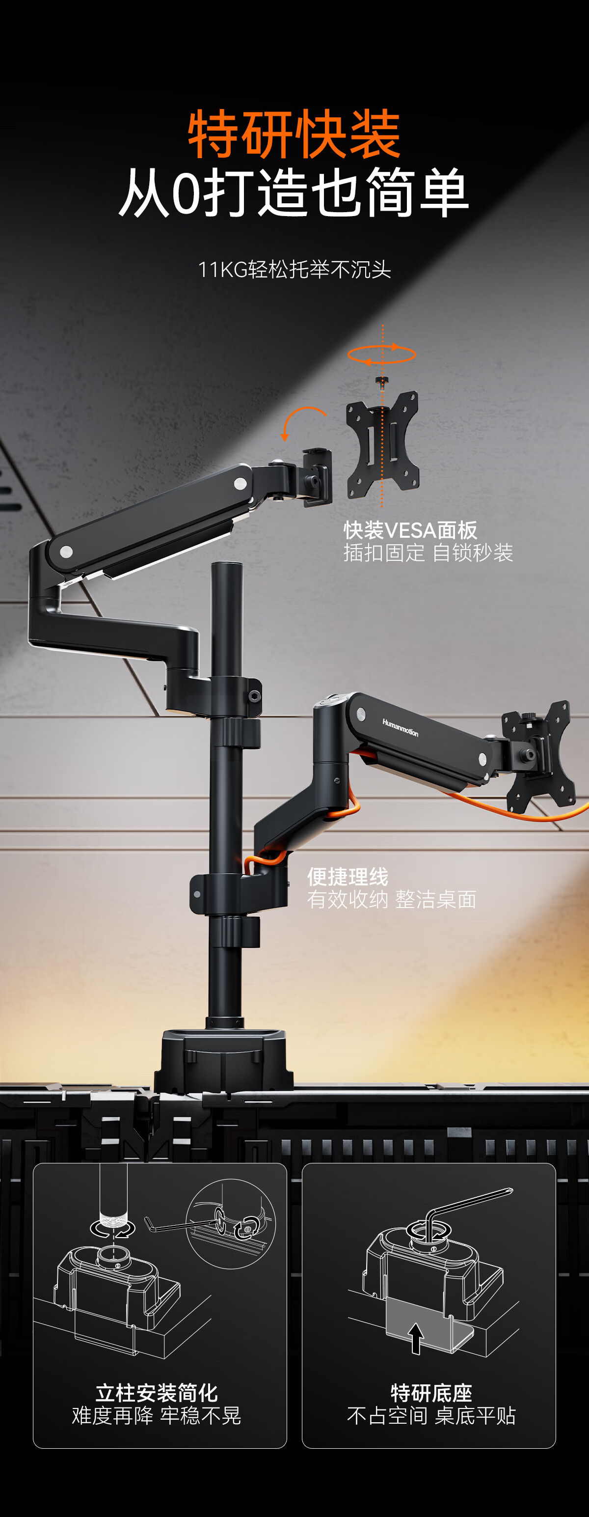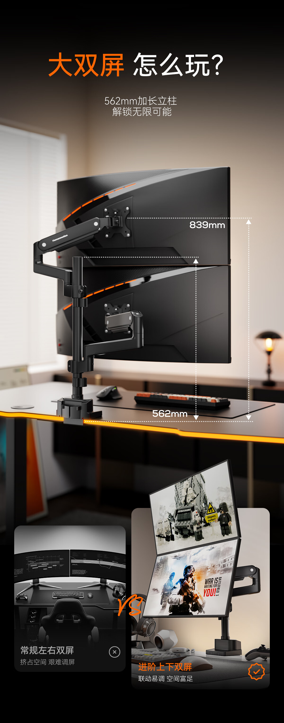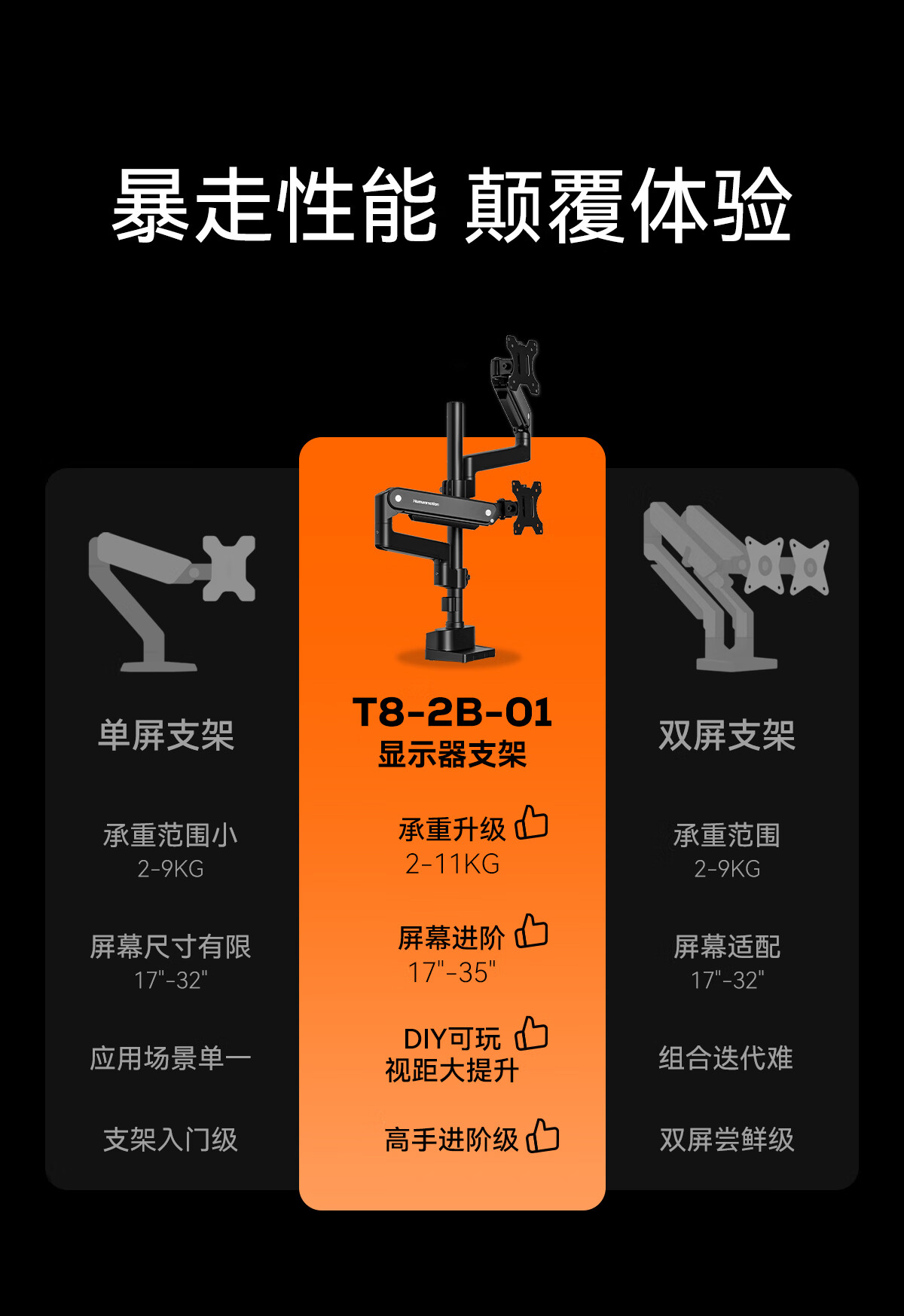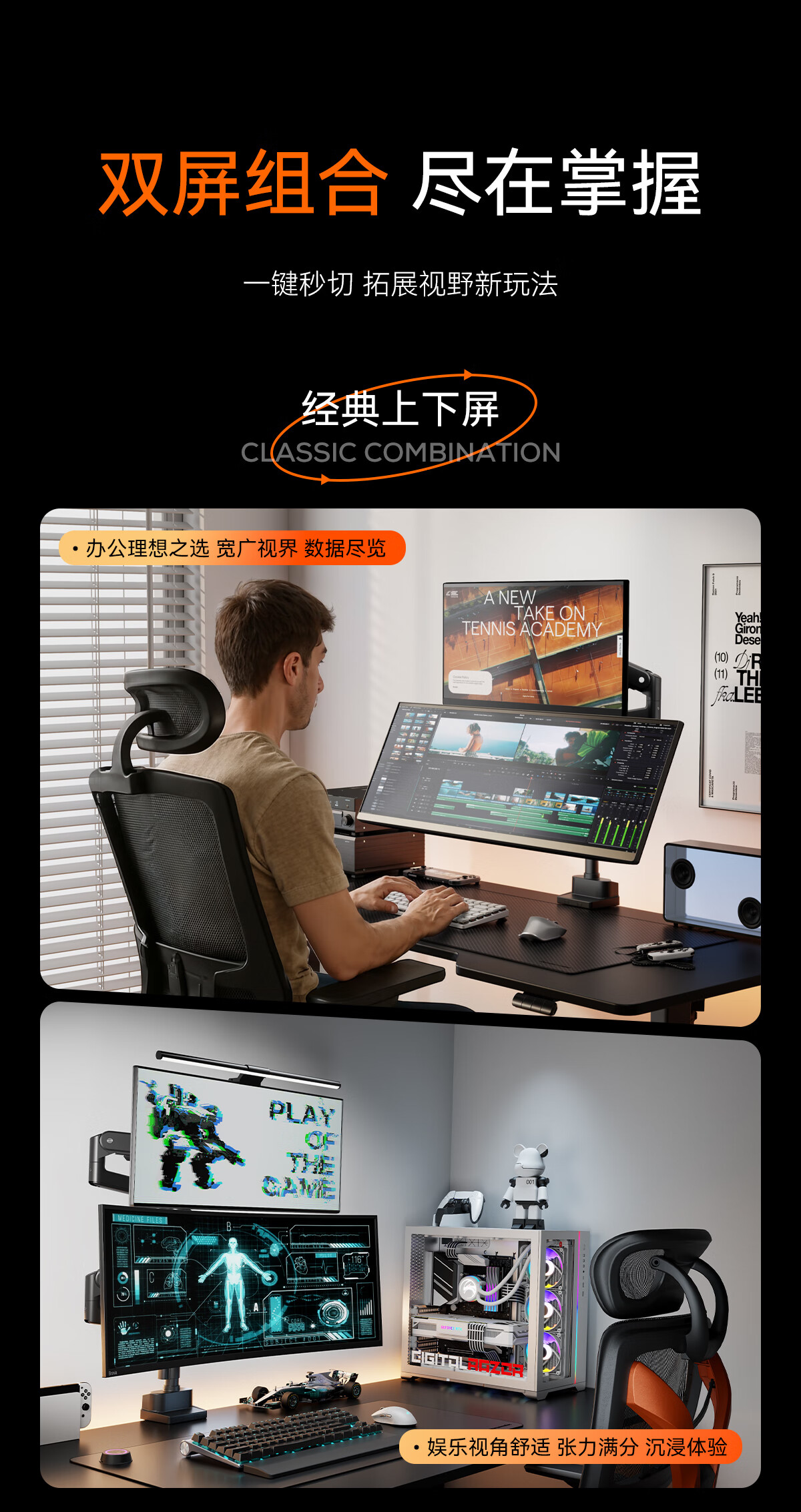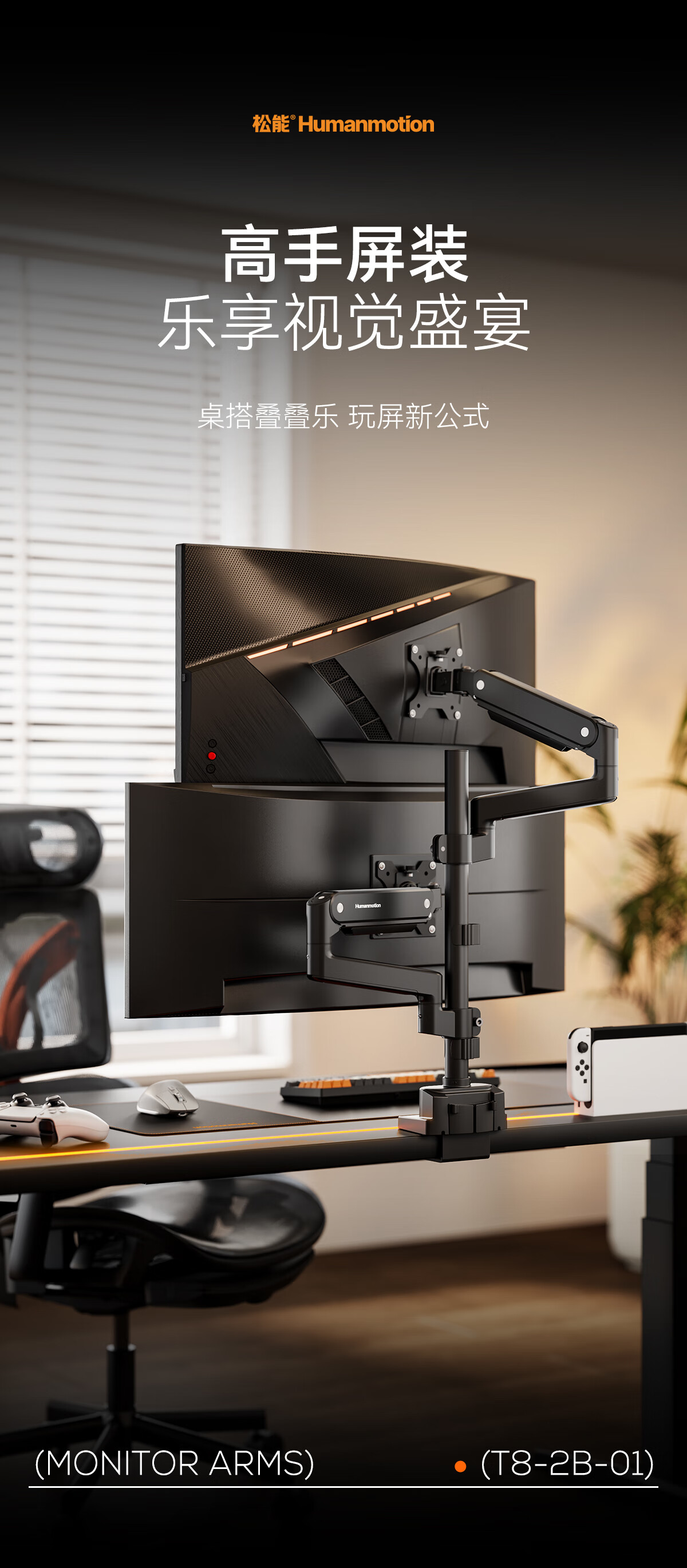 松能显示器支架双屏 电脑支架 上下双屏支架 机械臂 双屏显示器增高架 松能T8 电脑屏幕立柱支架