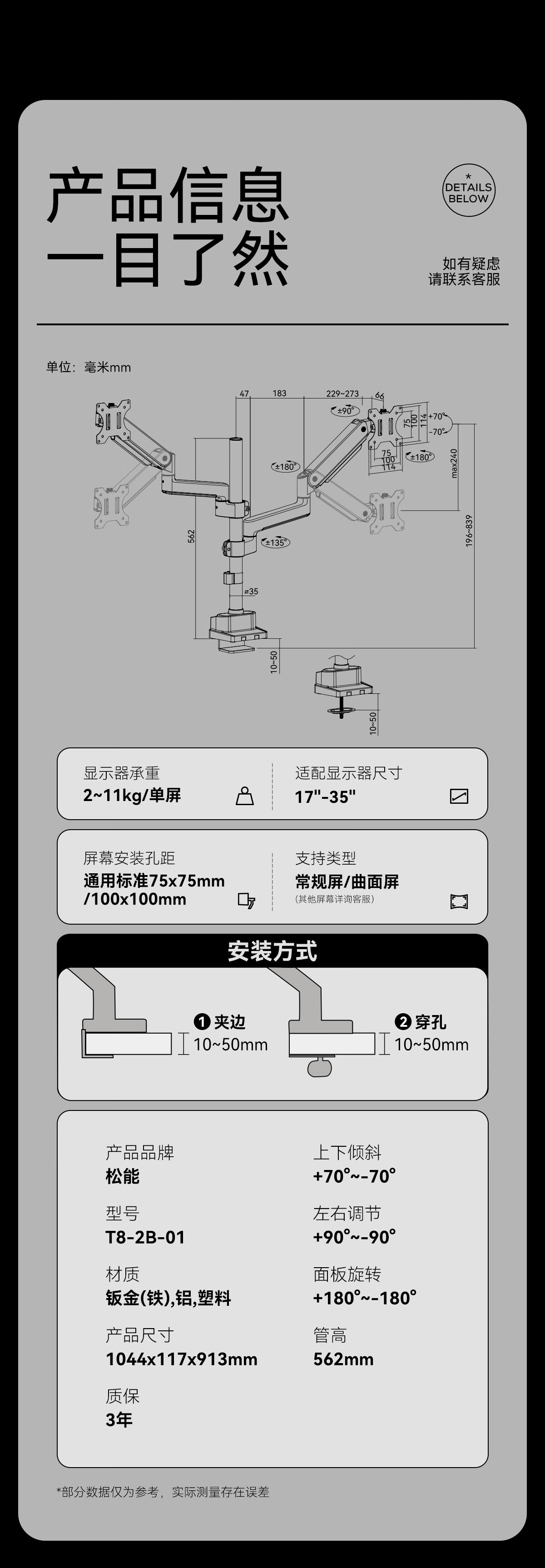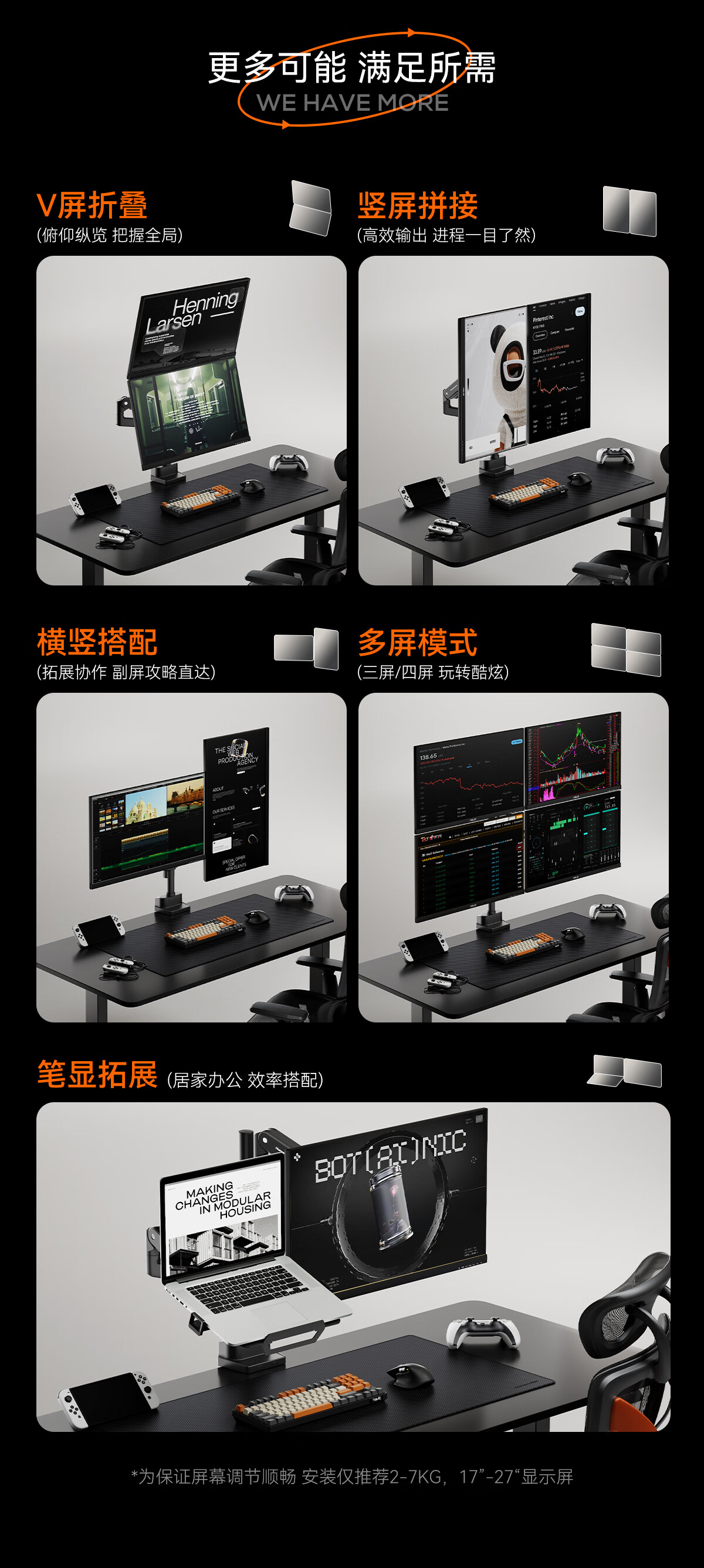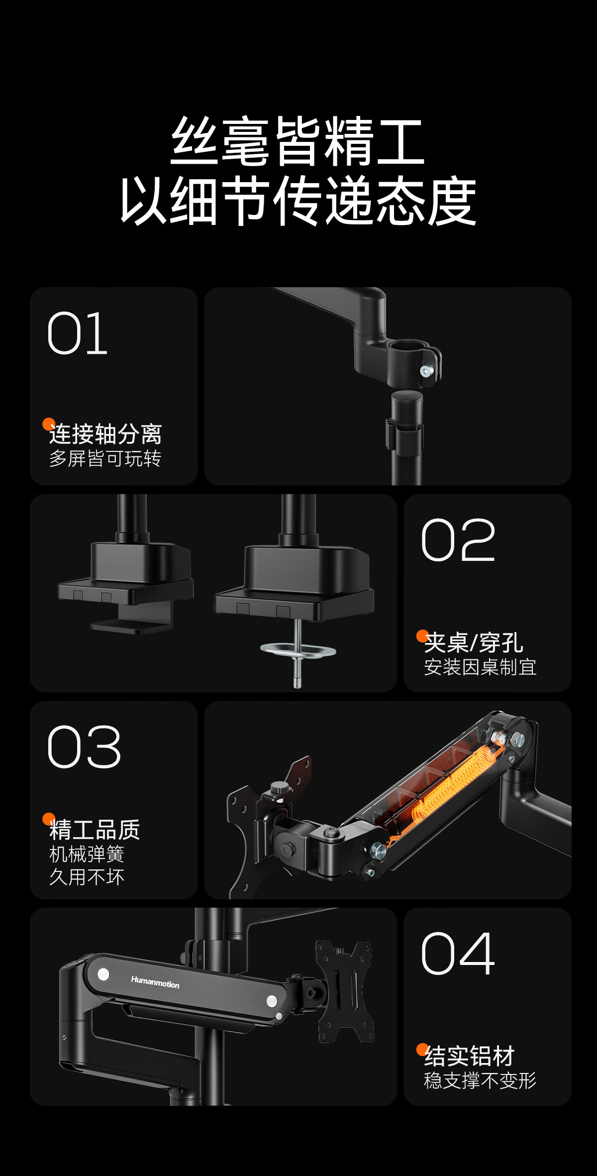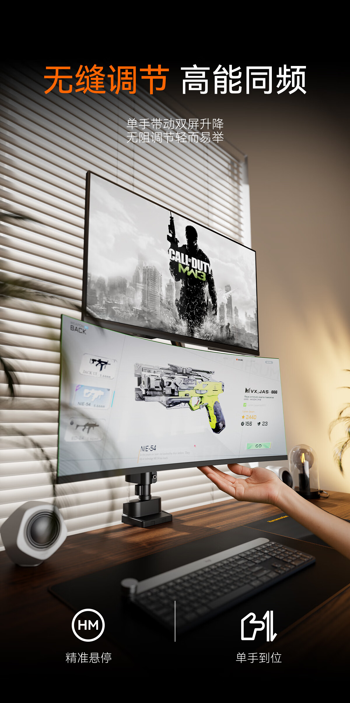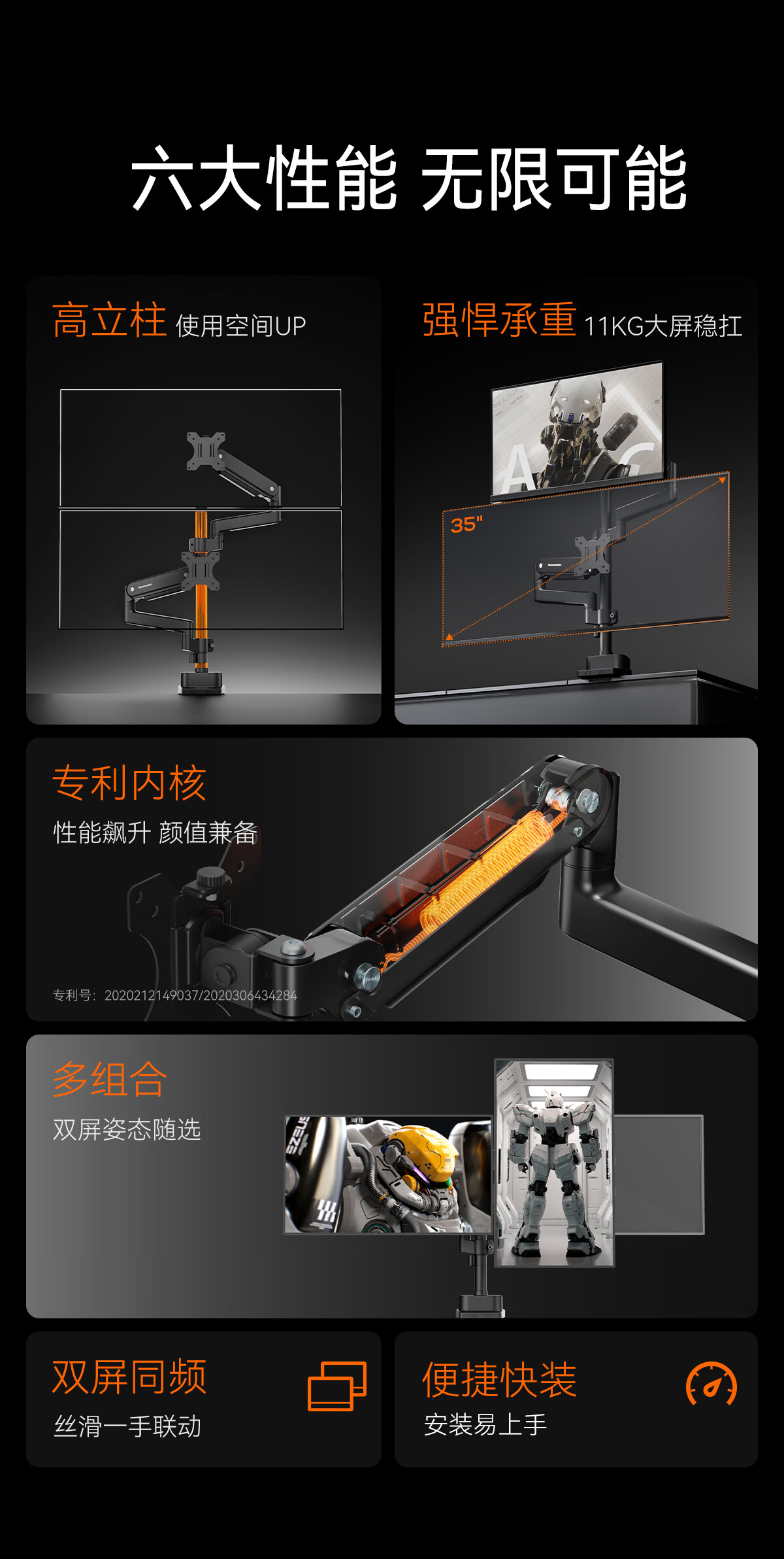 松能显示器支架双屏 电脑支架 上下双屏支架 机械臂 双屏显示器增高架 松能T8 电脑屏幕立柱支架