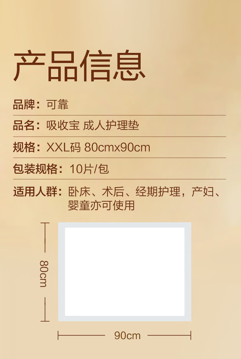 可靠(COCO)吸收宝成人护理垫2XL10片 80*90cm 加大尺寸老年人隔尿垫产褥垫