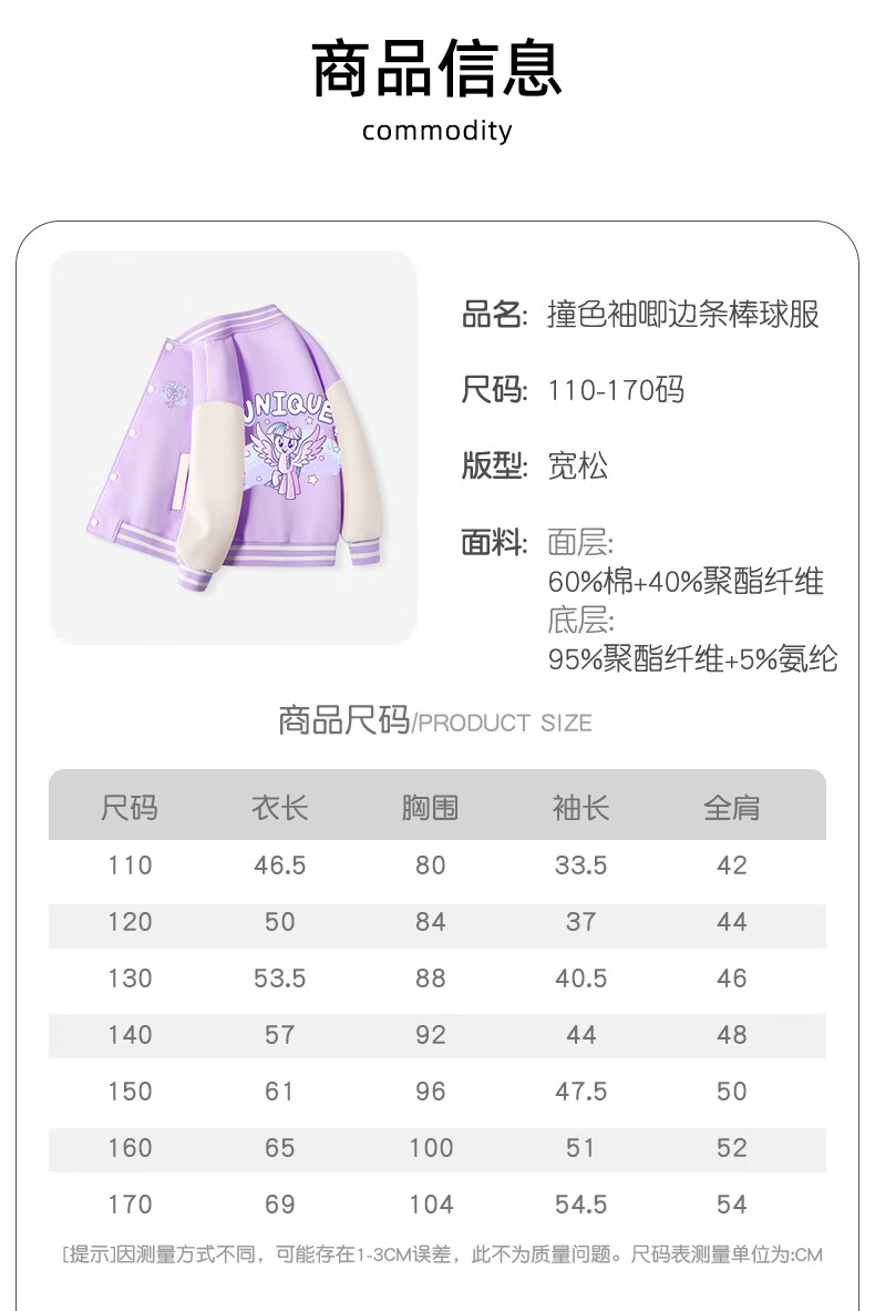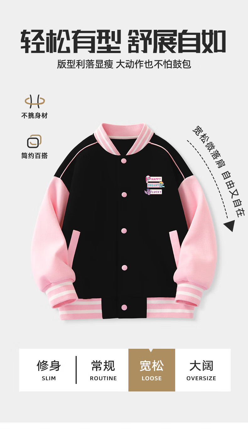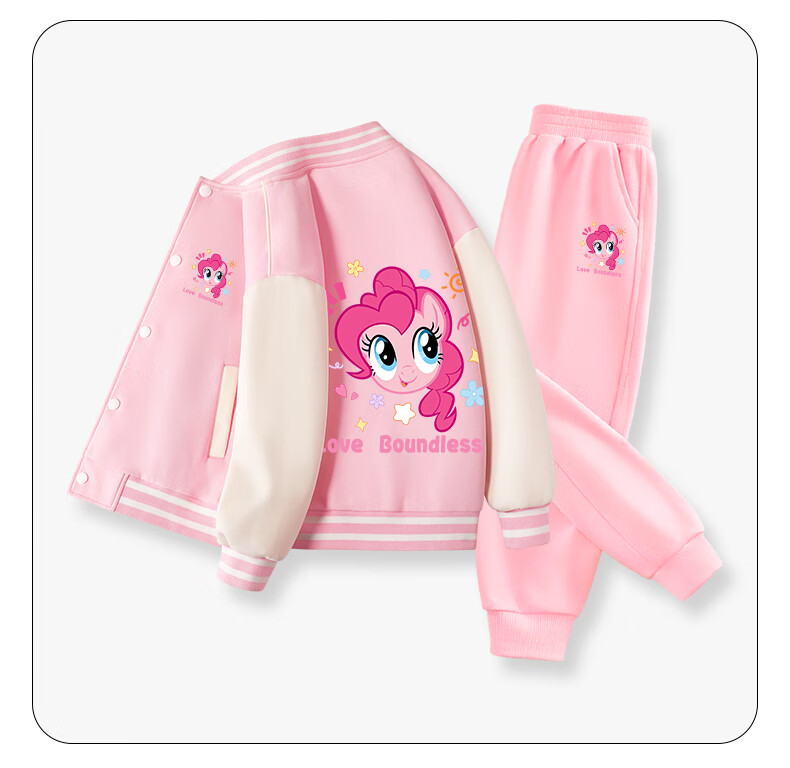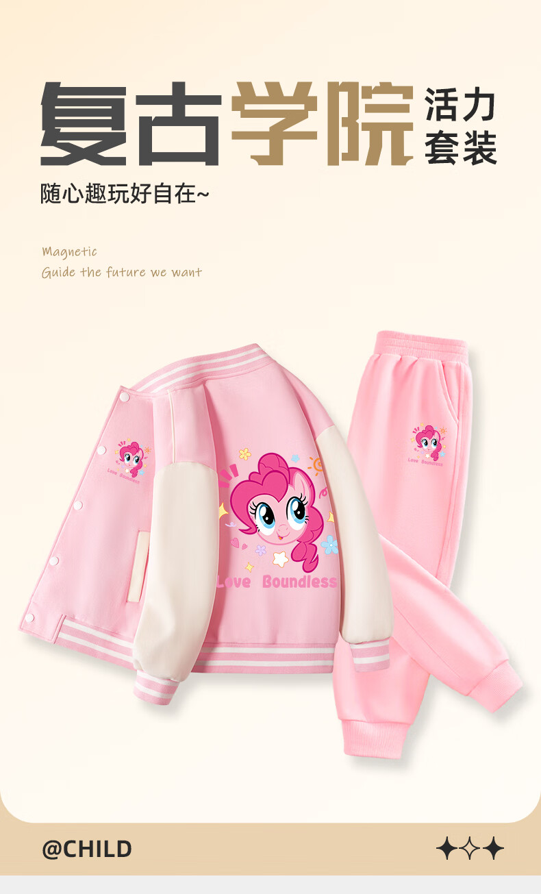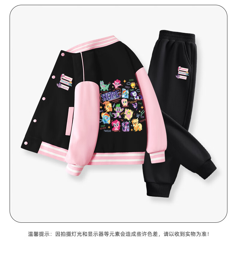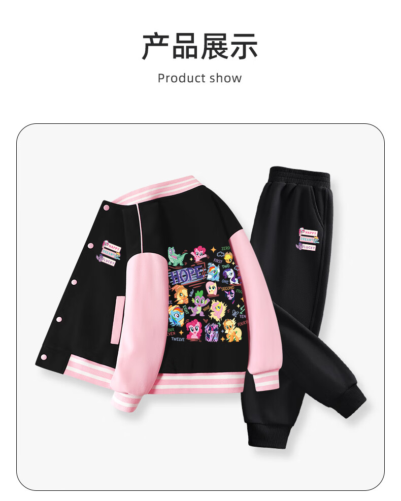 小马宝莉女童套装2025秋新款儿童学院风棒球服外套卫裤运动两件套 相信自己黑+小马伙伴粉 150