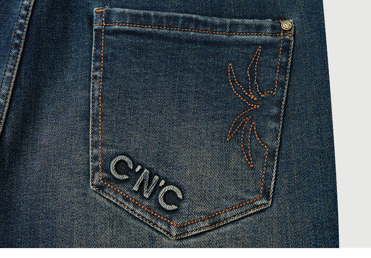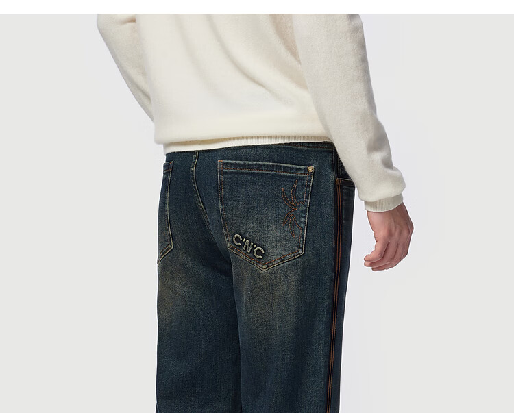 C'N'CCNC【衣服】CNC新款重工压印牛仔裤修身休闲品牌直筒裤子男 牛仔蓝 33 175/84A