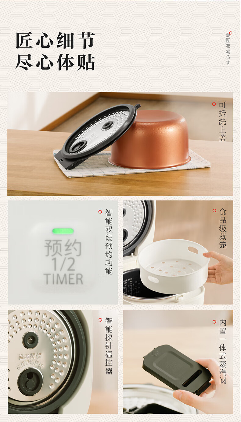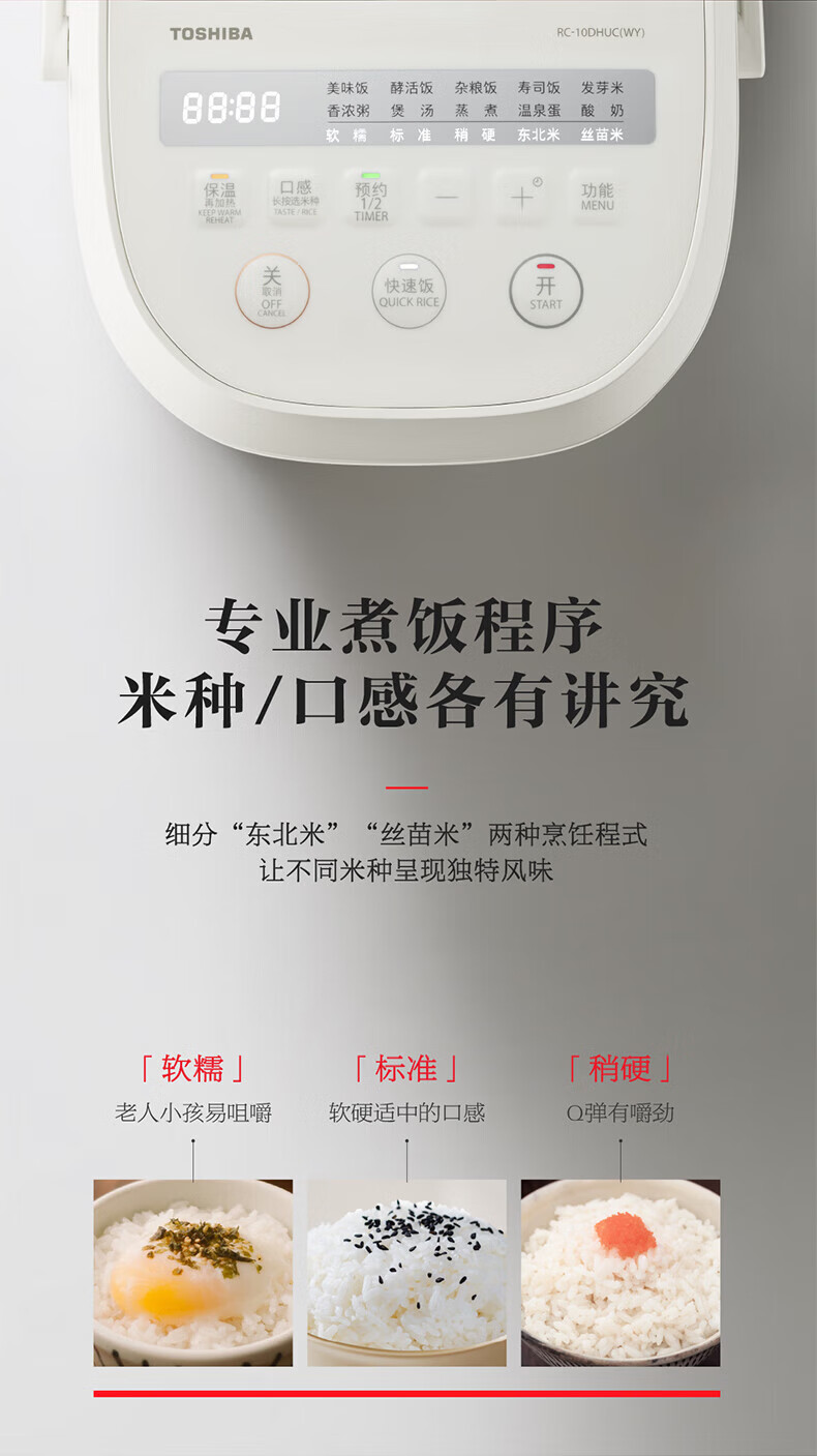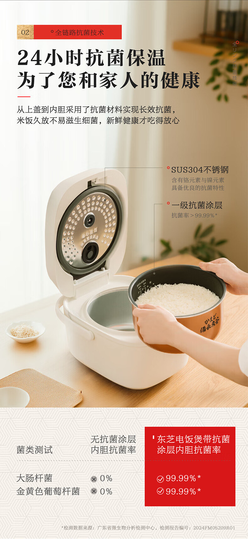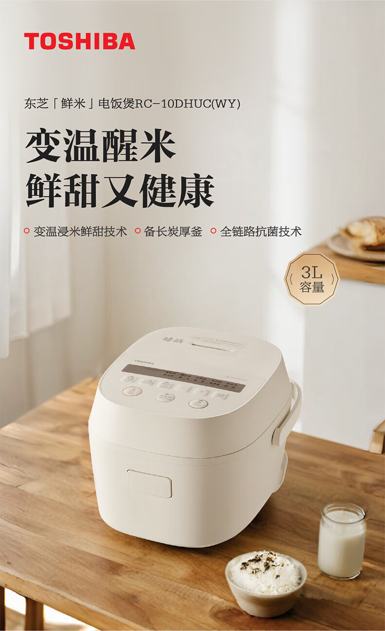 东芝(TOSHIBA)三维全域加热健康酵活5L电饭煲 智能米量判定 24H抗菌保温 进口备长炭电饭煲 家电补贴 鲜米煲 3L