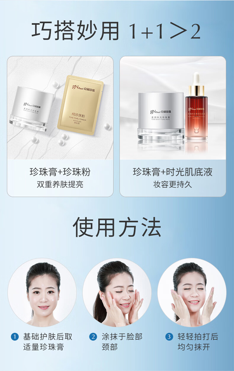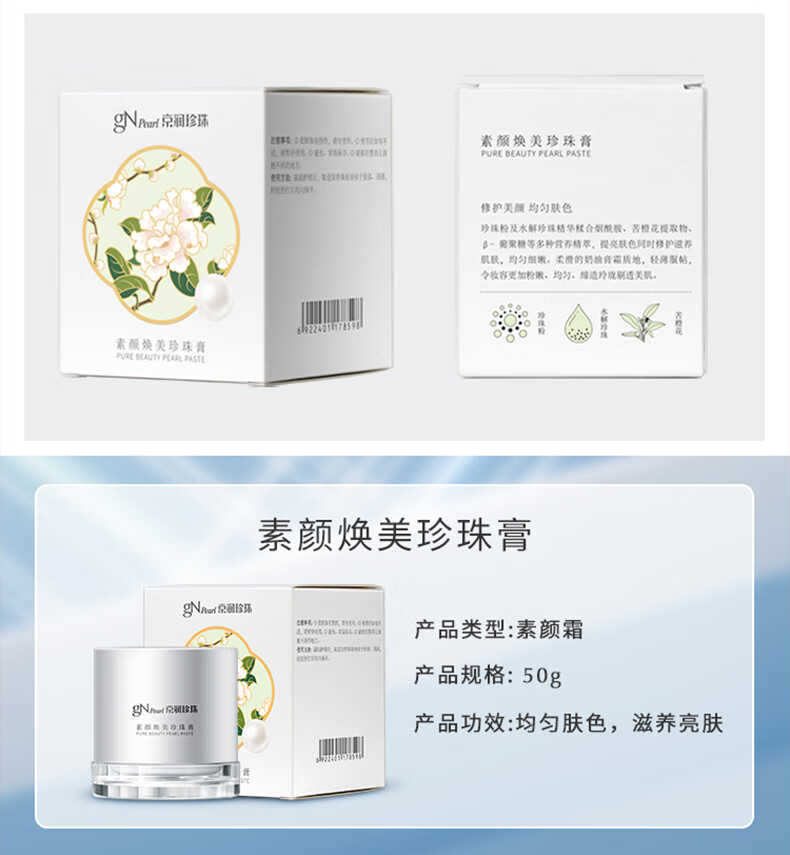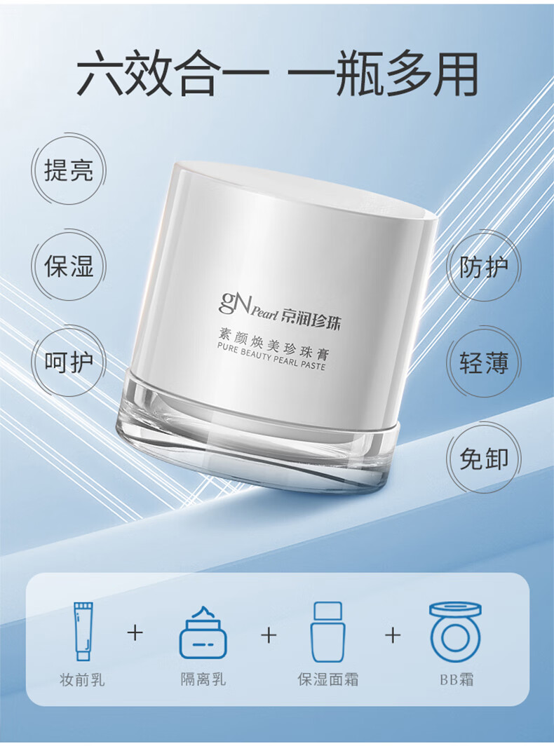 京润珍珠(gNPearl)素颜霜珍珠膏 妆前隔离遮瑕面霜自然裸肌懒人面霜提亮肤色护肤品 素颜珍珠膏50g*2罐