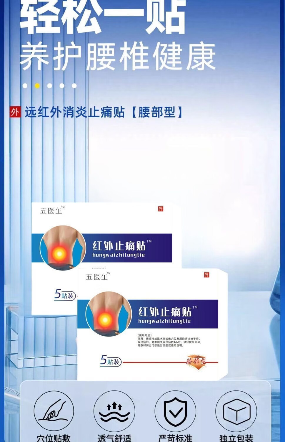 五医生远红外消炎止痛贴伍膏药贴颈椎腰椎间盘突出风湿腰疼腿疼膏 五医生远红外消炎止痛贴5盒【巩固装】