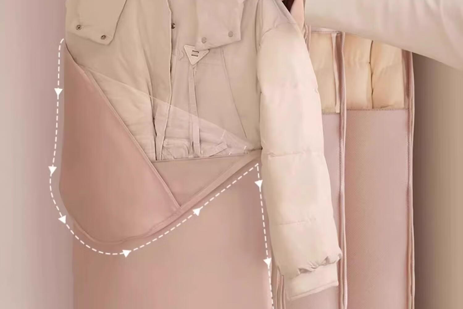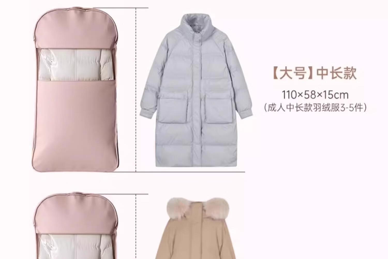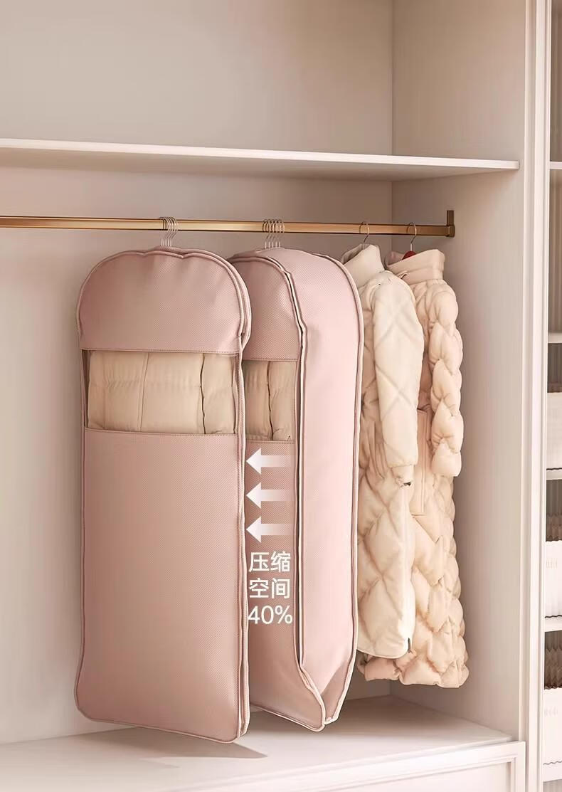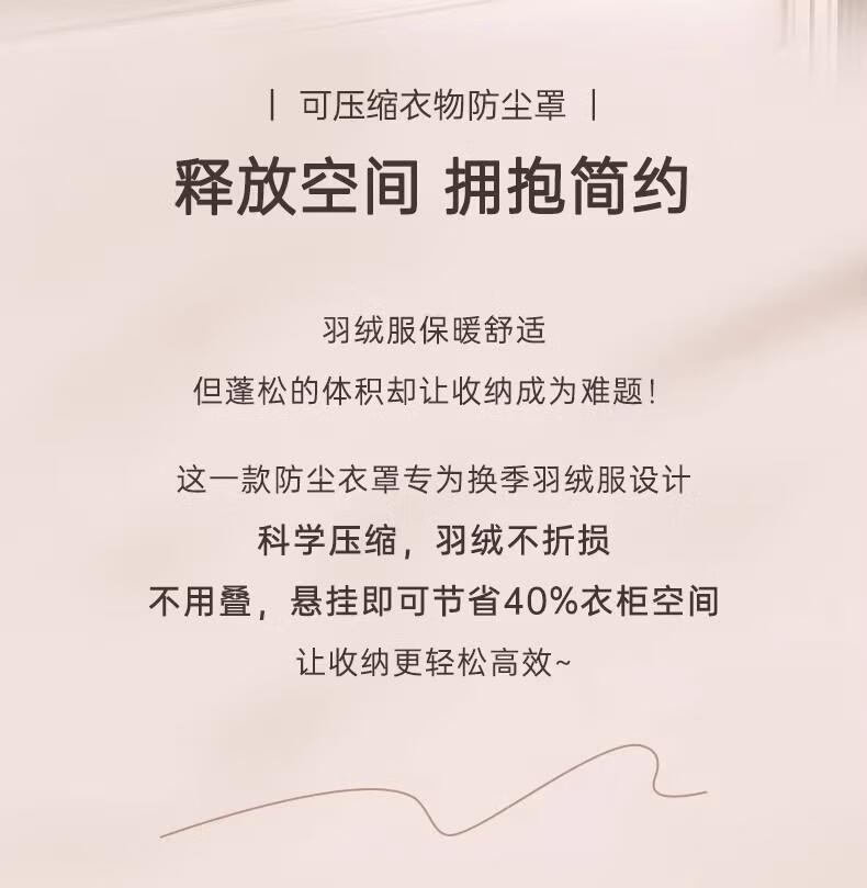 首力收纳袋羽绒服专用挂式免抽气衣服挂衣压缩袋子家用大衣西服防尘罩 压缩防尘罩-杏仁白-无纺布短款-【90*58*15cm】