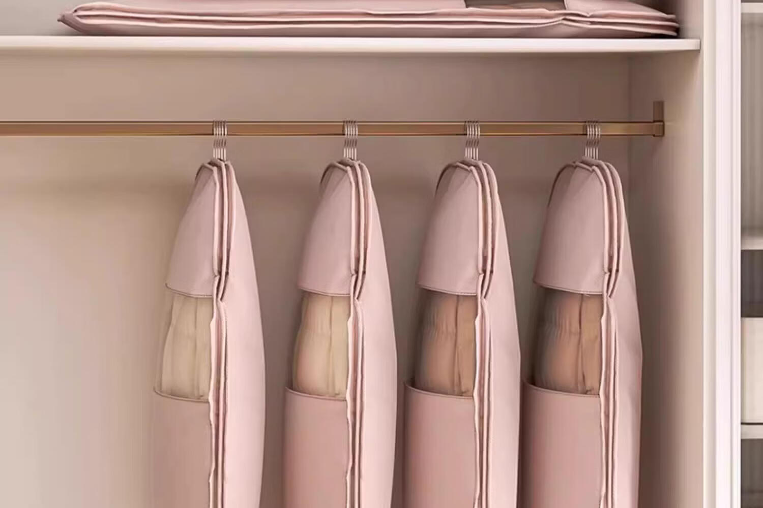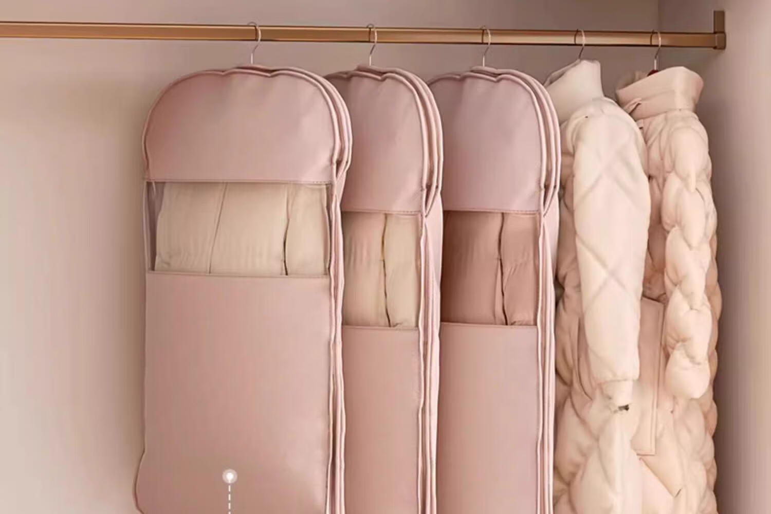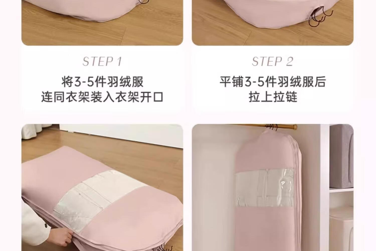 首力收纳袋羽绒服专用挂式免抽气衣服挂衣压缩袋子家用大衣西服防尘罩 压缩防尘罩-杏仁白-无纺布短款-【90*58*15cm】