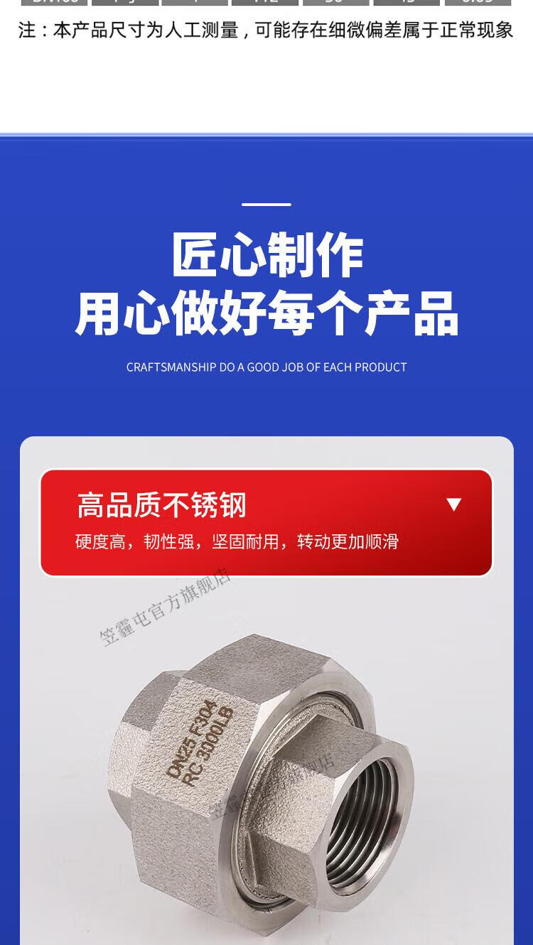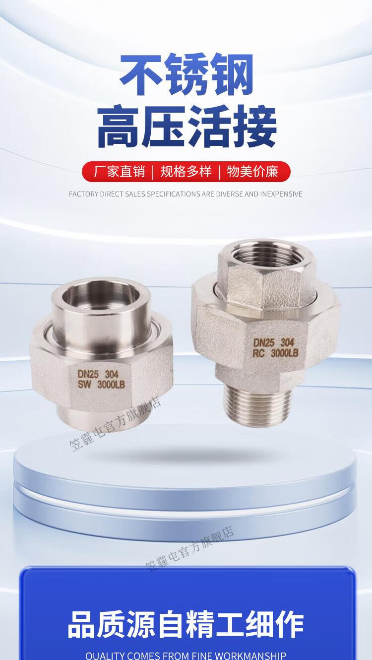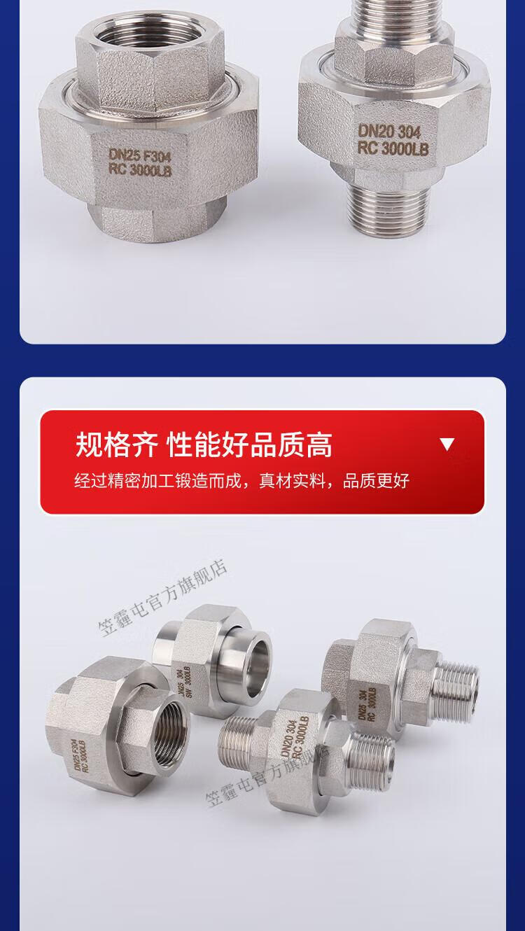 笠霾屯304不锈钢高压内外丝活接螺纹加厚耐高温316L球面油拧2分3/4分1寸 316L 双外丝 PT1.2寸(DN32)
