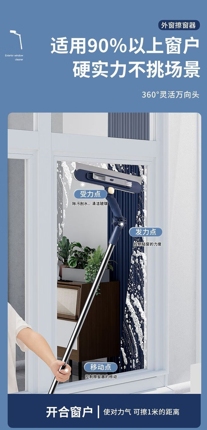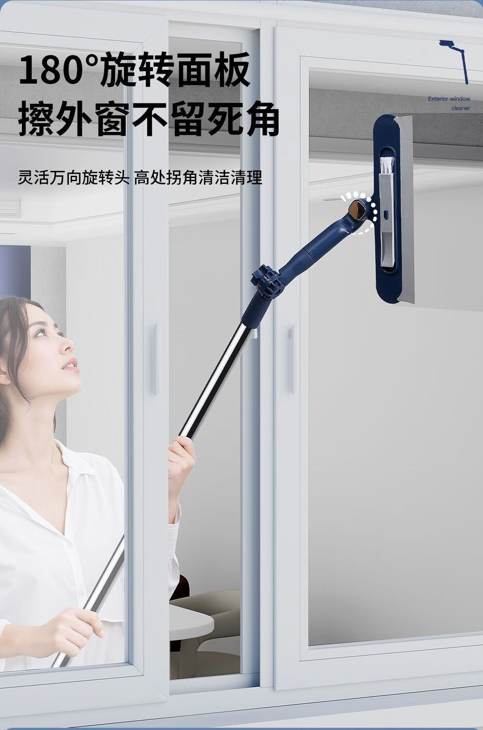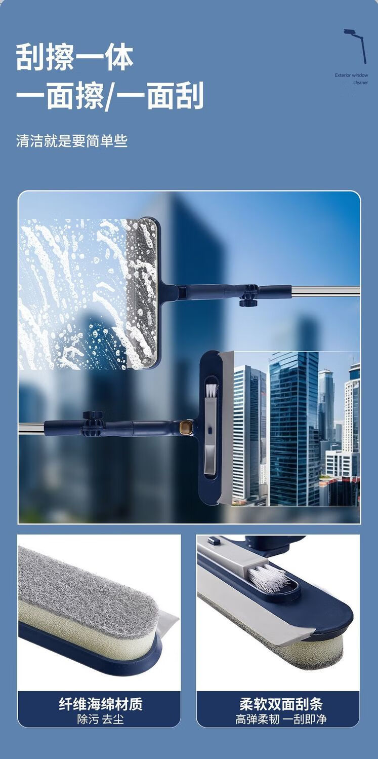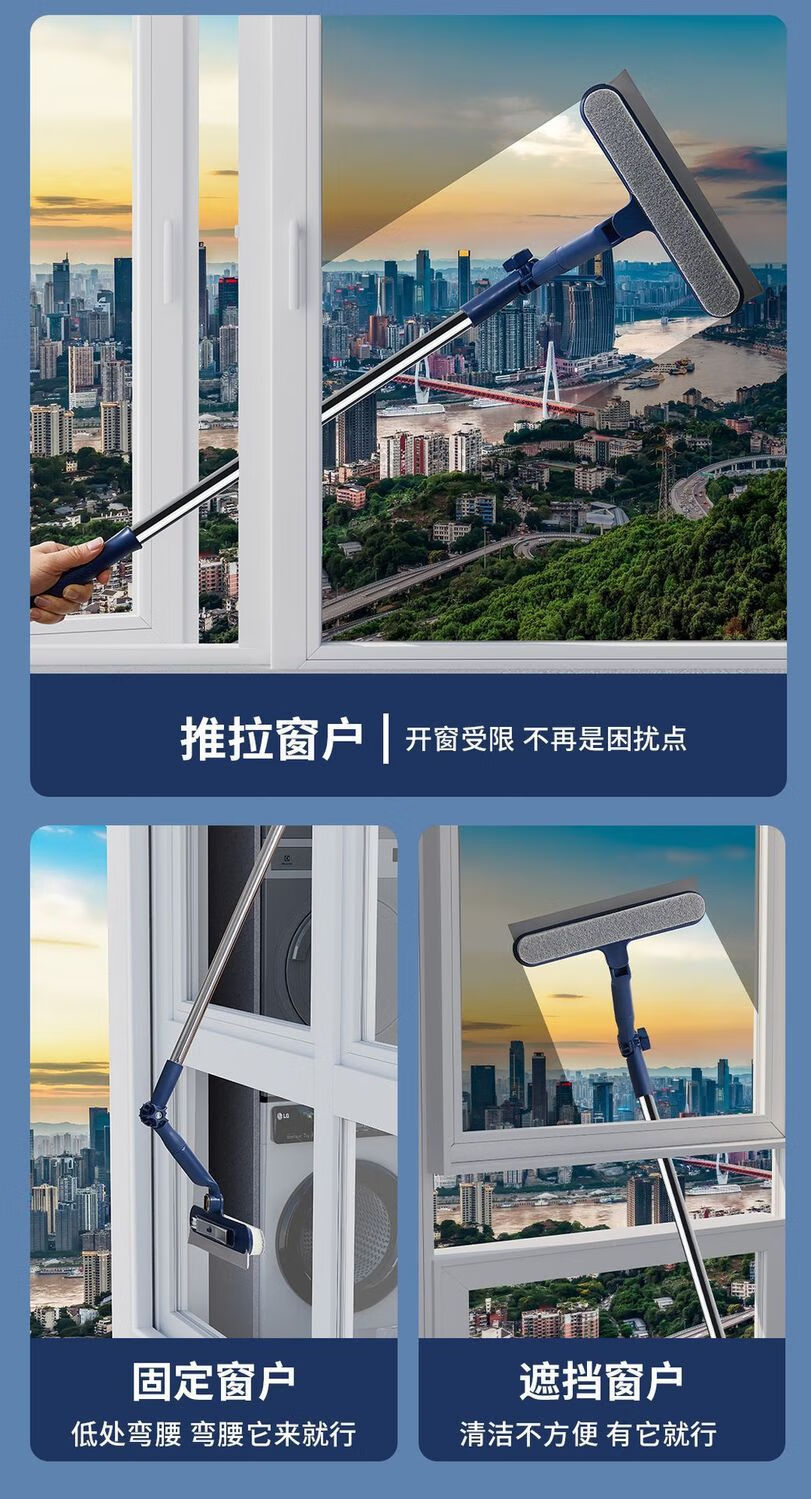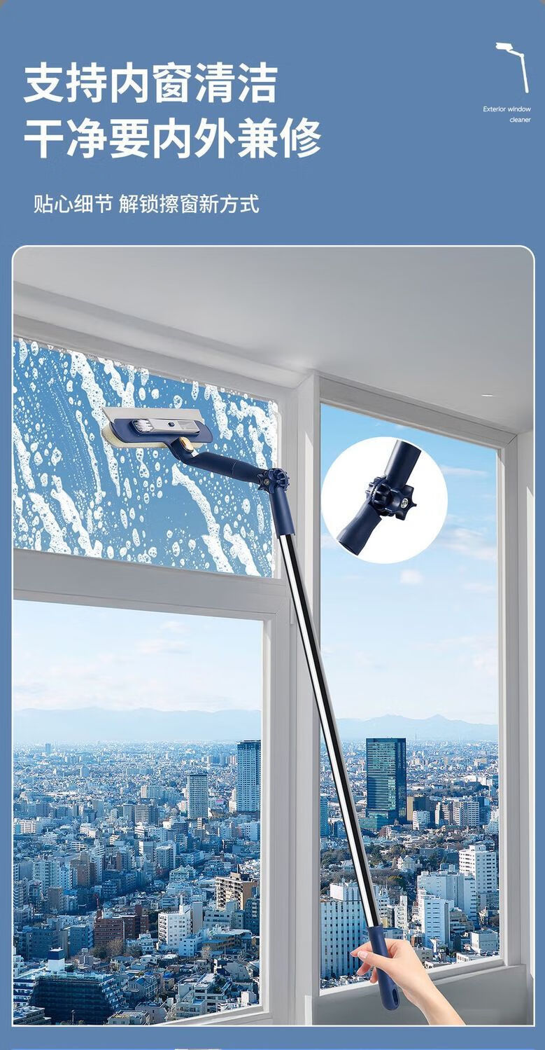 汉世刘家(hanshiiujia)擦玻璃神器家用2025新款高层洗窗户外家政双面清洁刮水器保洁专用 万向擦:蓝色1.52米/三节杆(共2海绵头) 内外可擦/刮擦两用+自带刷铲