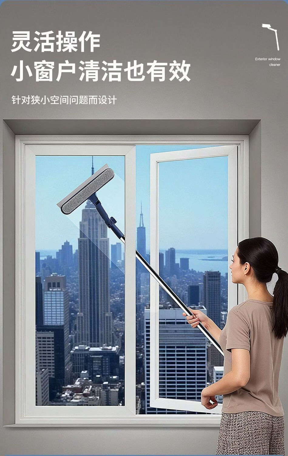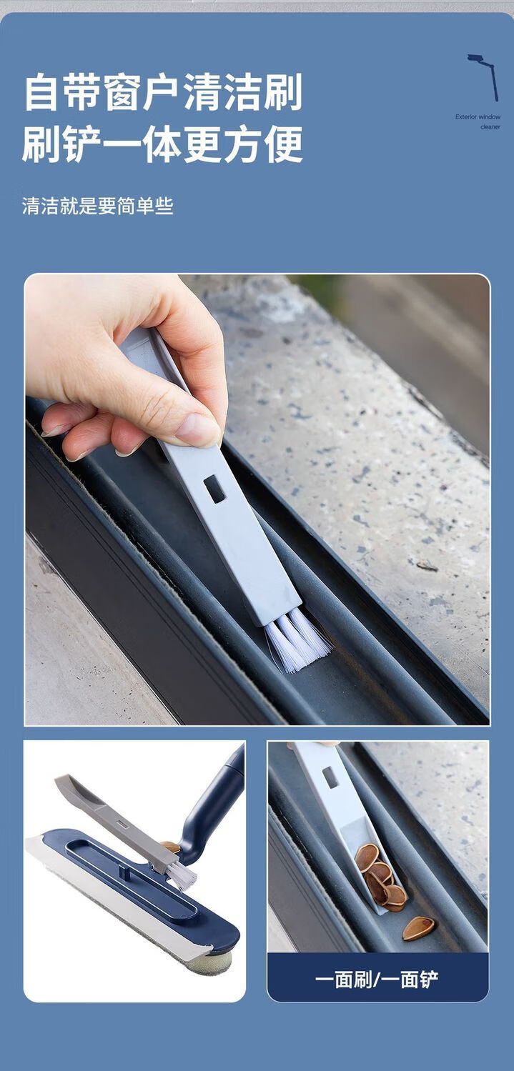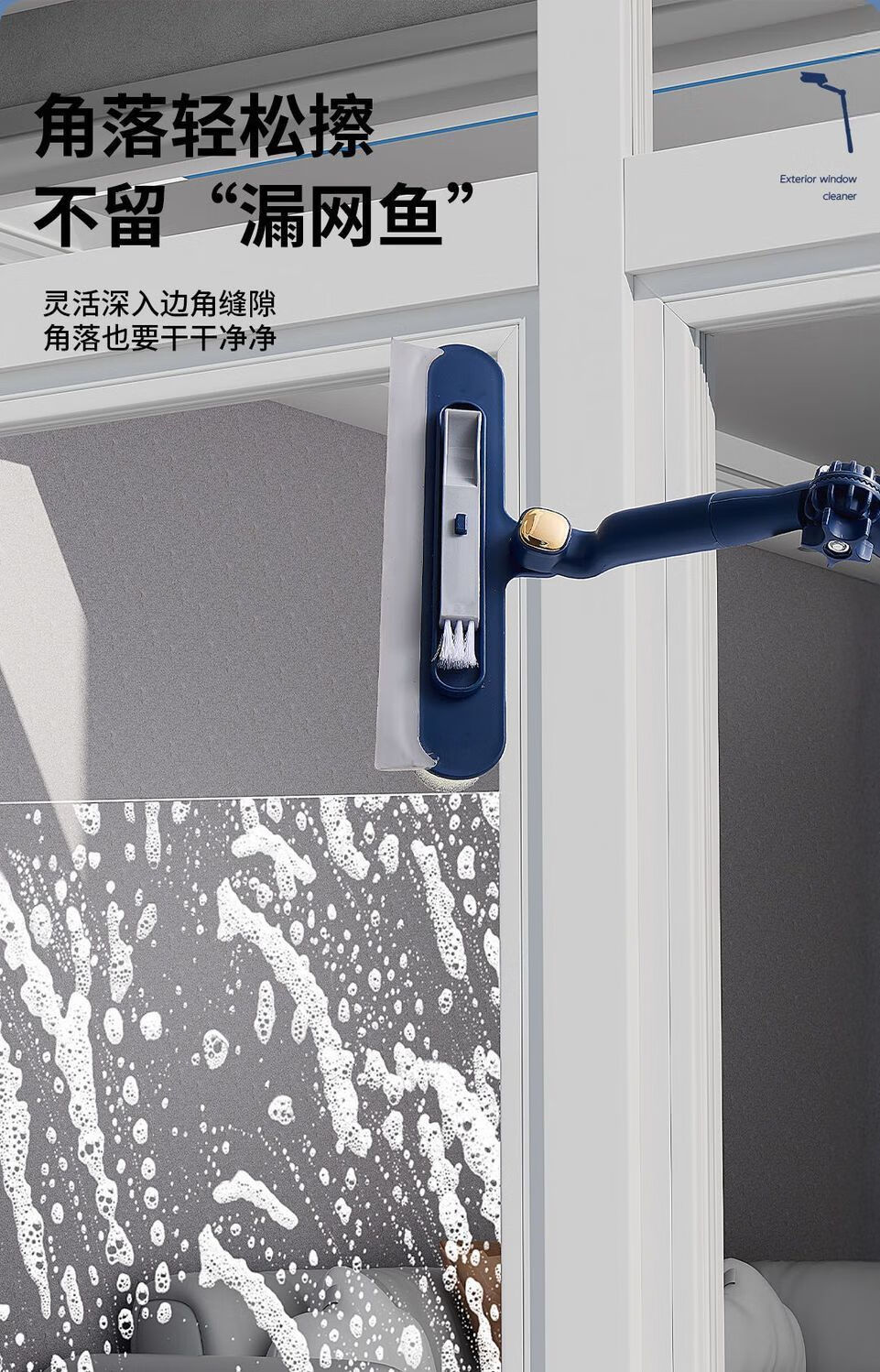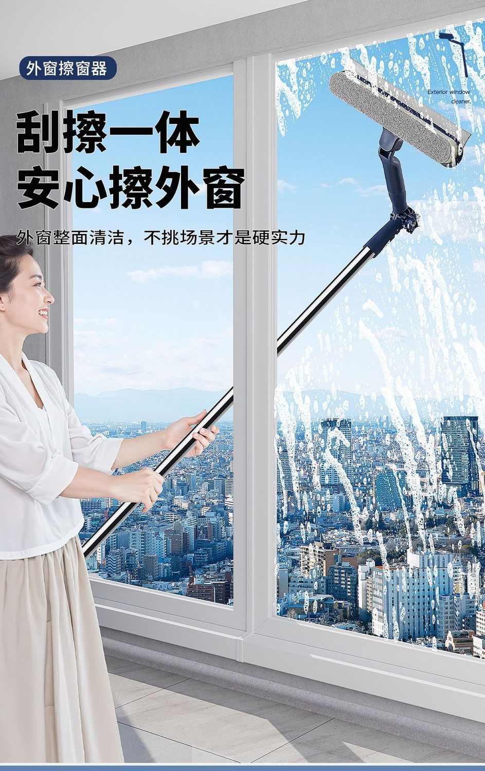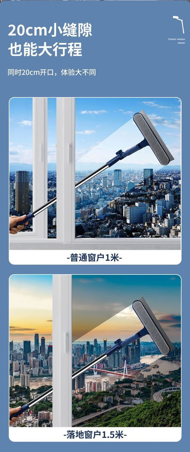 汉世刘家(hanshiiujia)擦玻璃神器家用2025新款高层洗窗户外家政双面清洁刮水器保洁专用 万向擦:蓝色1.52米/三节杆(共2海绵头) 内外可擦/刮擦两用+自带刷铲