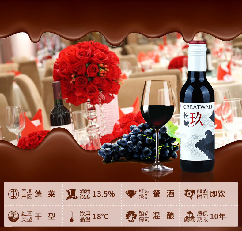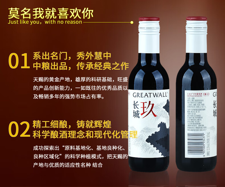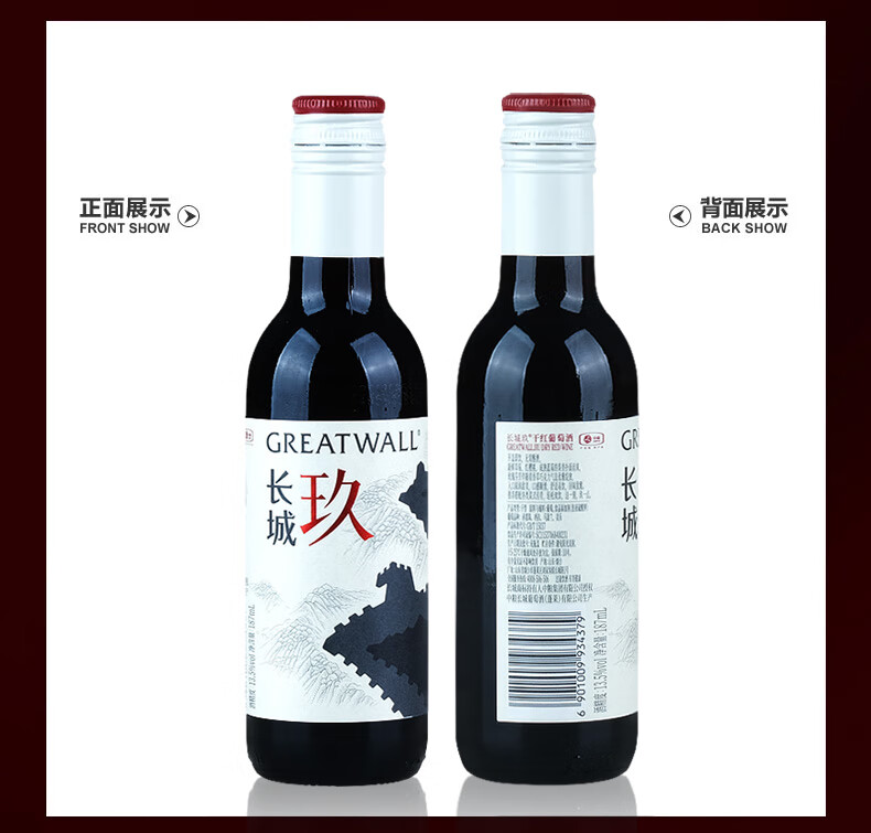 长城(GreatWall)玖赤霞珠马瑟兰混酿干红葡萄酒 中粮国货红酒整箱装187mL*12瓶 【十二支小酒版】187mL*12瓶