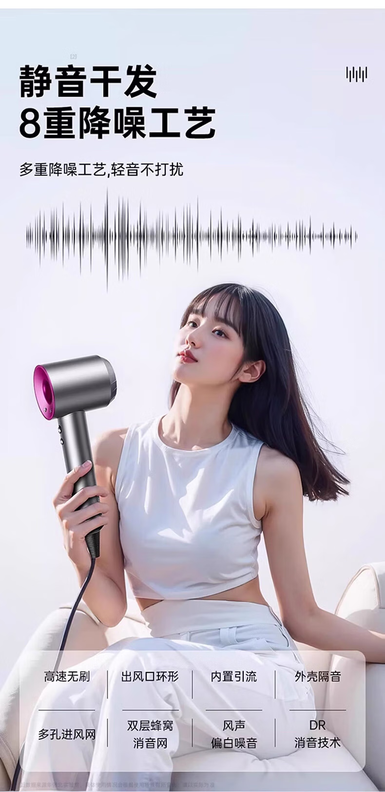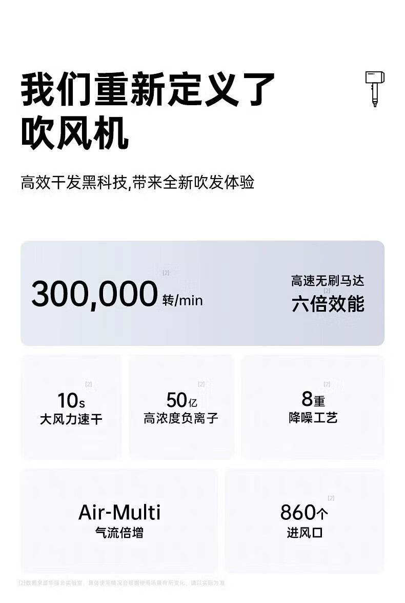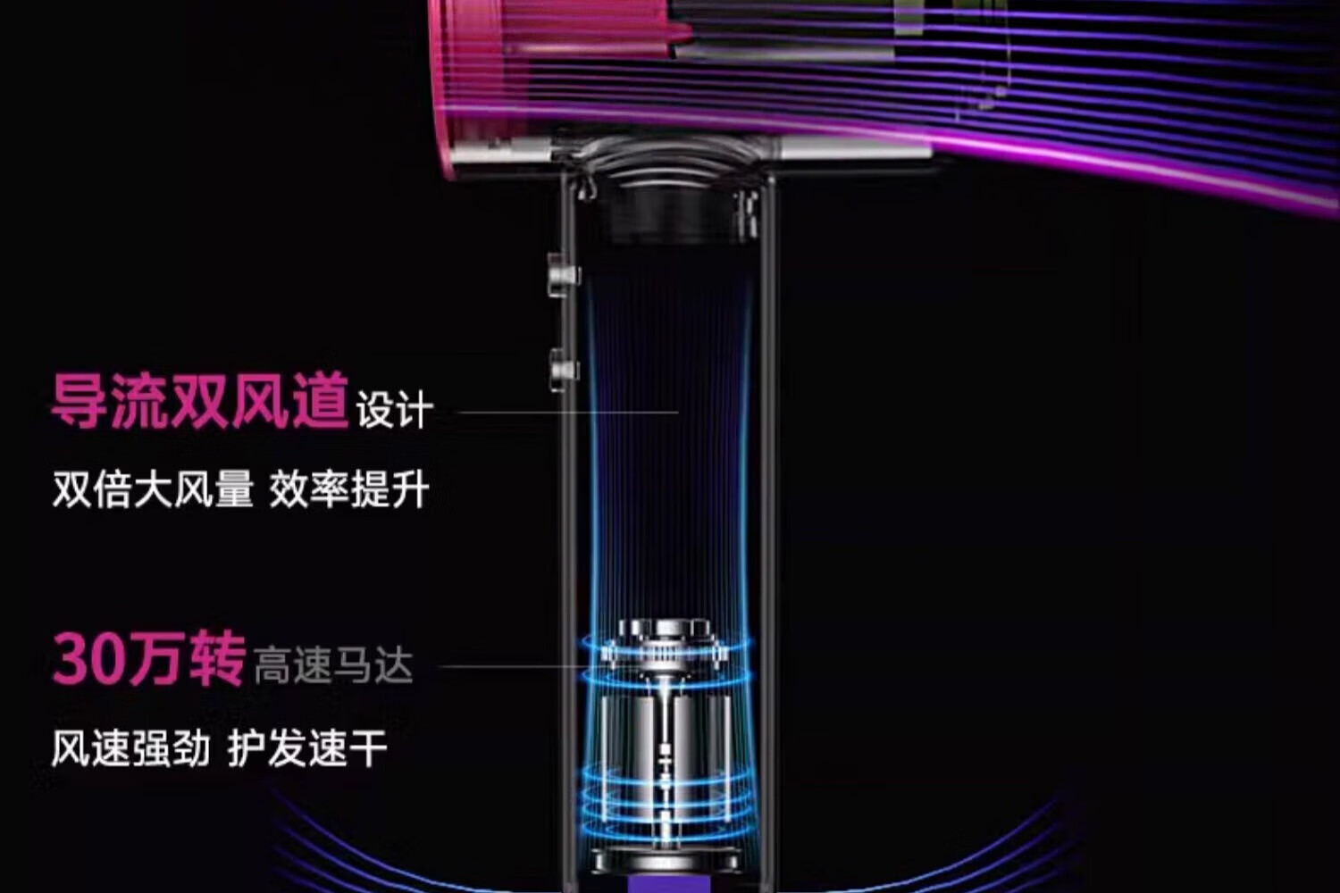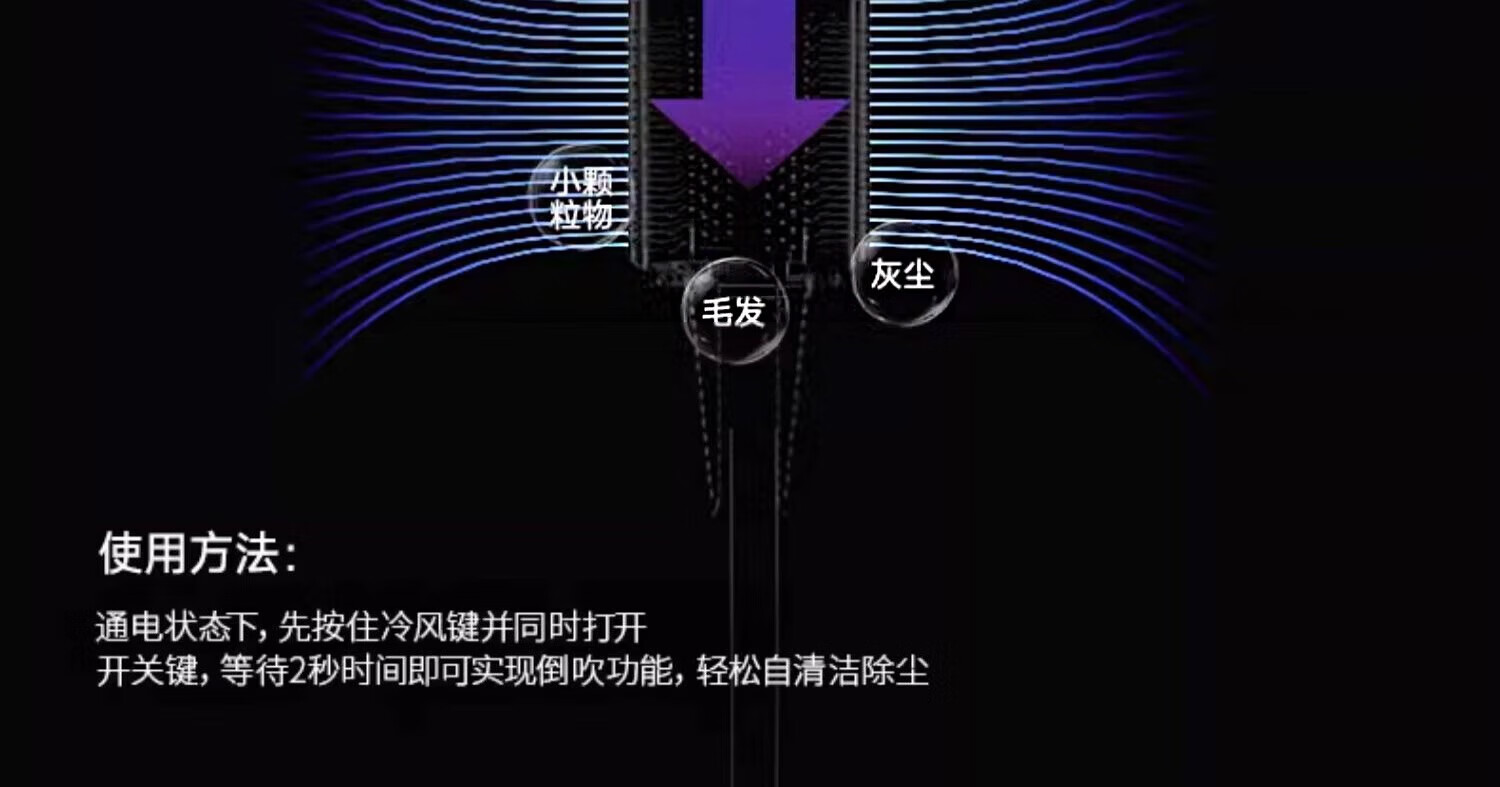 森系第三代无叶吹风机家用静音负离子不伤发高速大功率风力吹风筒 8陶瓷金五风嘴50亿负离子护发