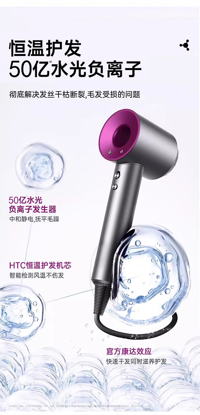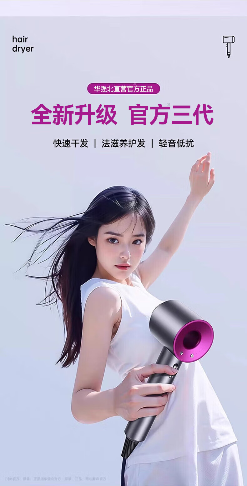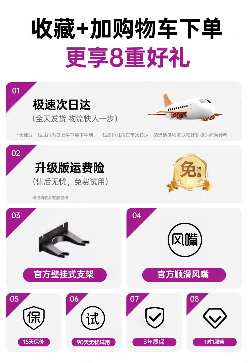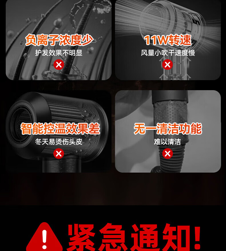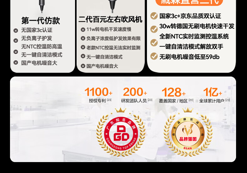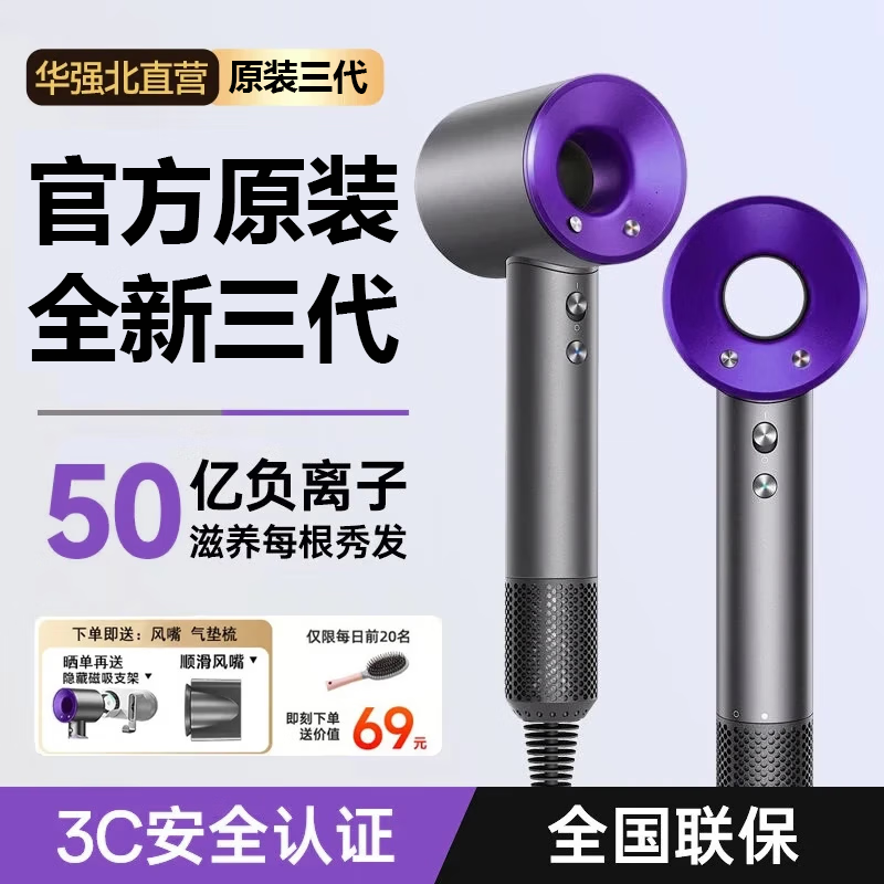 森系第三代无叶吹风机家用静音负离子不伤发高速大功率风力吹风筒 8陶瓷金五风嘴50亿负离子护发